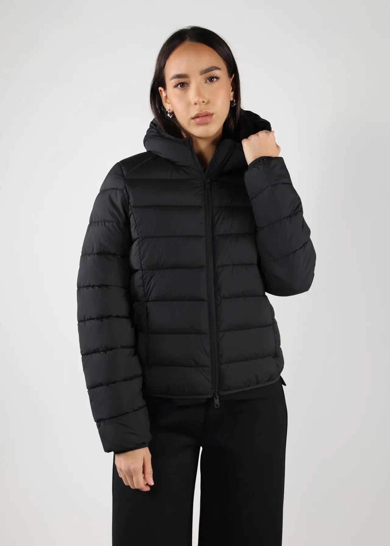 Chaqueta negra con capucha y lineas rectas "Aspenalf" -
