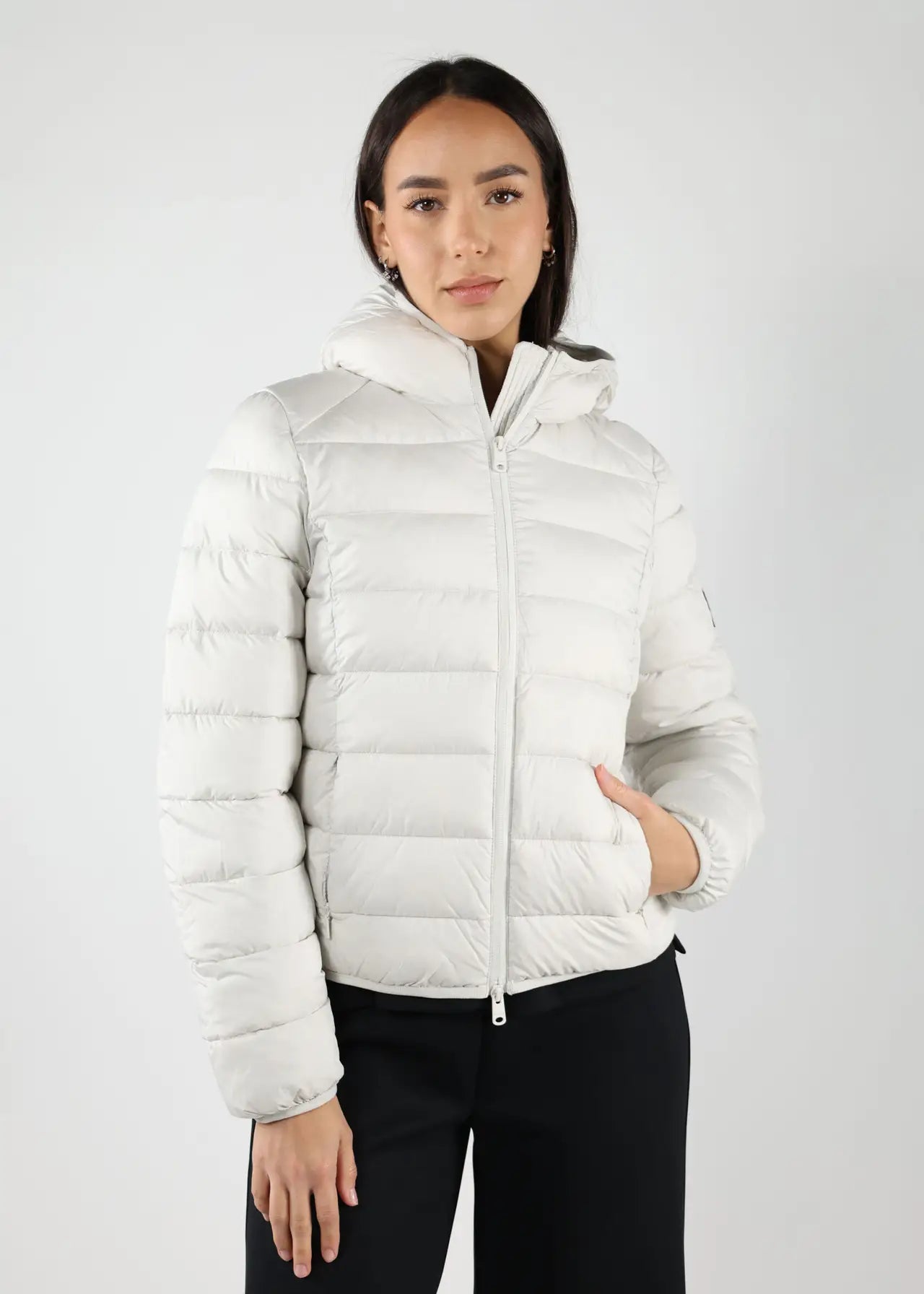 Chaqueta gris claro con capucha y lineas rectas "Marangu" -