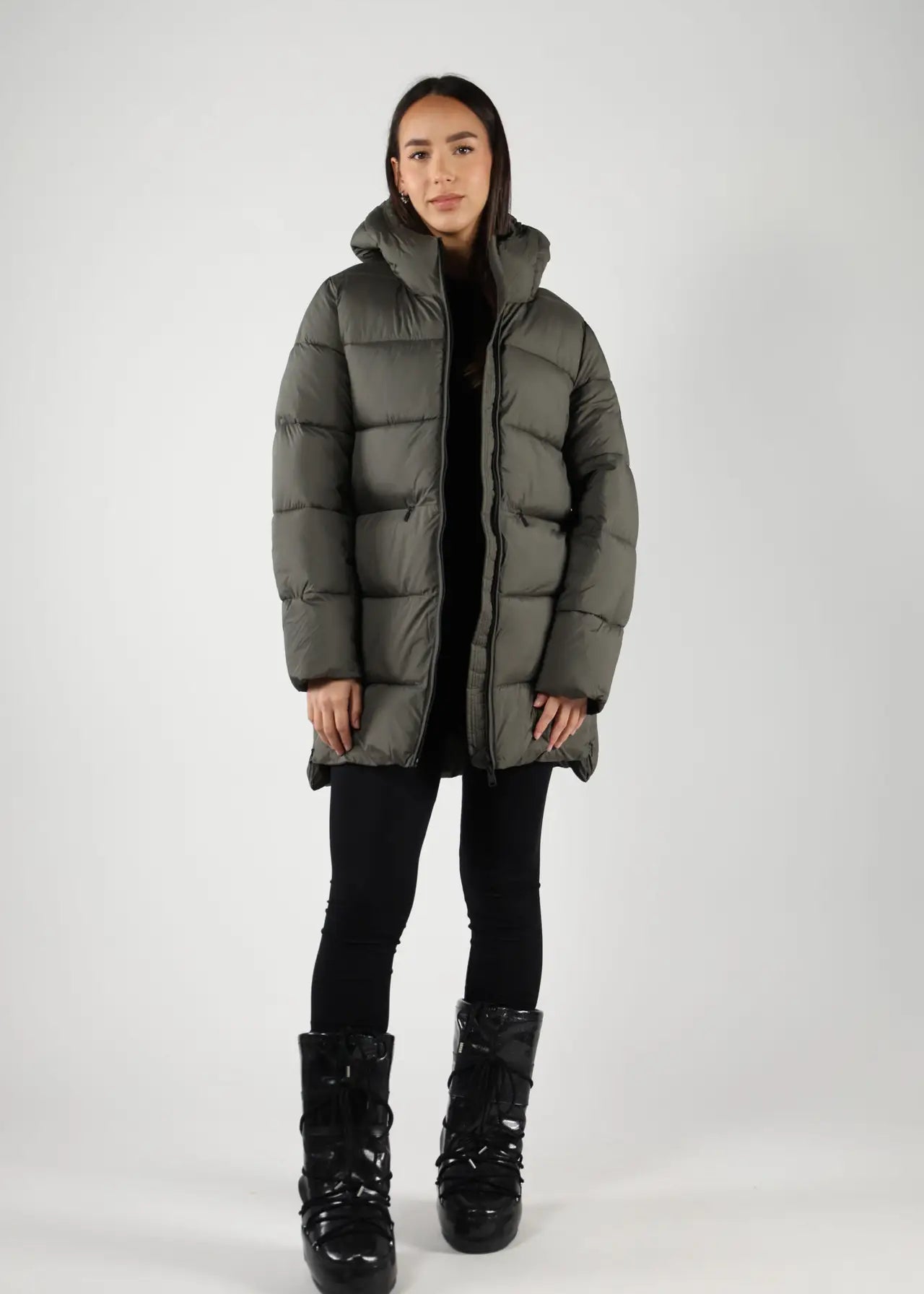 Chaqueta gris verdoso con capucha y lineas rectas "Marangu" -