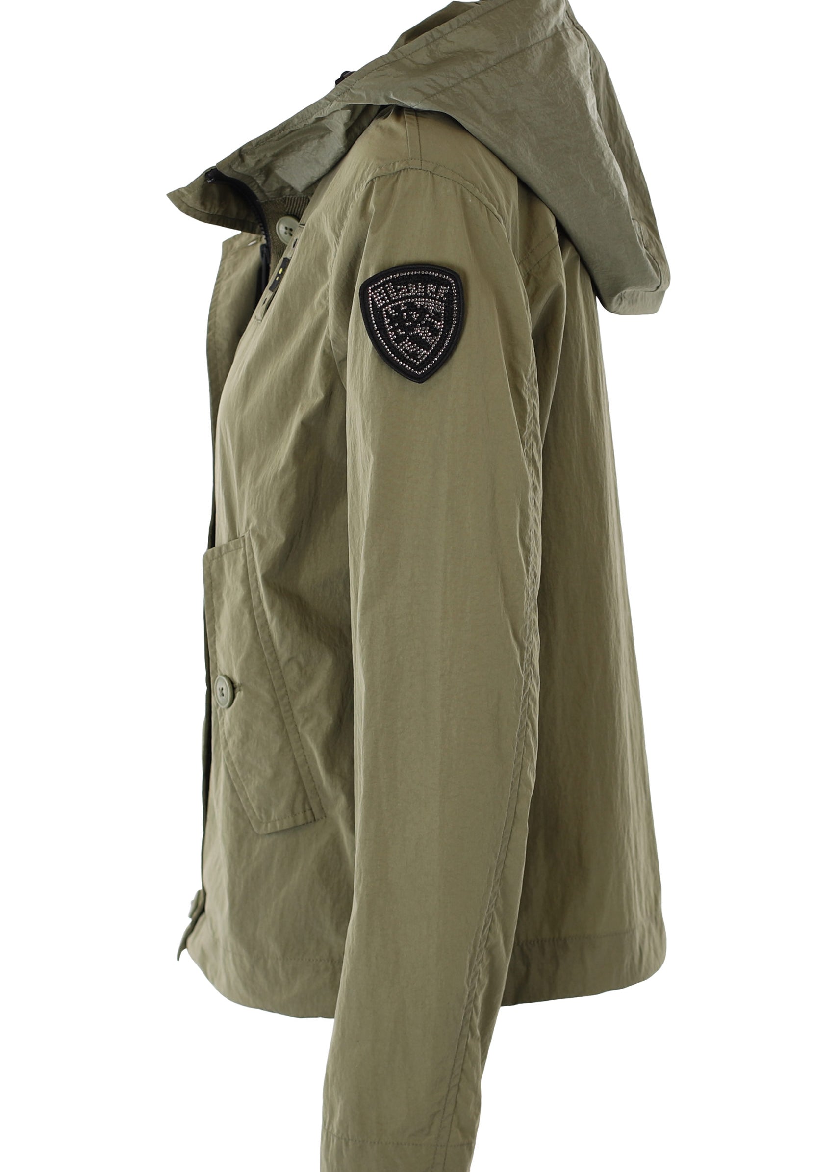 Abric verd fosc de pèl sintètic arrissat i folre interior estampat