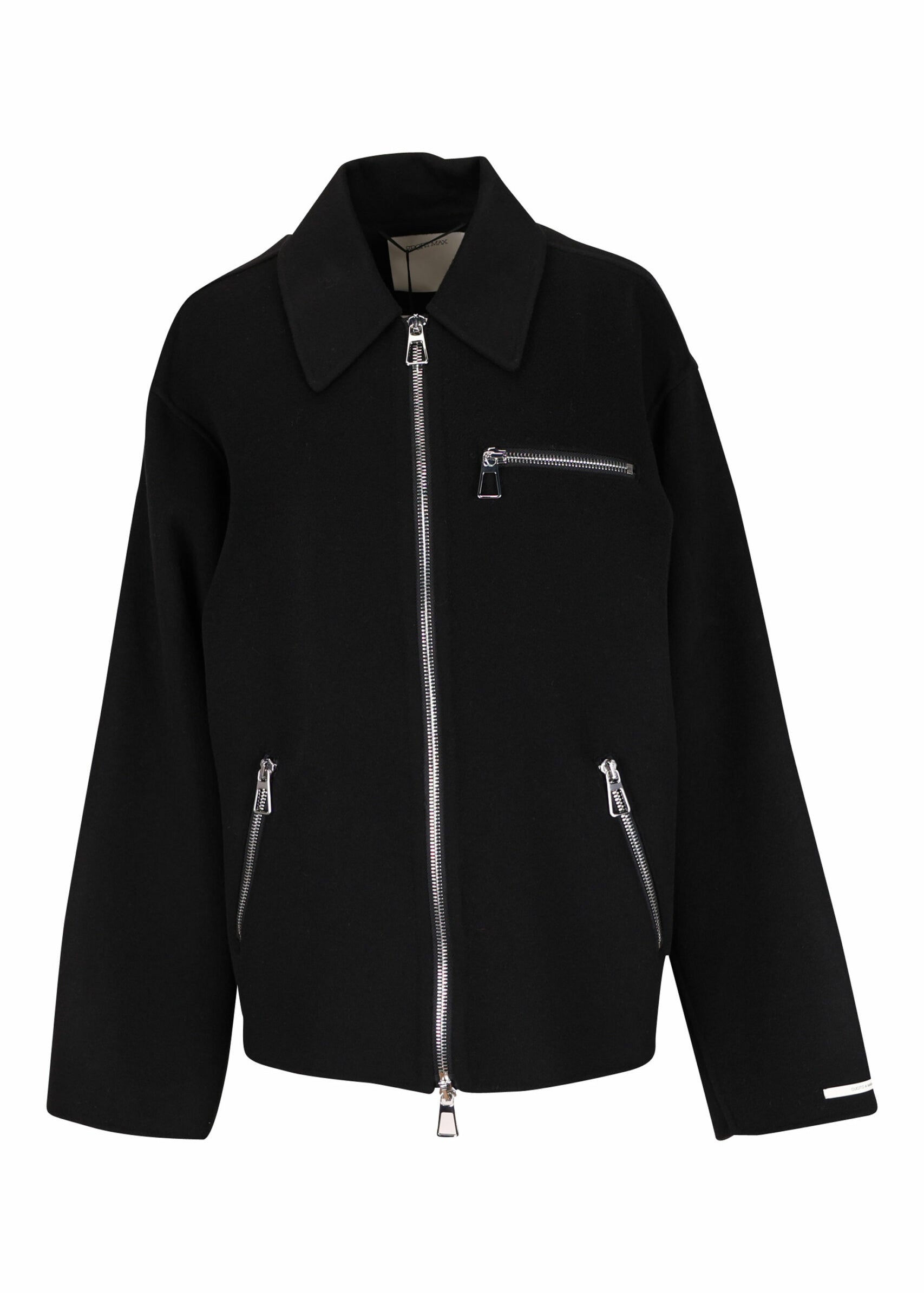 Jaqueta negra amb màniga ampla i cremalleres platejades