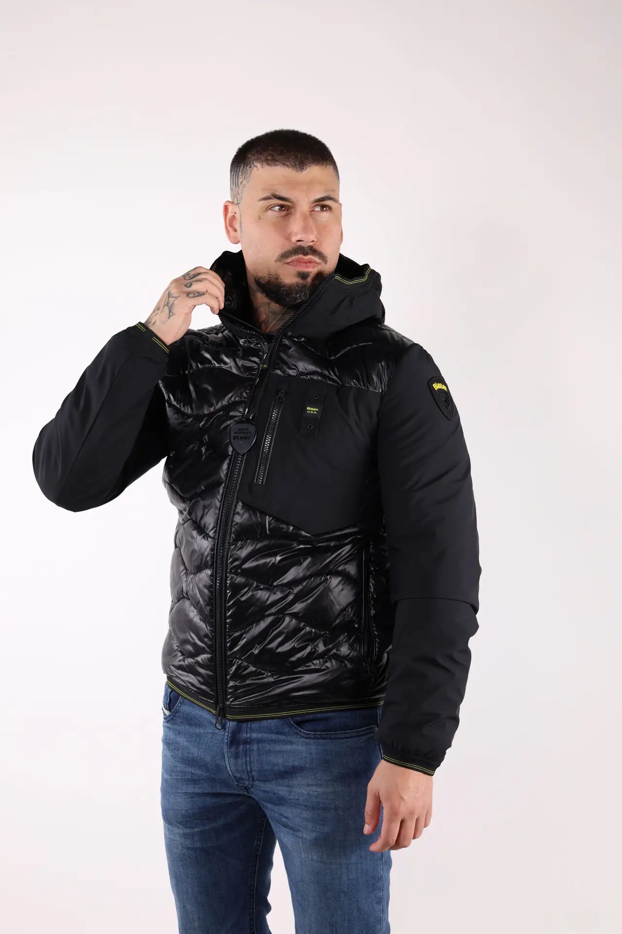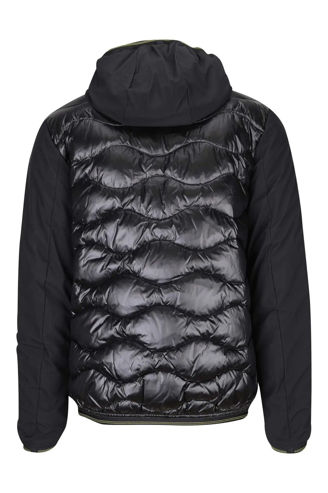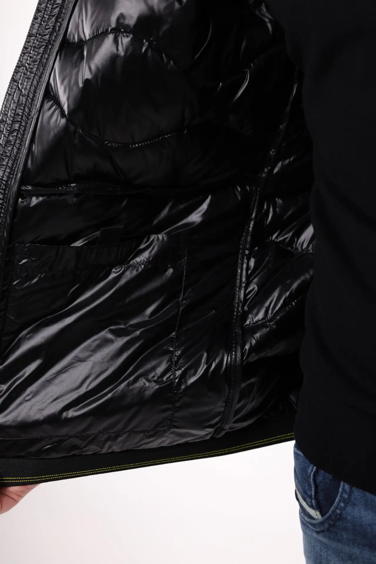 Plumífero negro "albert" relleno de plumas con cinta en contraste y capucha -