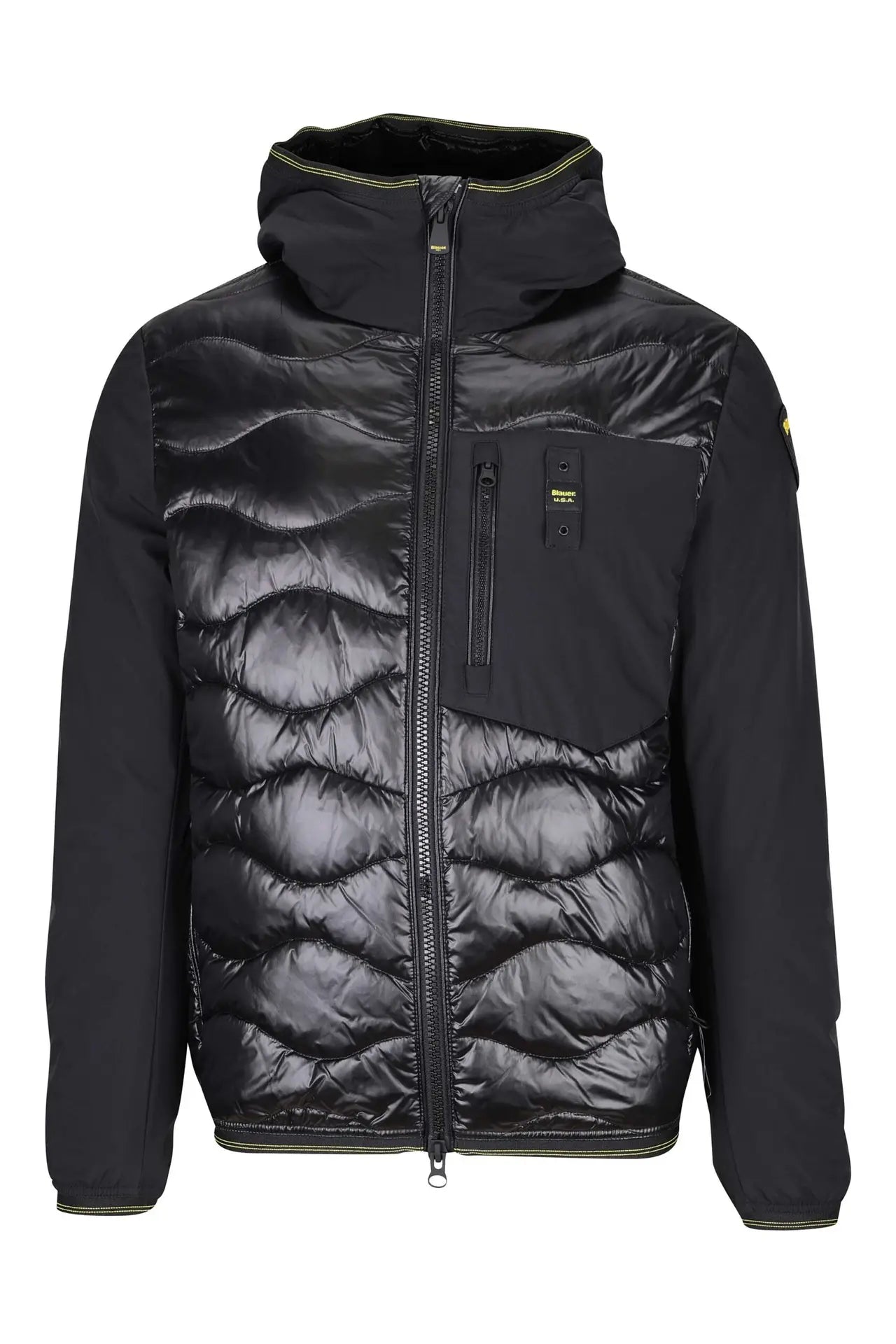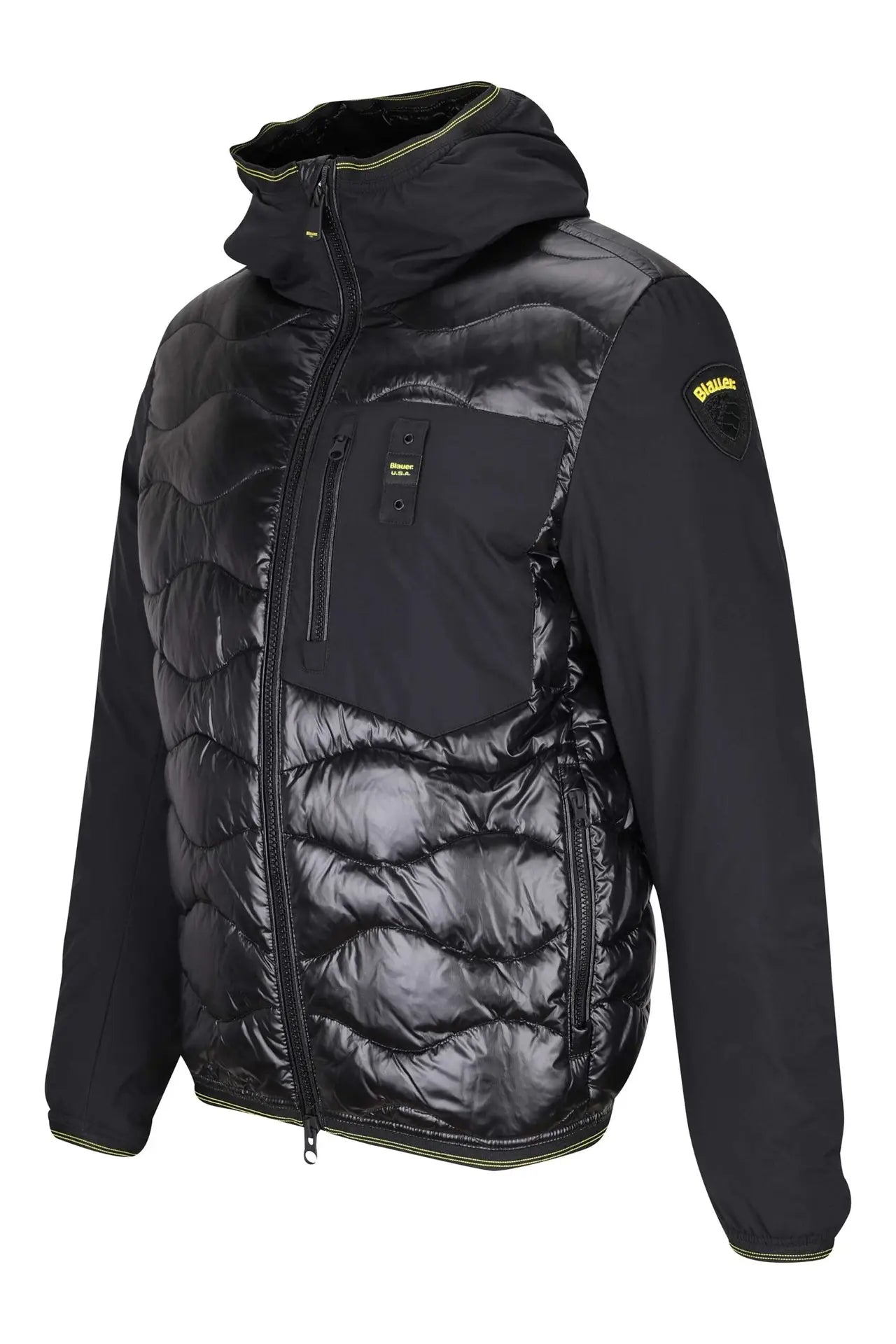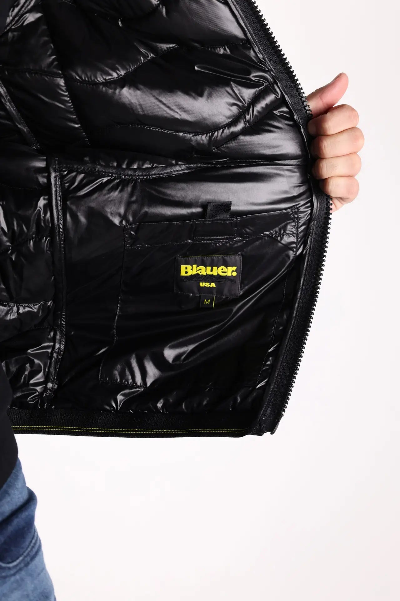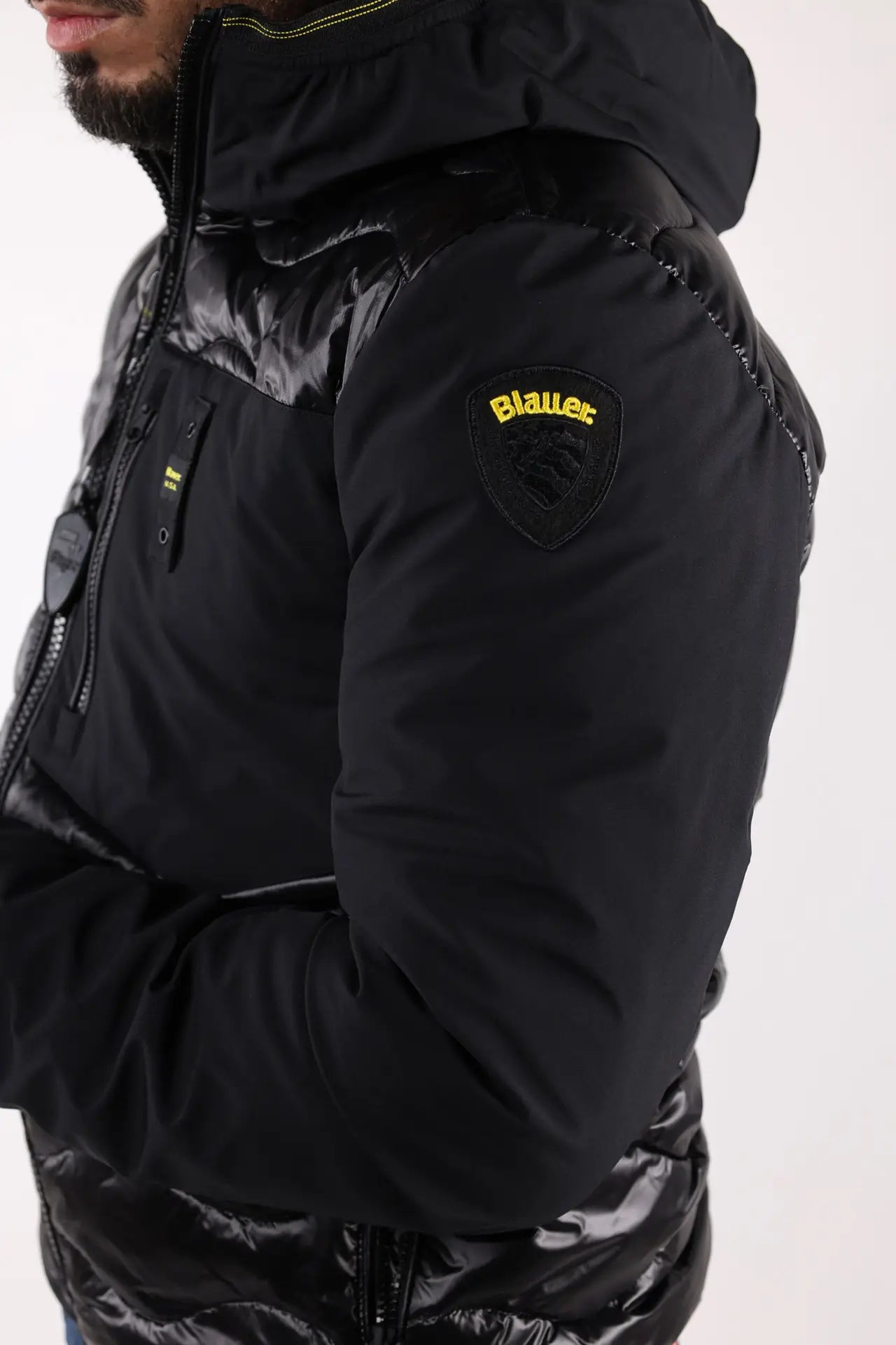 Plumífero negro "albert" relleno de plumas con cinta en contraste y capucha -