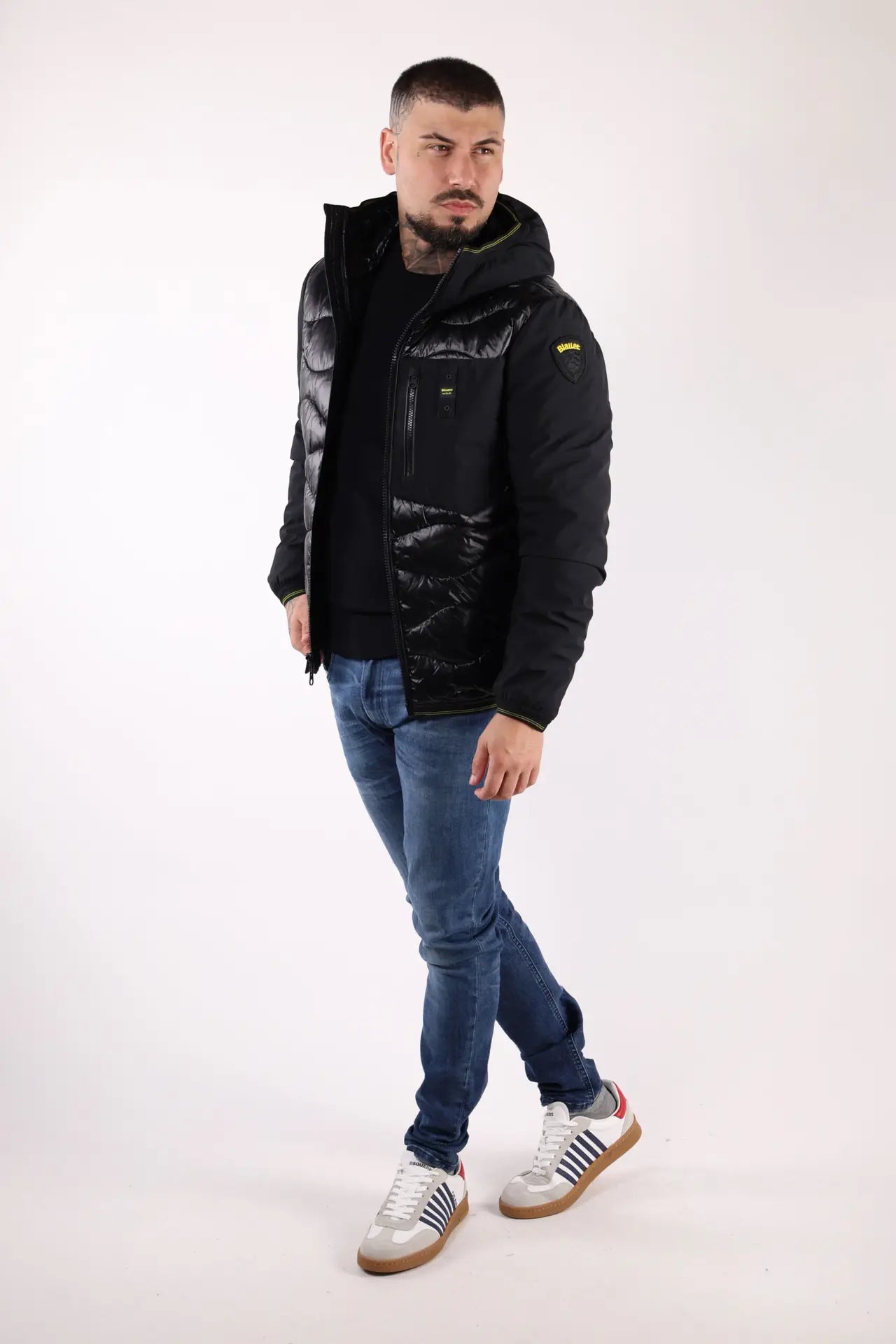 Plumífero negro "albert" relleno de plumas con cinta en contraste y capucha - XXL -