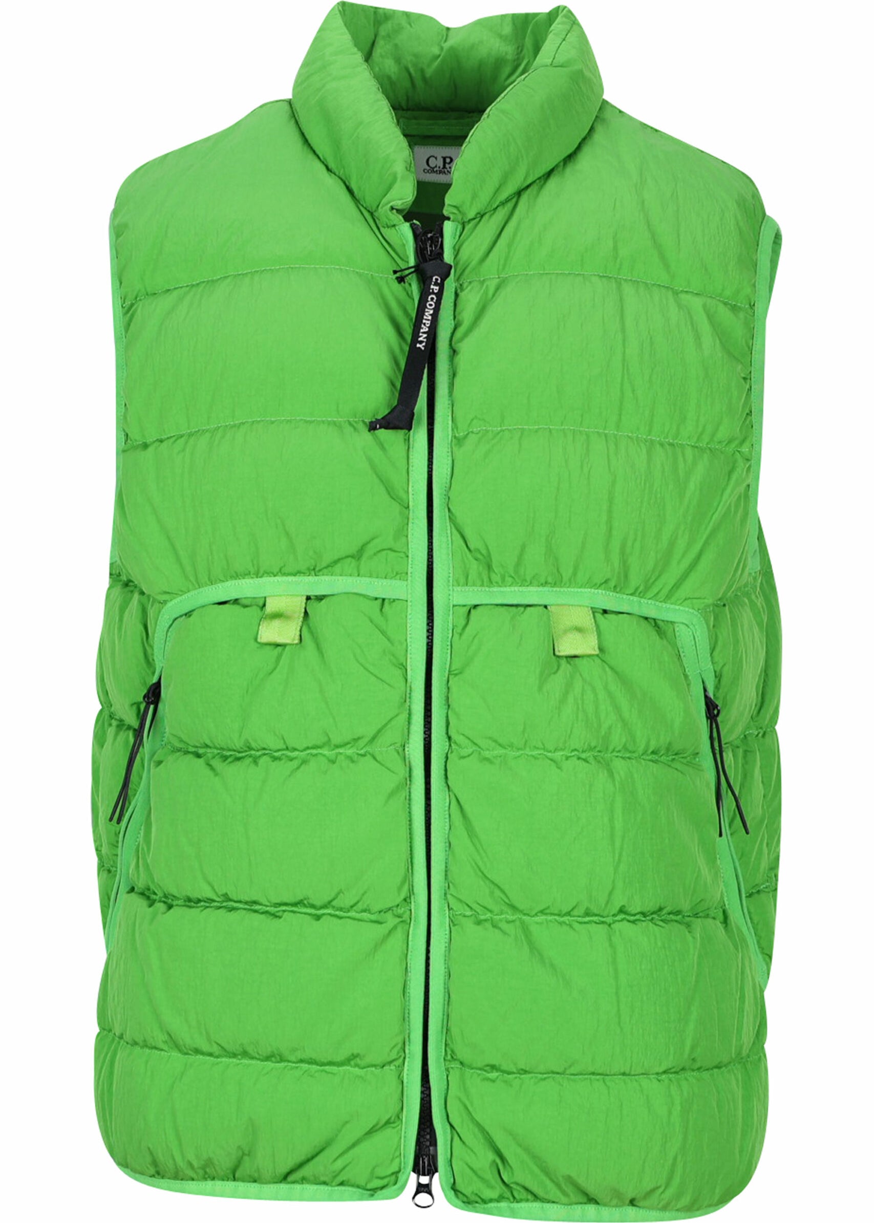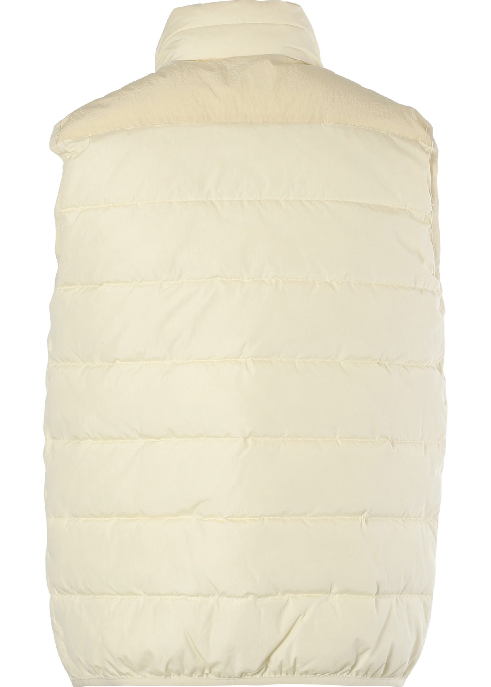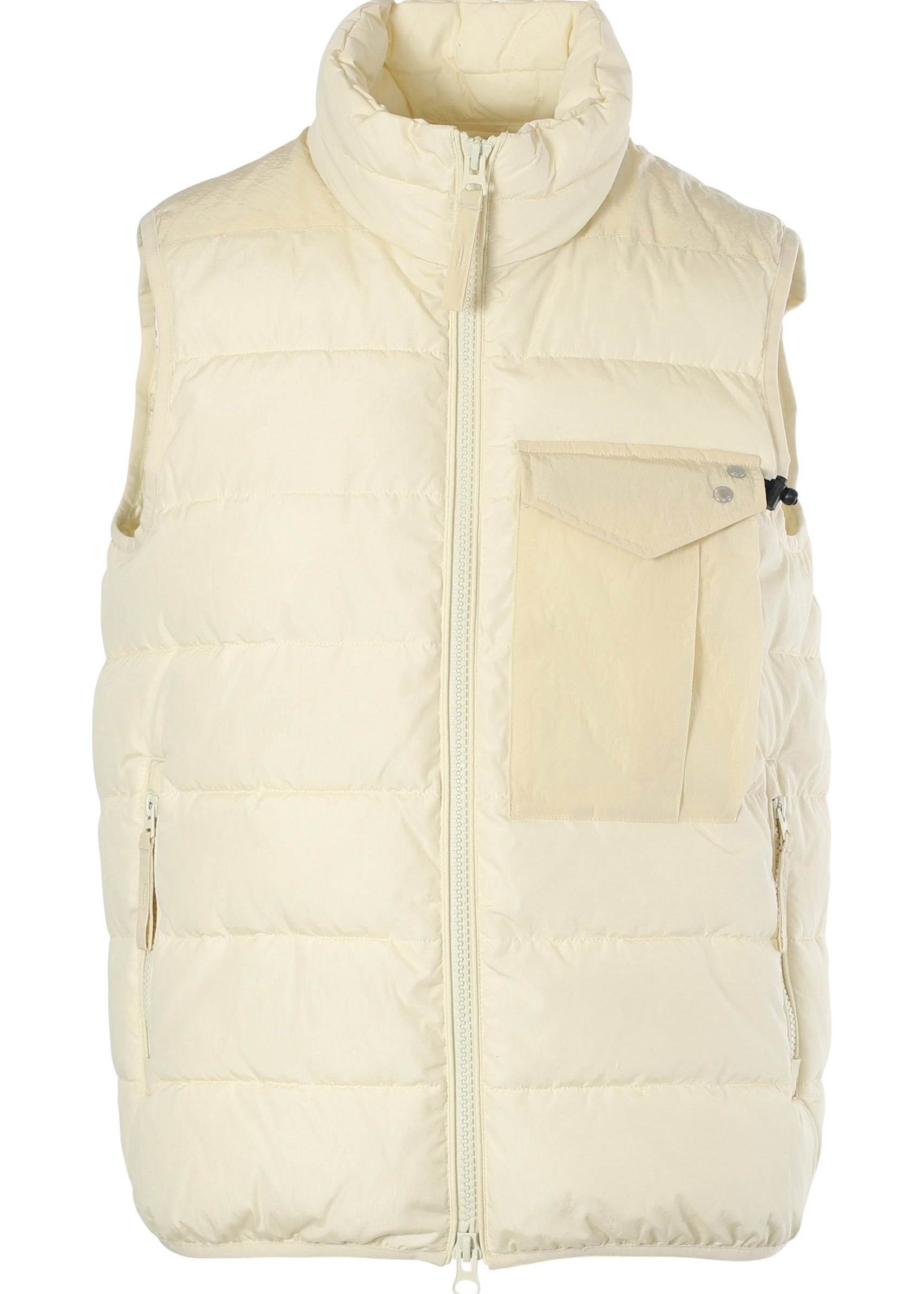Plumífer blanc amb caputxa i línies rectes i logo pegat