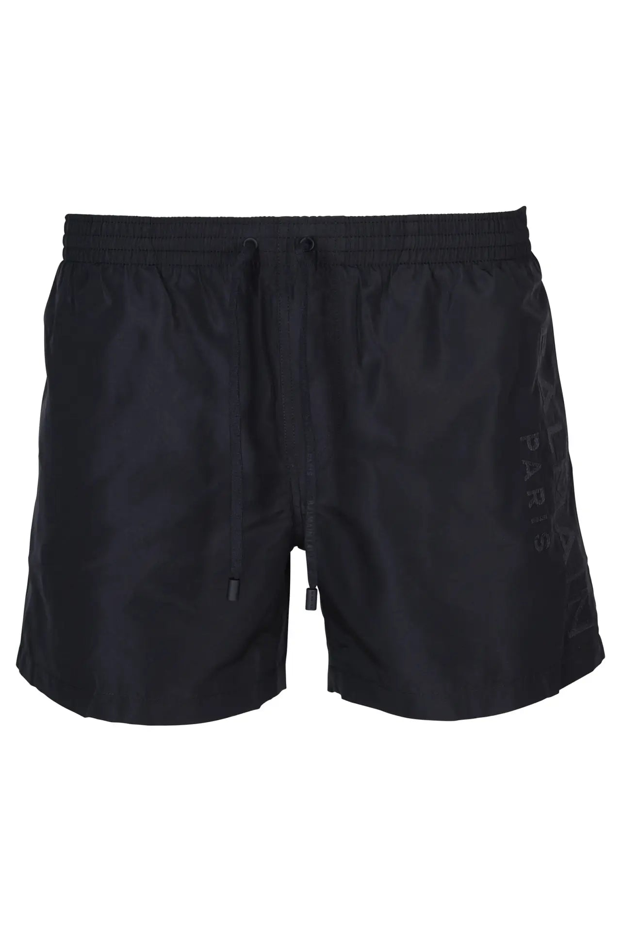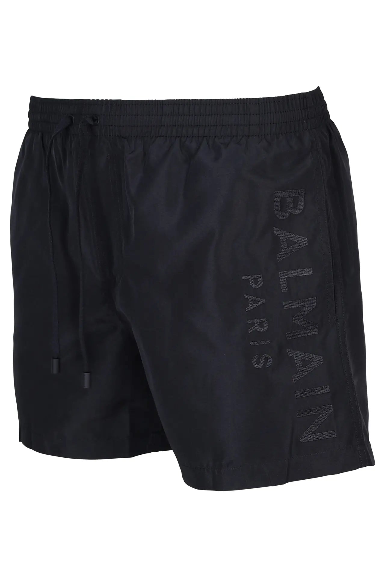 Bañador negro con maxilogo lateral "balmain" monocromático -