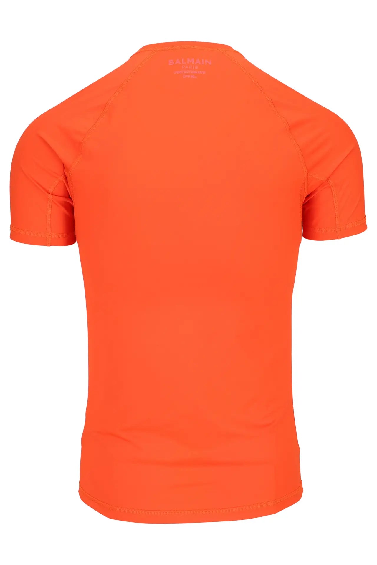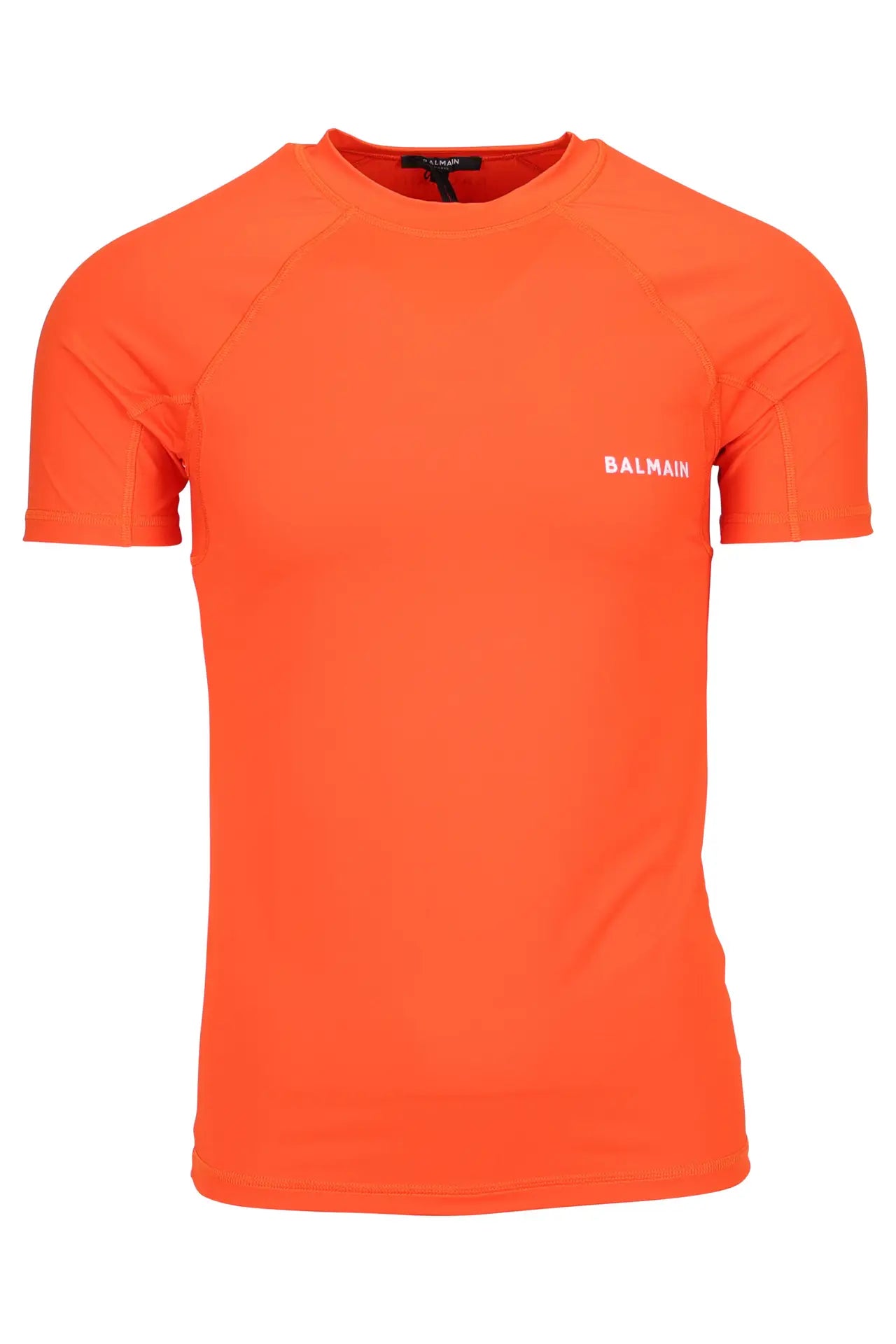 Camiseta naranja con minilogo "balmain" blanco bordado -