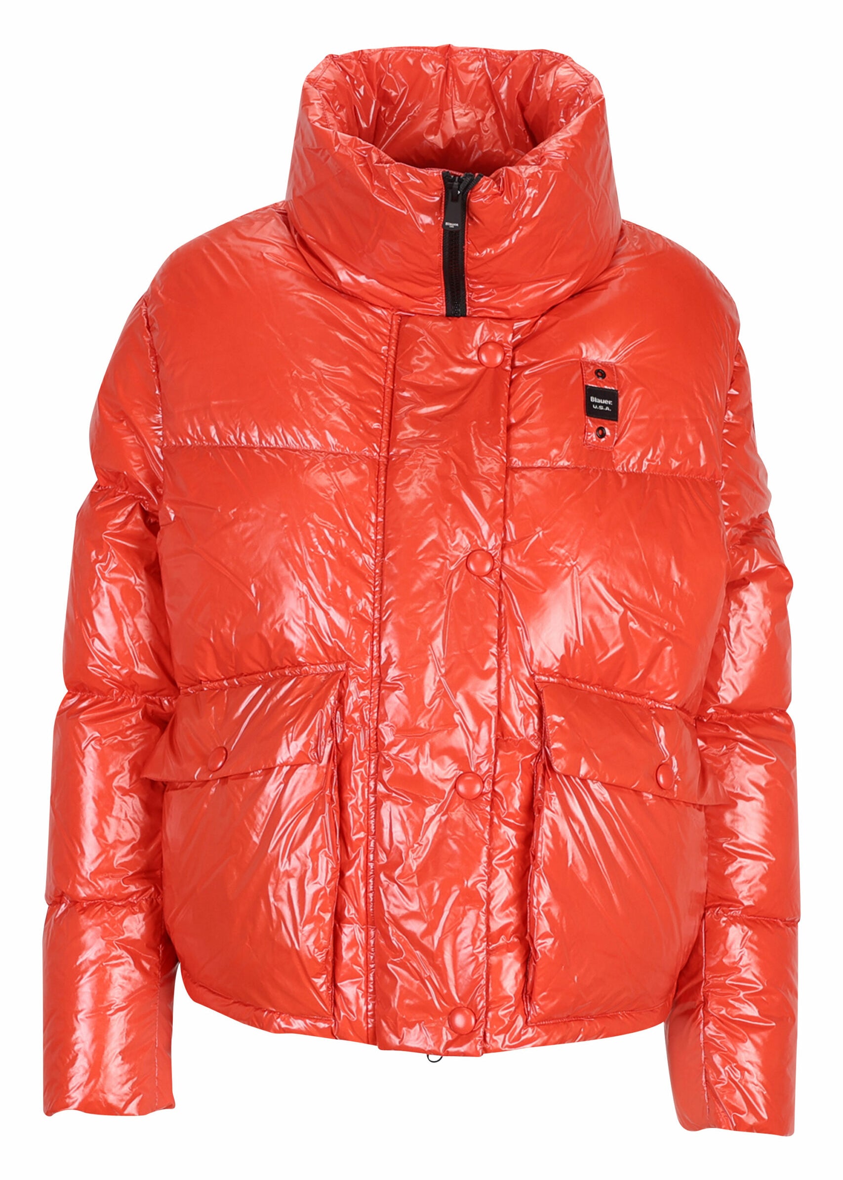 Plumífer vermell encoixinat amb butxaques frontals i logo pegat