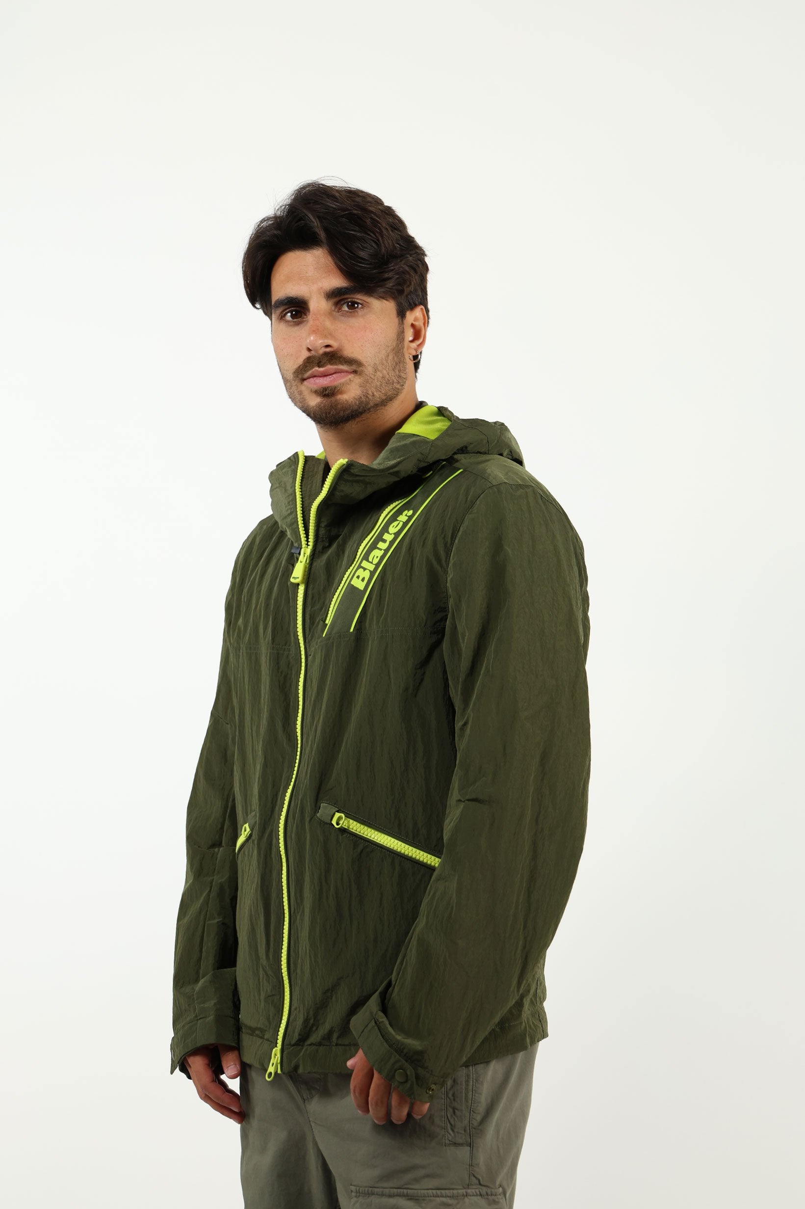 Jaqueta verda militar amb caputxa i detalls verd llima - L