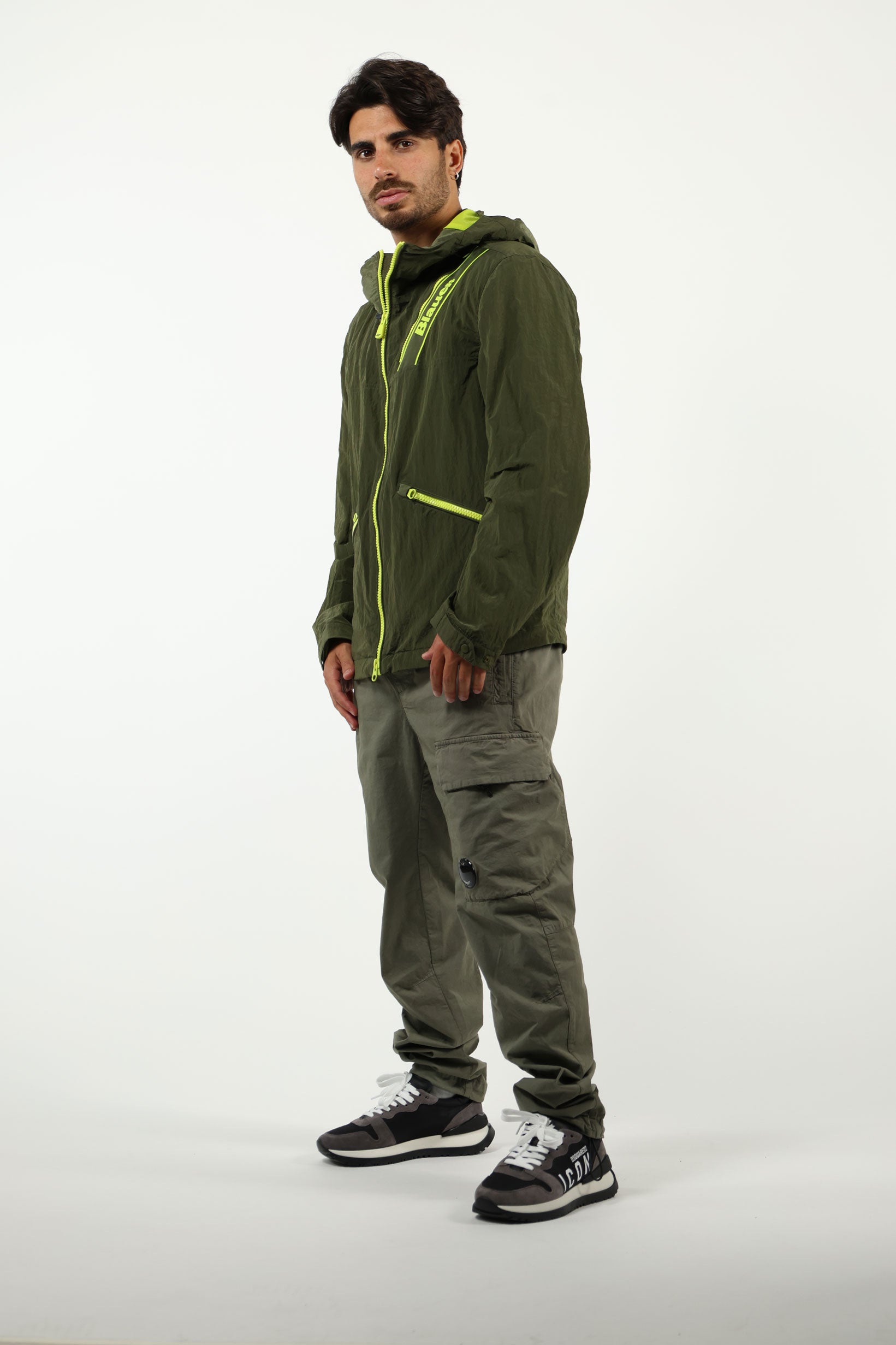 Jaqueta verda militar amb caputxa i detalls verd llima - M