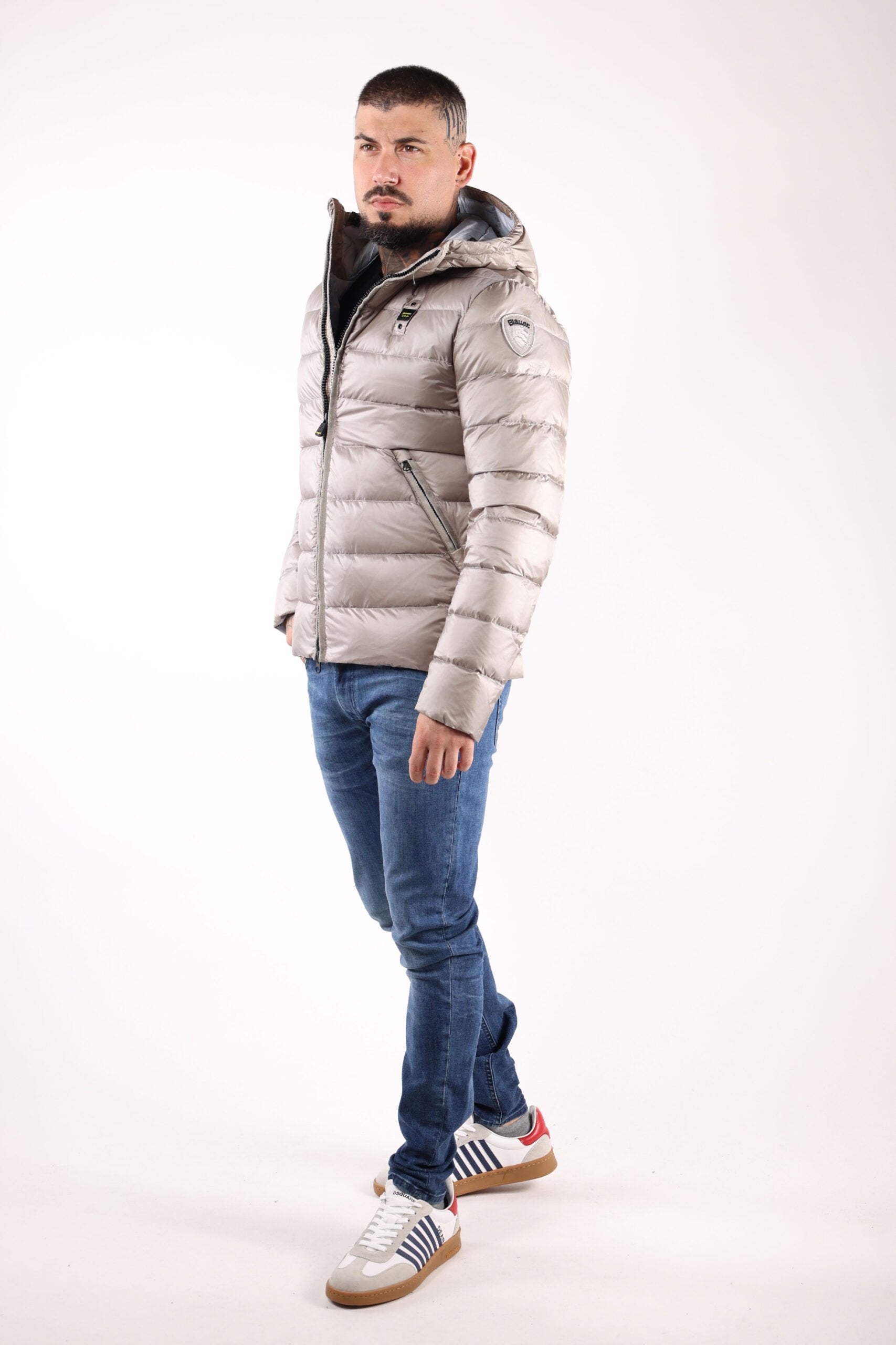 Plumífer gris "acton" amb caputxa i interior blau - S