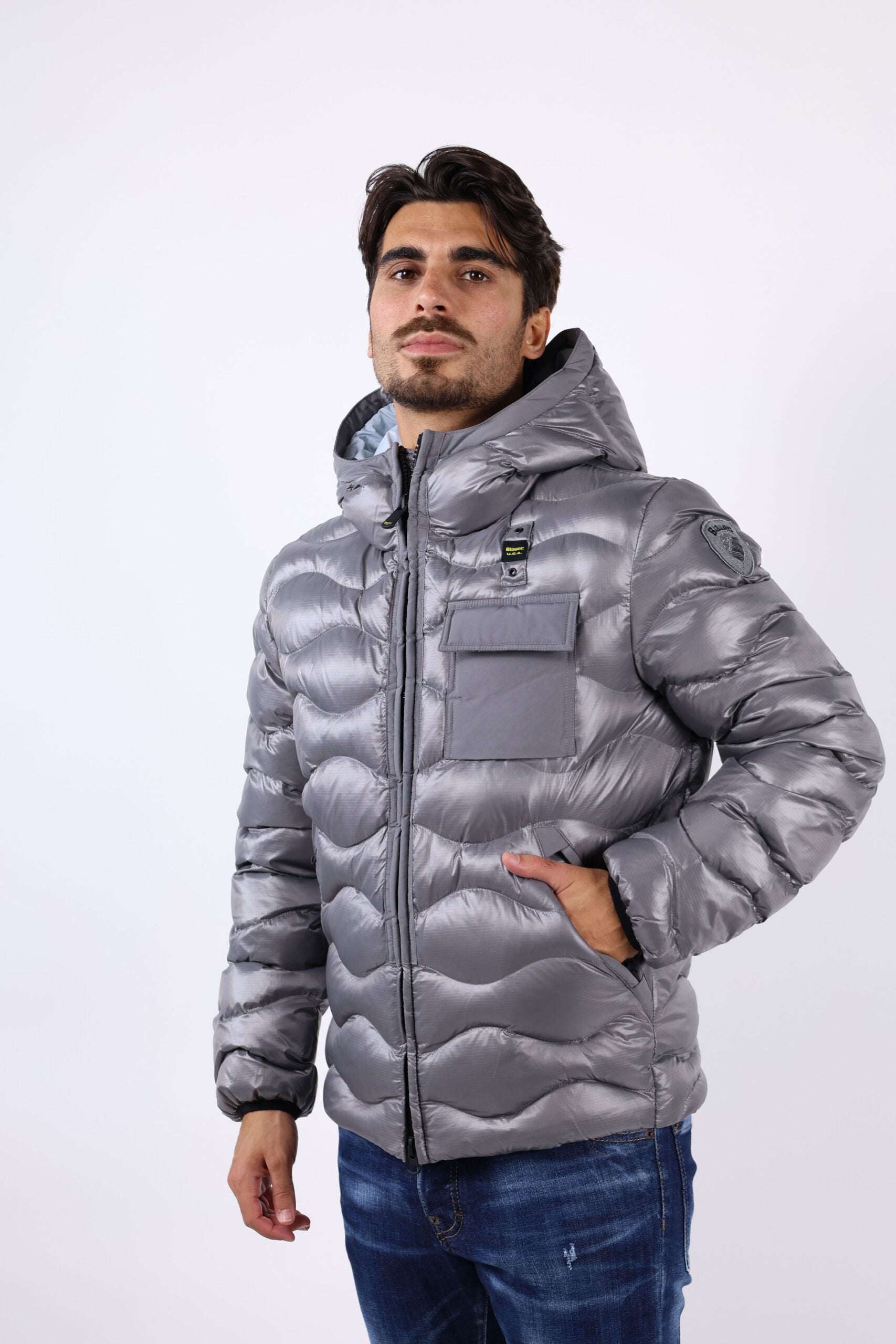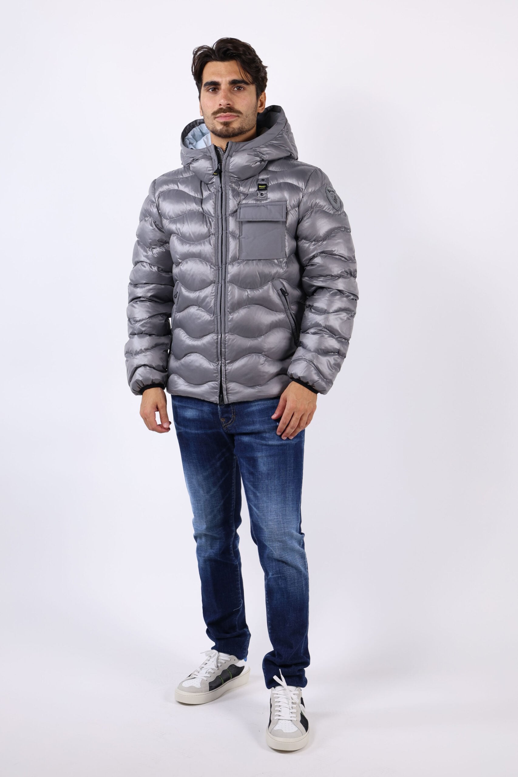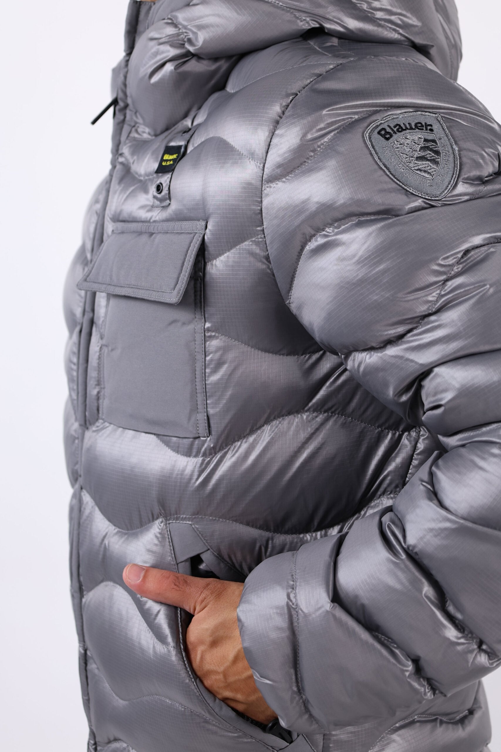Plumífer gris "bryant" amb caputxa i butxaca i interior blau - XXXL