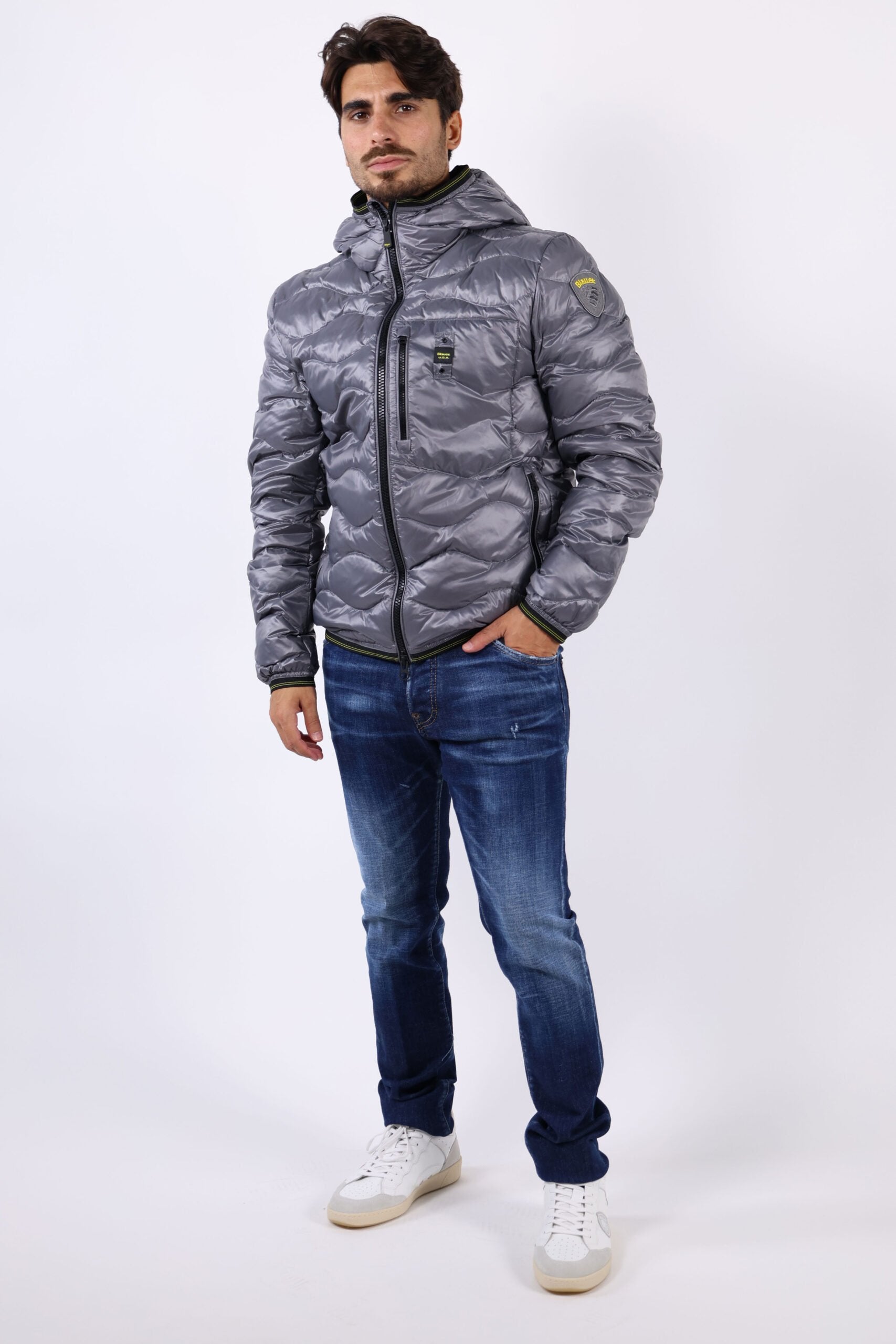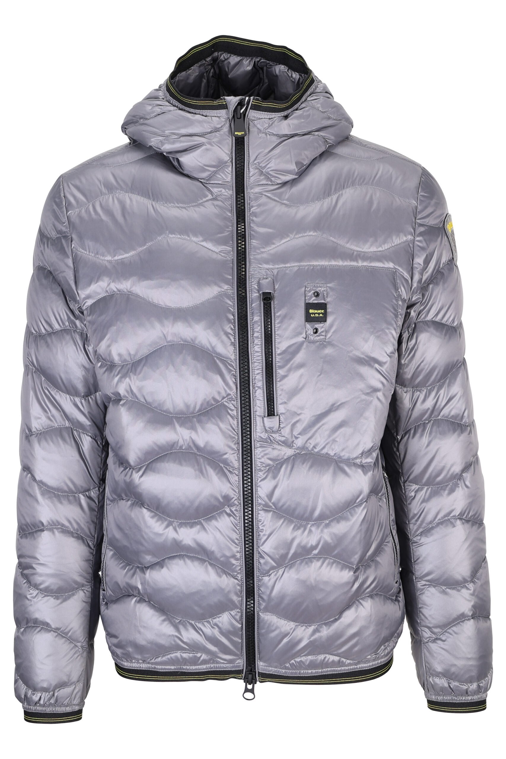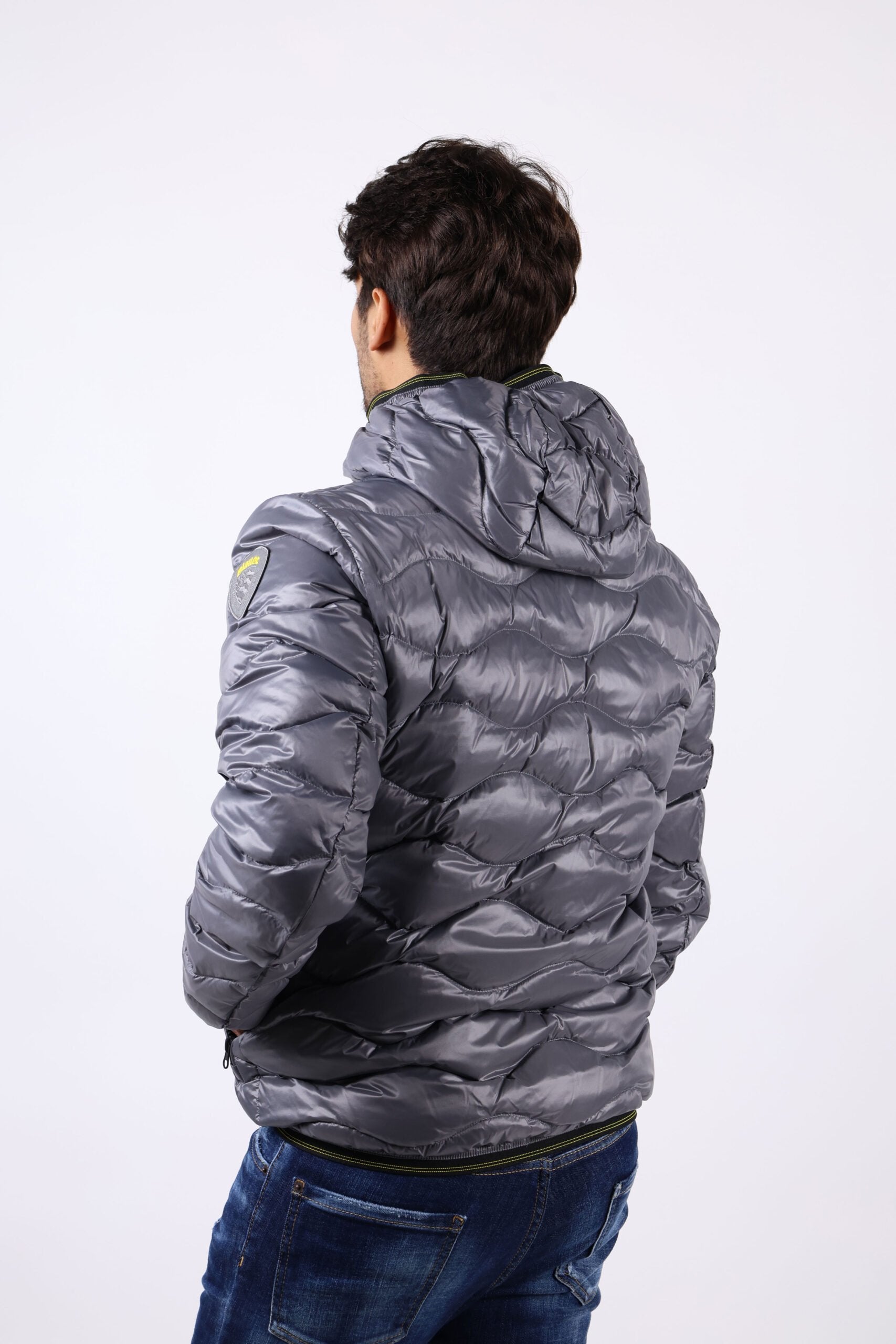 Plumífer gris fosc "wave" amb cinta de contrast i caputxa - L