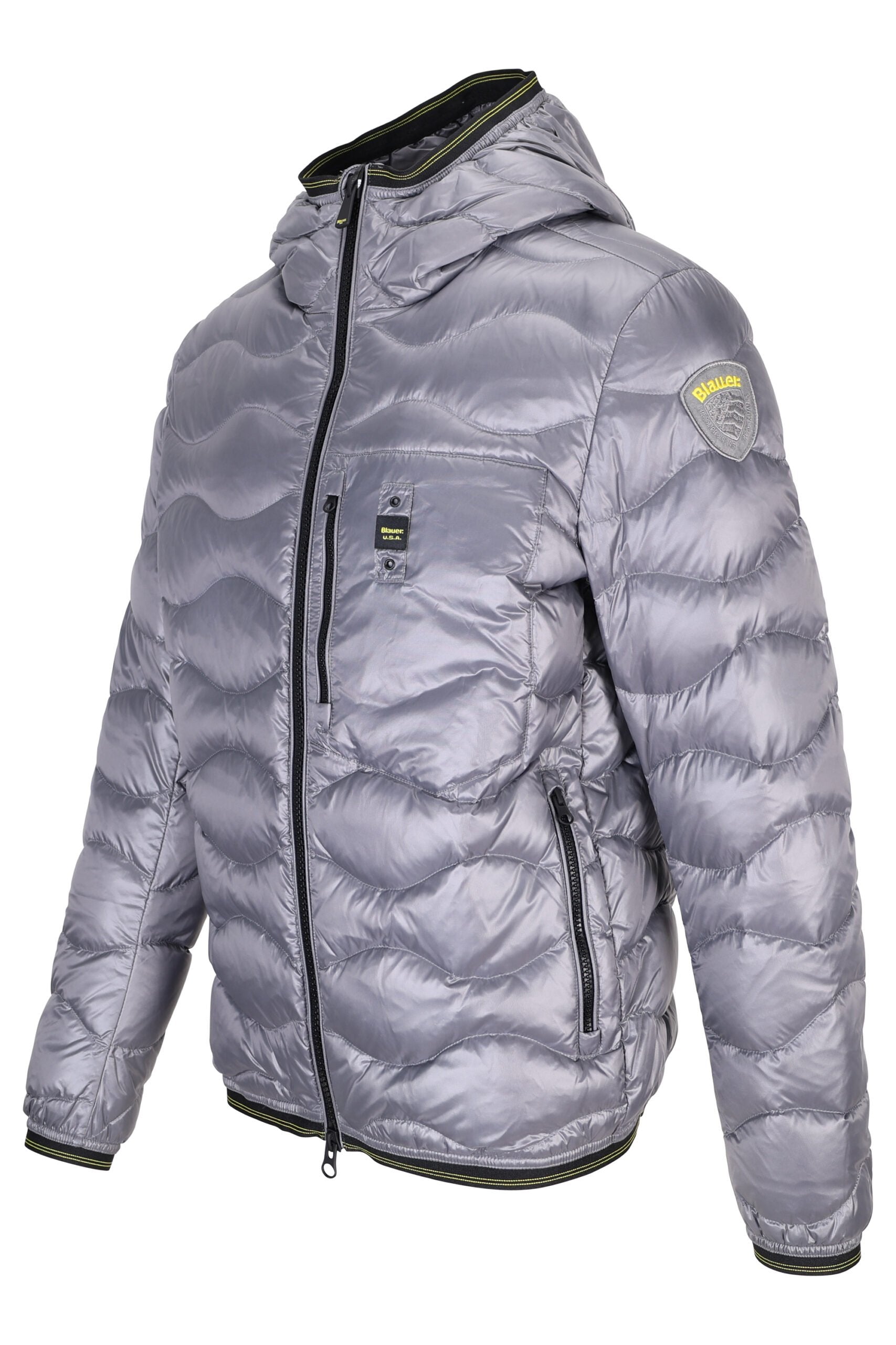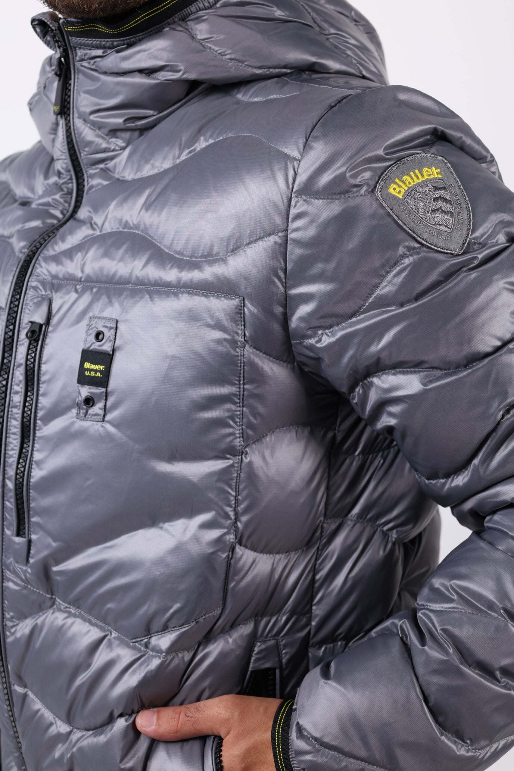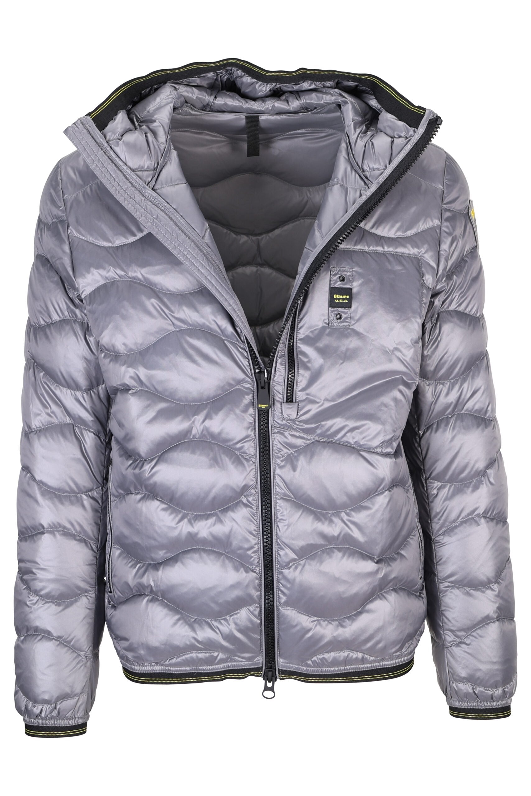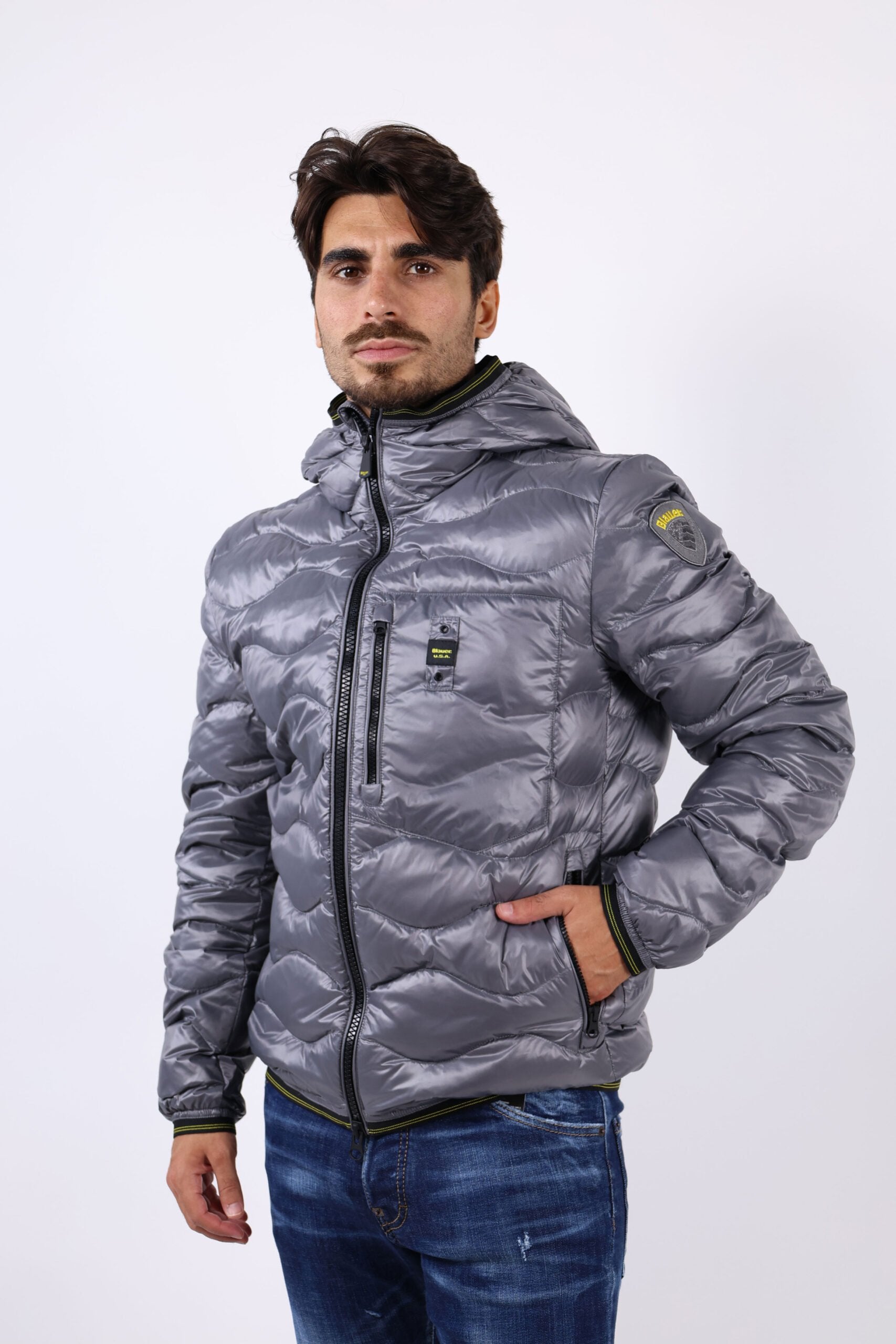 Plumífer gris fosc "wave" amb cinta de contrast i caputxa - L