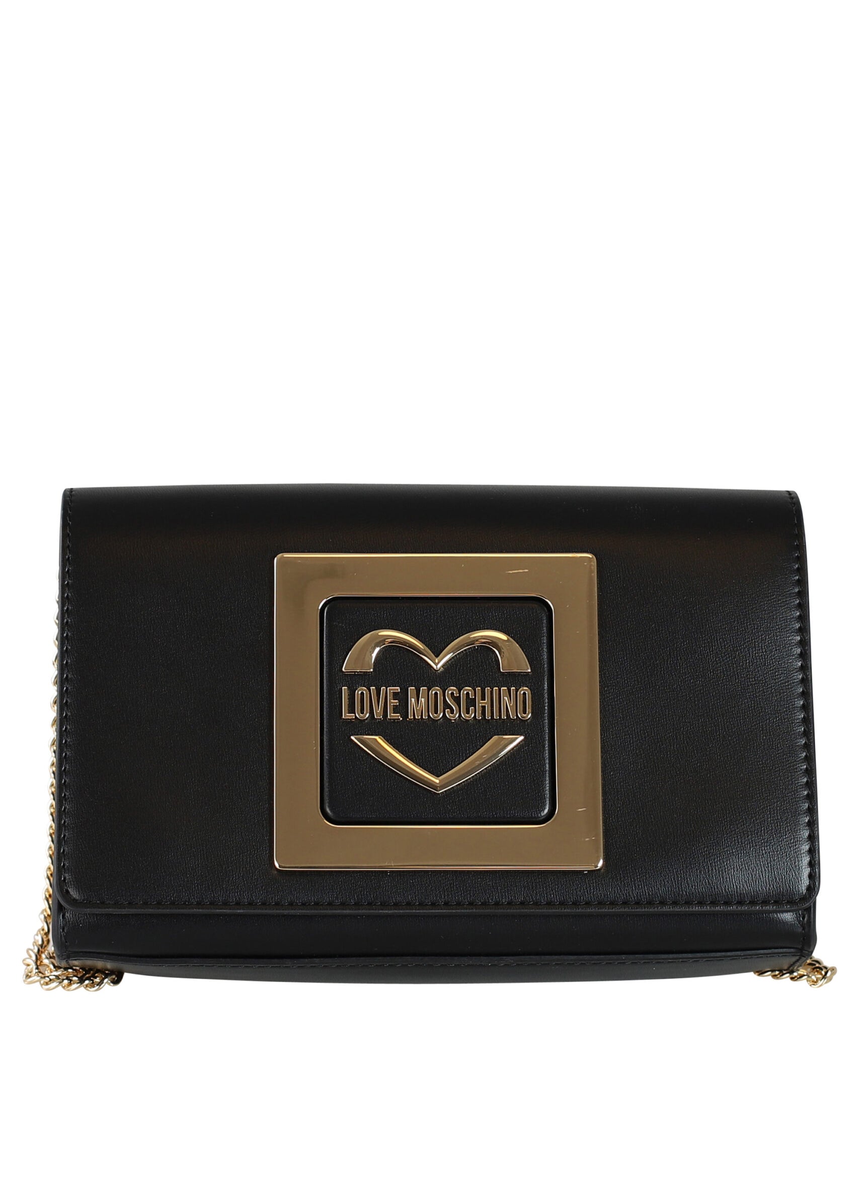 Bossa bandolera negre amb minilog "lettering" daurat i cadena