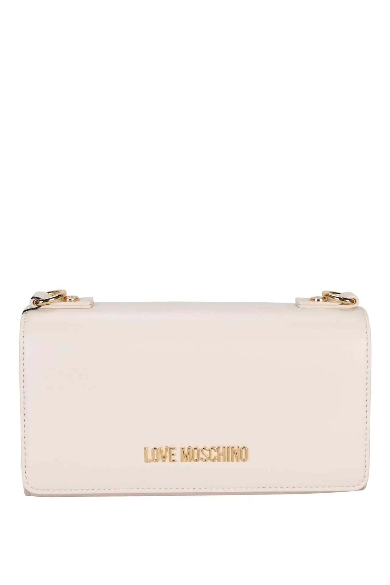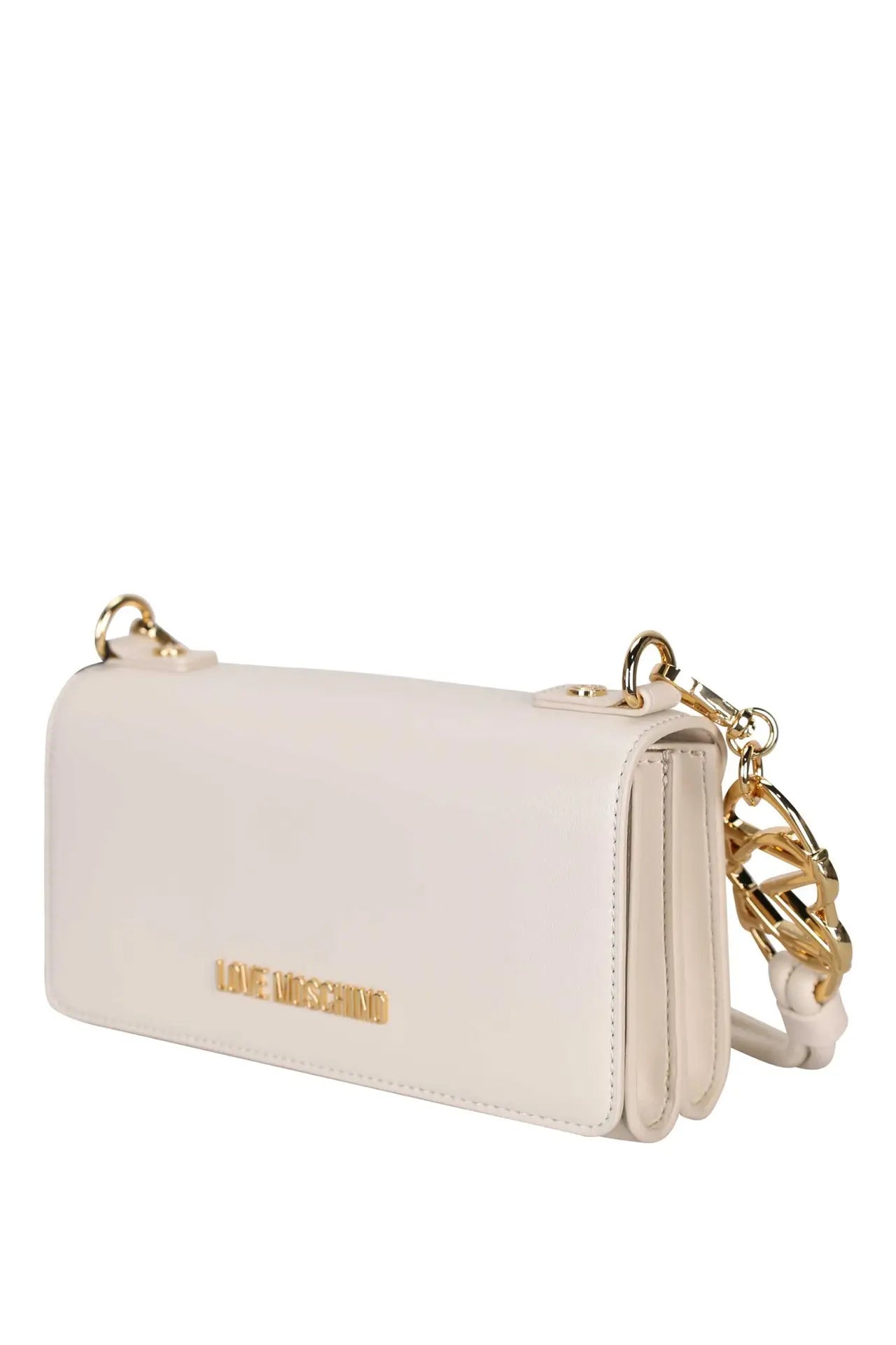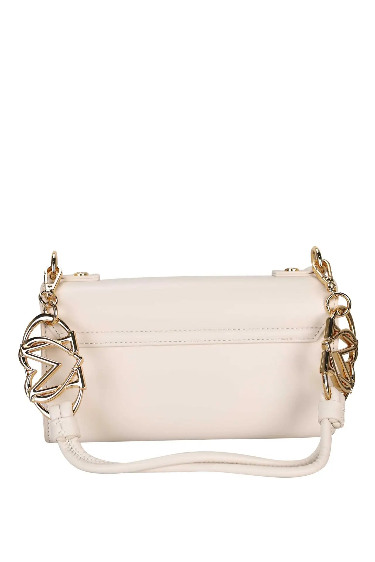 Bolso de hombro blanco marfil con asa mixta y doble logo "LM" en corazón dorado -