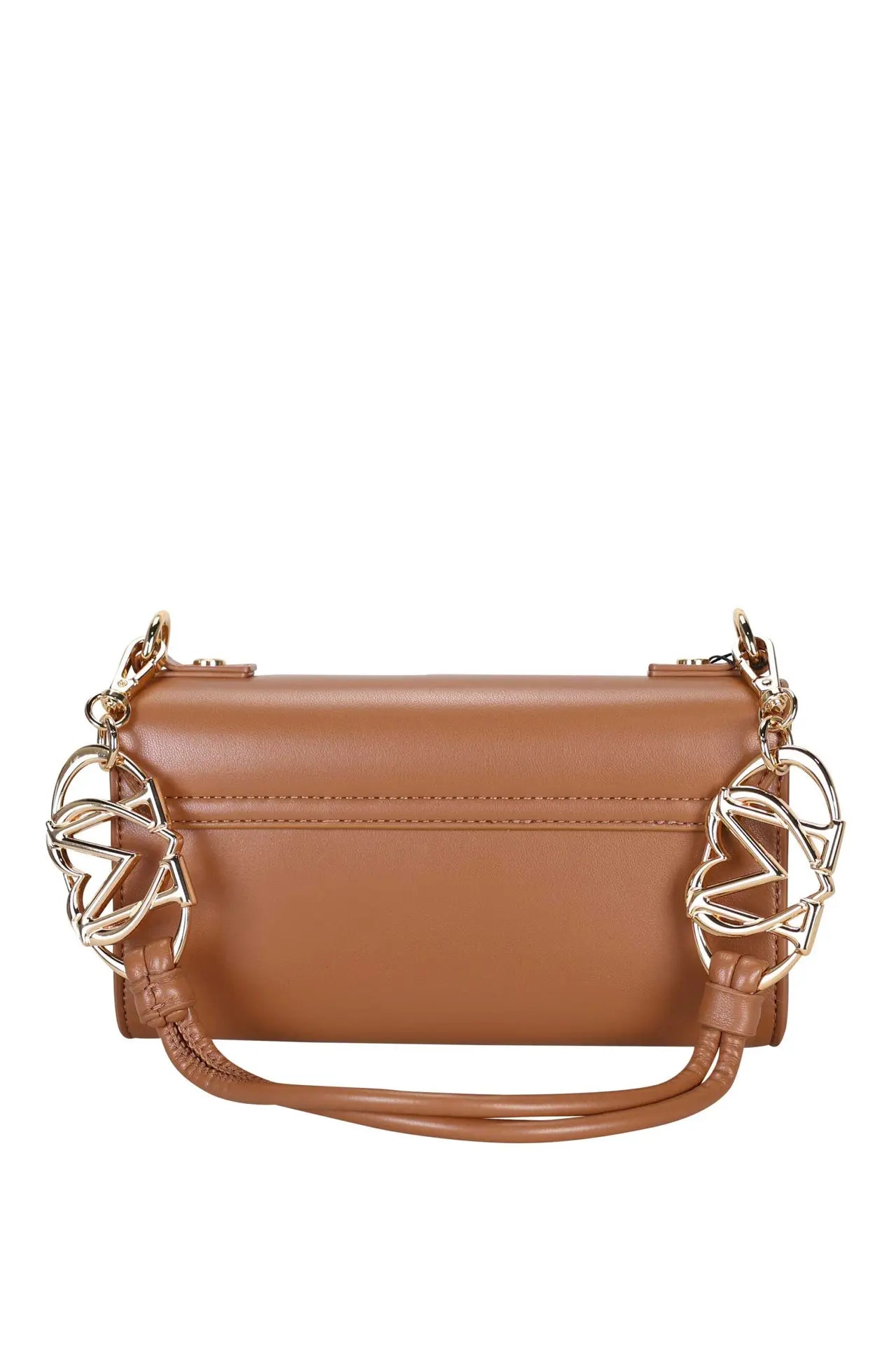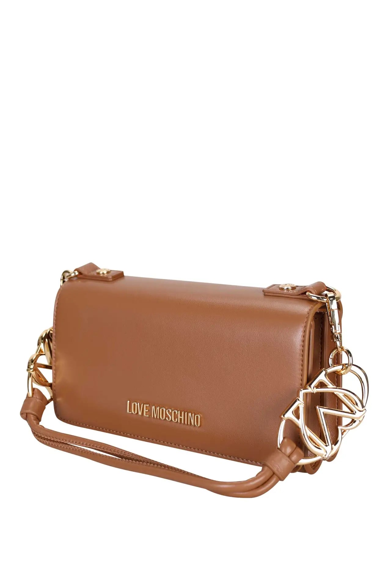 Bolso de hombro marrón con asa mixta y doble logo "LM" en corazón dorado -