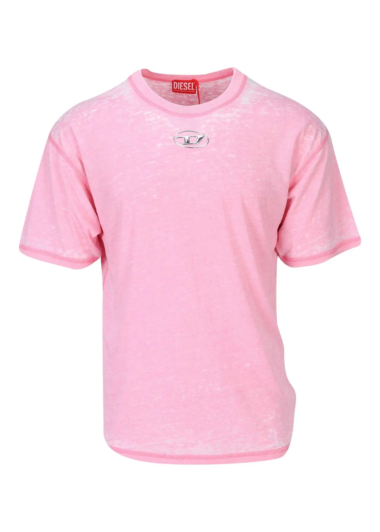 Camiseta rosa "T-BOXT" desgastada con minilogo "Oval-D" -
