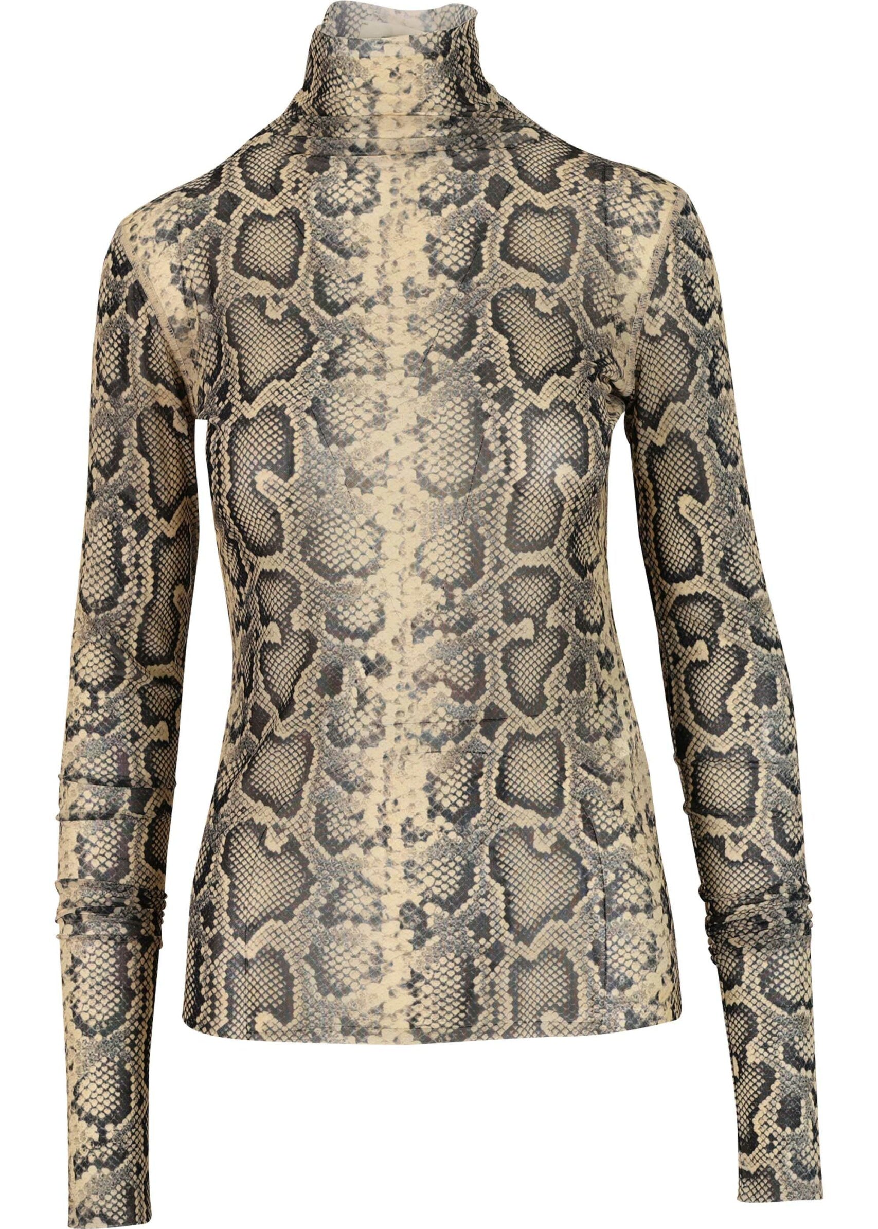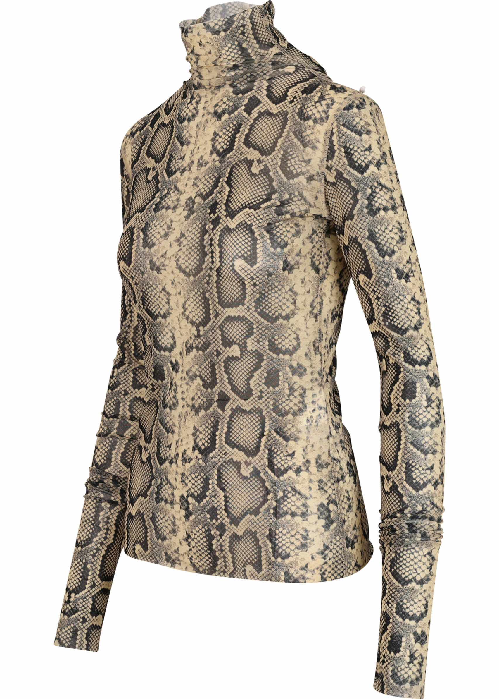 Samarreta beix amb estampat serp màniga llarga i semitransparent