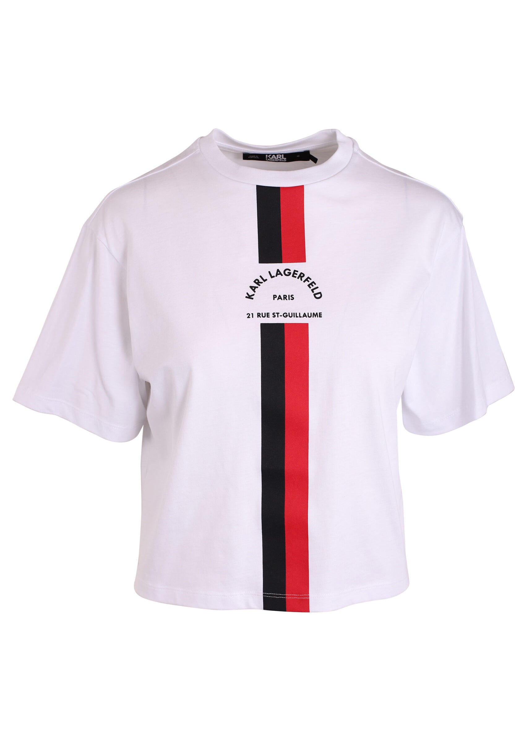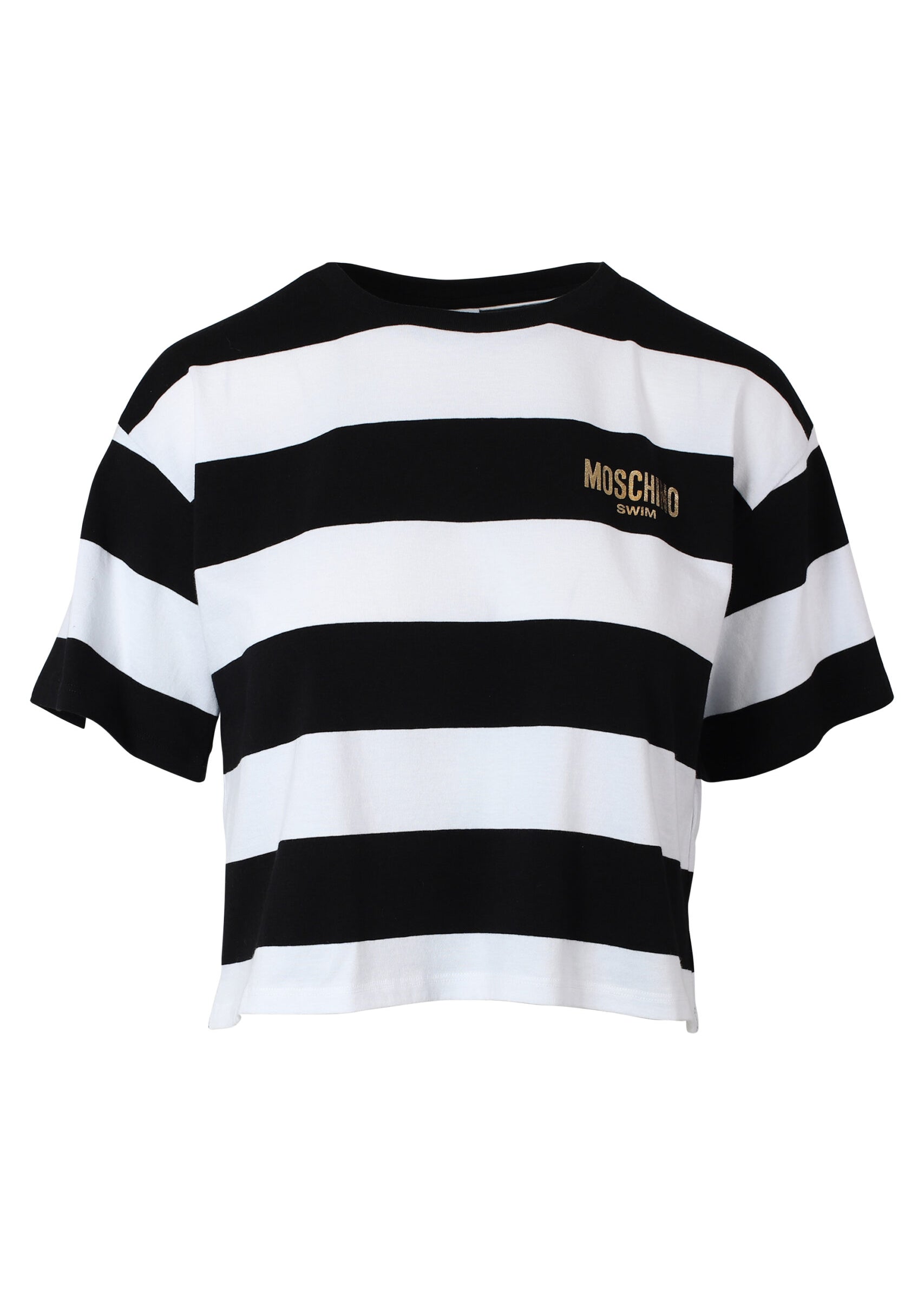 Samarreta bicolor de ratlles blanques i negres amb minilogo daurat