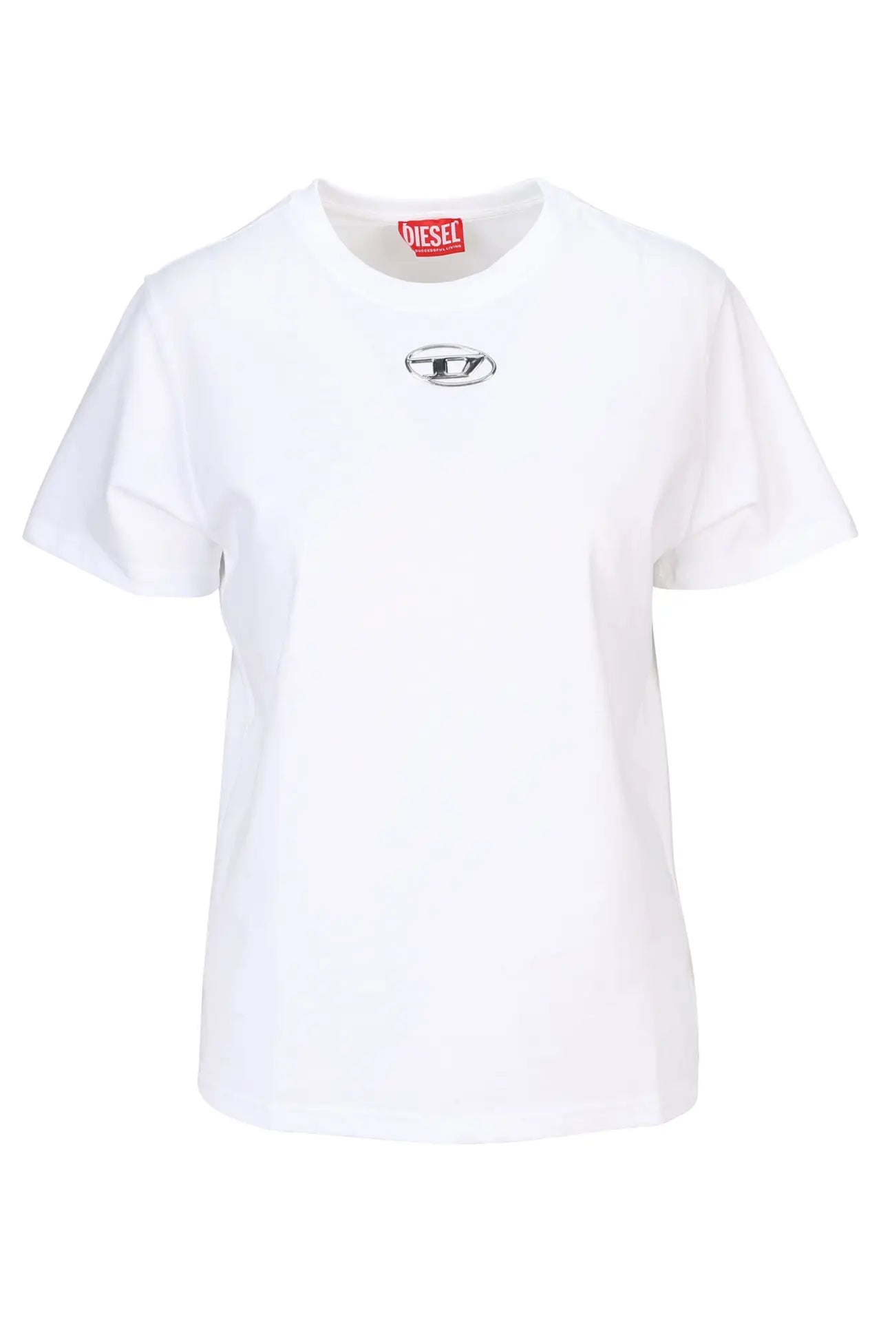 Camiseta blanca "oversize" con logo "Oval-D" en metal -