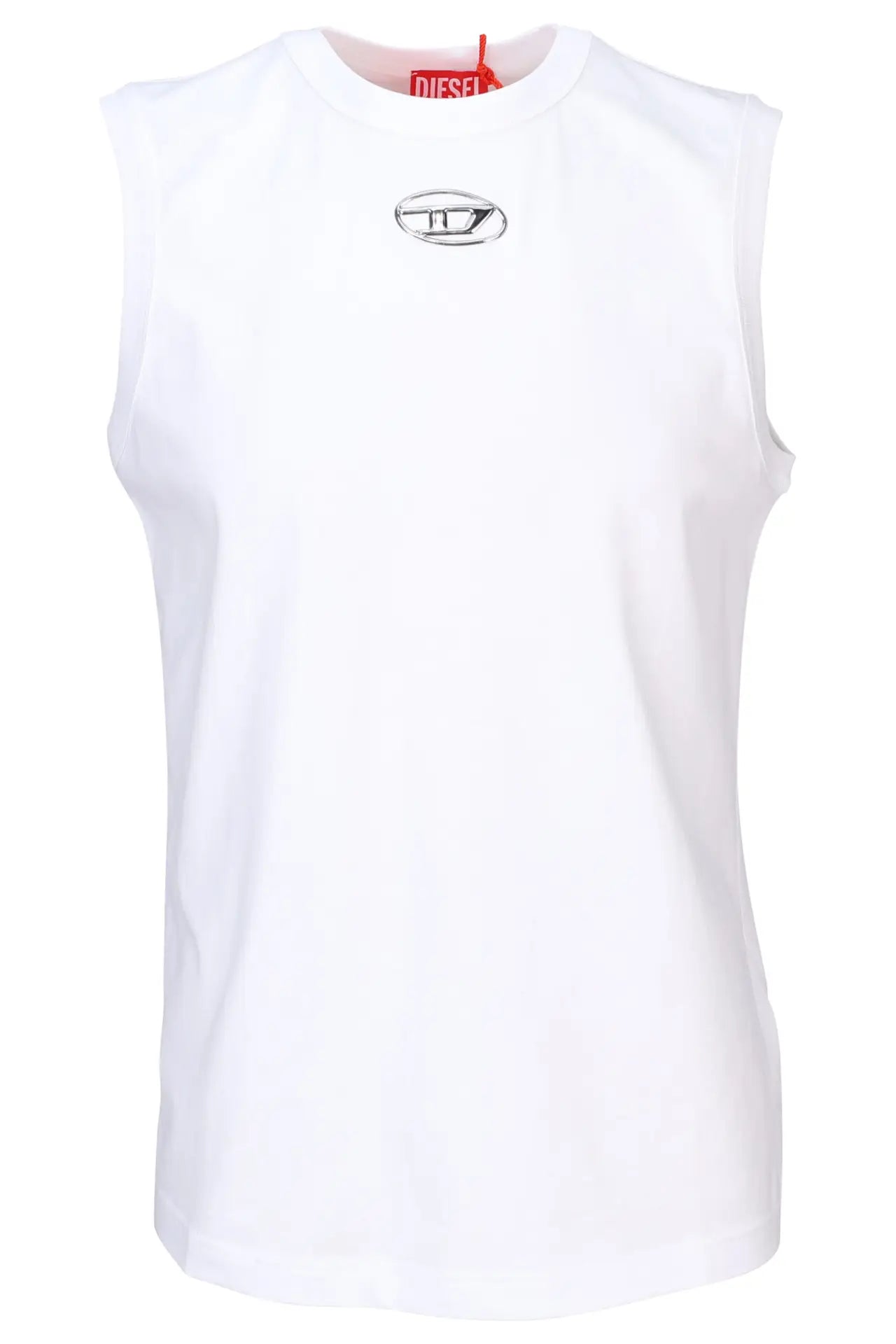 Camiseta blanca sin mangas "T-BISCO" con minilogo "Oval-D" -