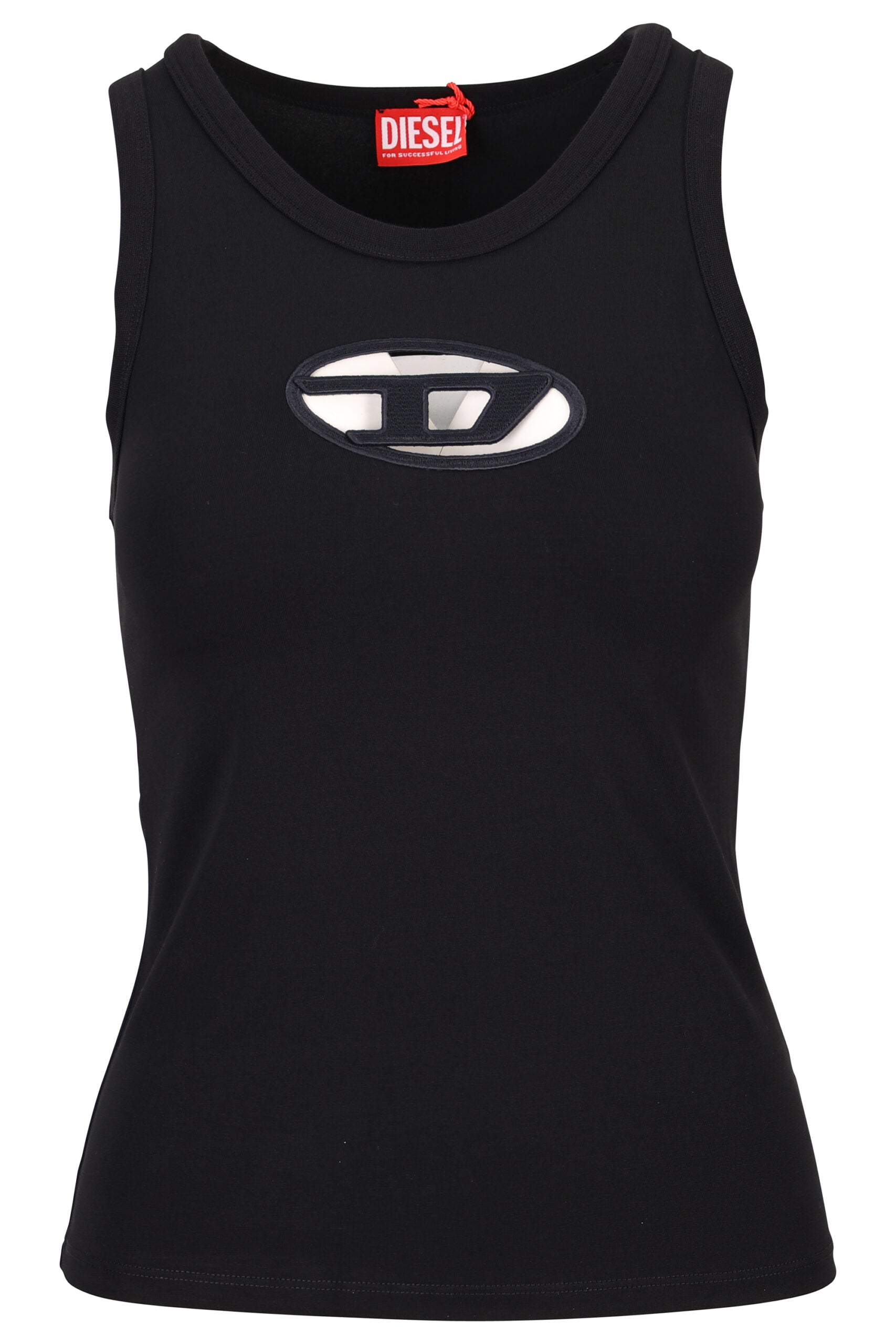 Camiseta negra sin mangas con logo "Oval-D" -