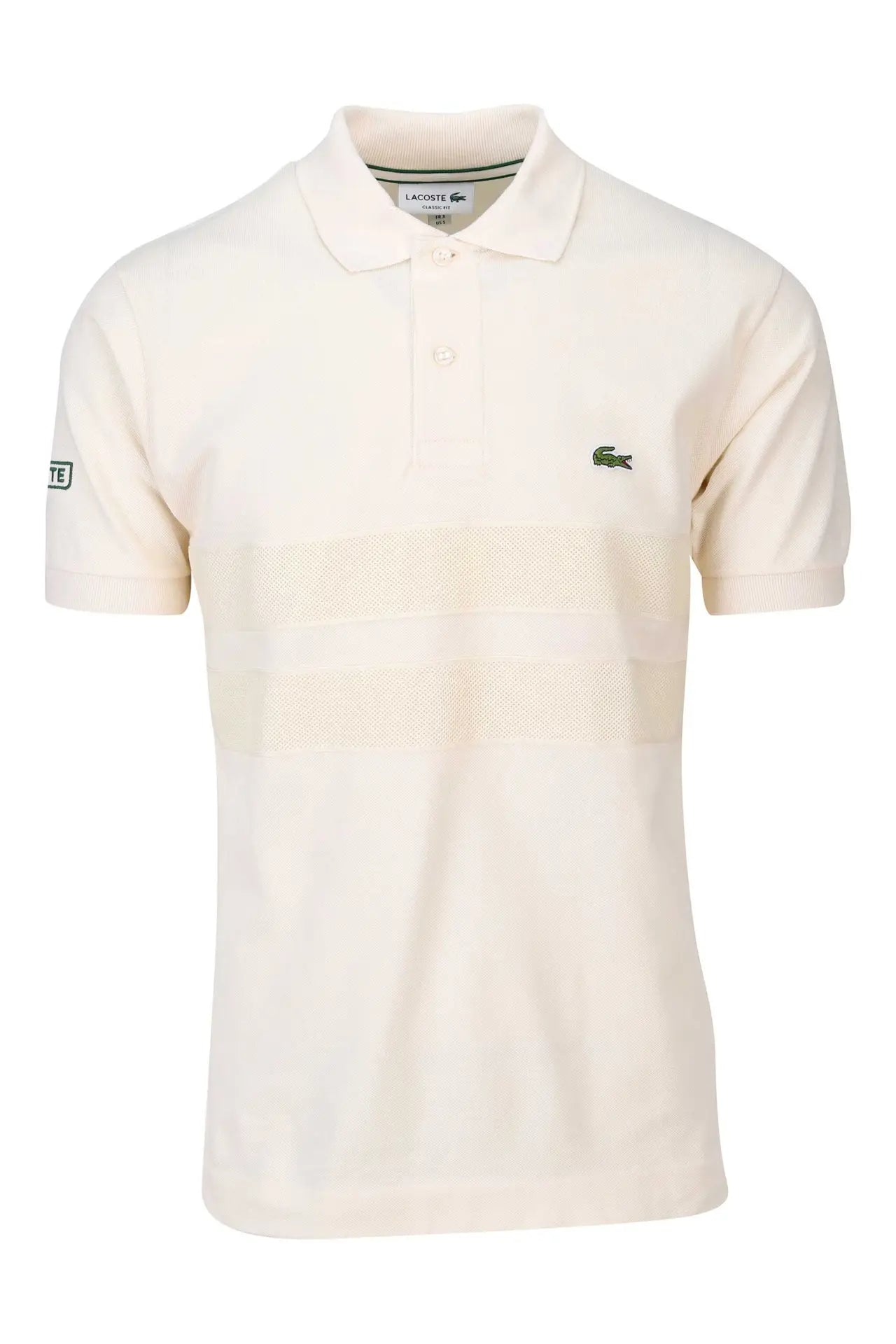Polo beige con lineas horizontales monocromáticas y minilogo "lacoste" - XXL -