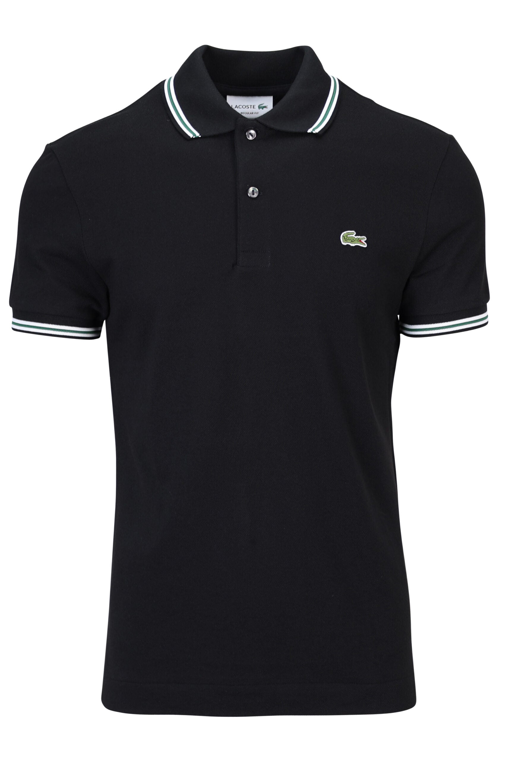 Polo negro con lineas blancas en cuello y minilogo "lacoste" -