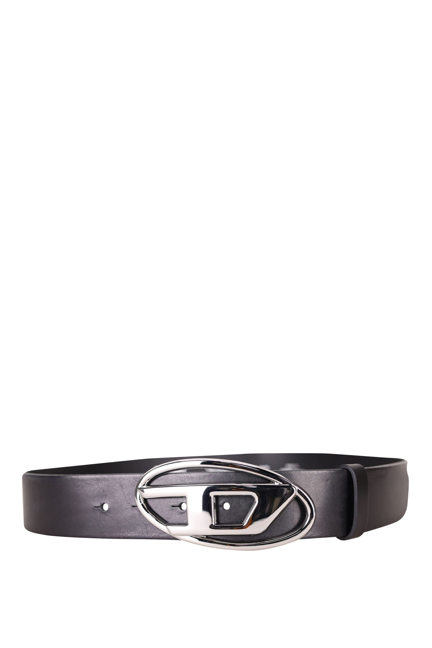 Cinturón negro con minilogo "Oval-D" en metal plateado - 80 -