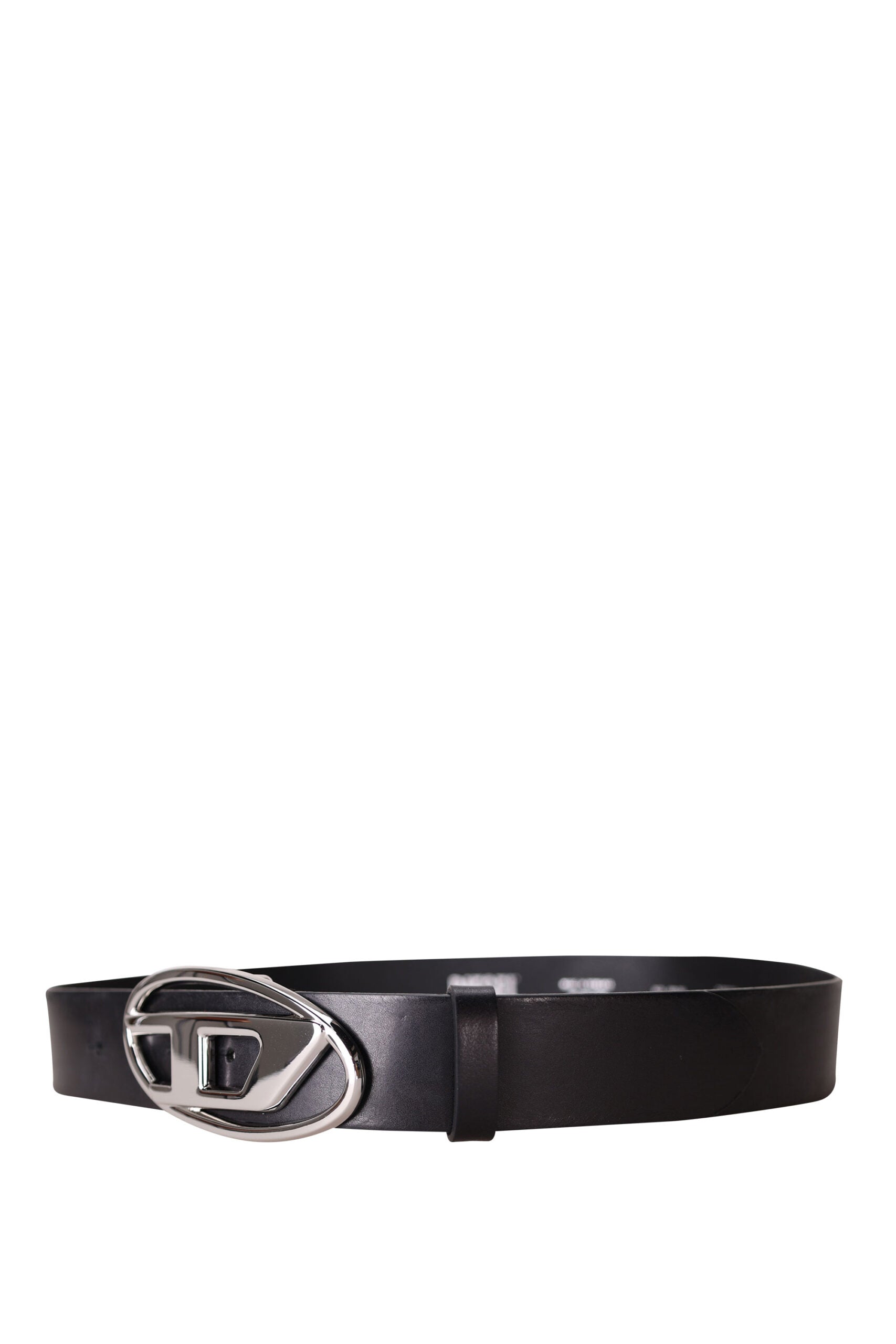 Cinturón negro con minilogo "Oval-D" en metal plateado -