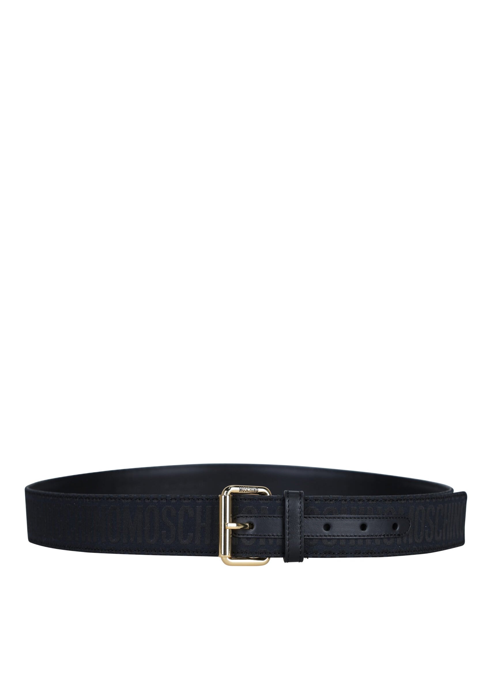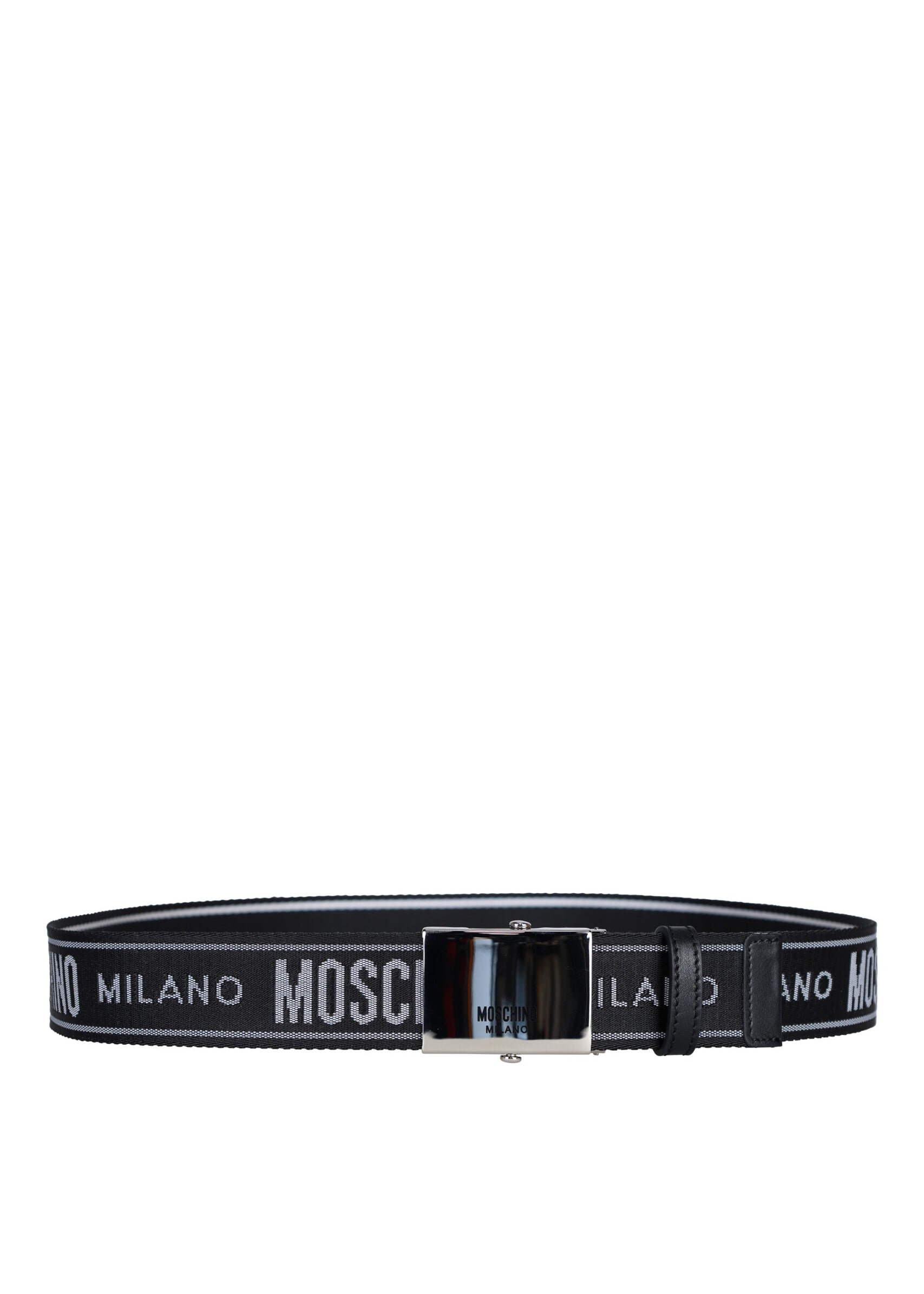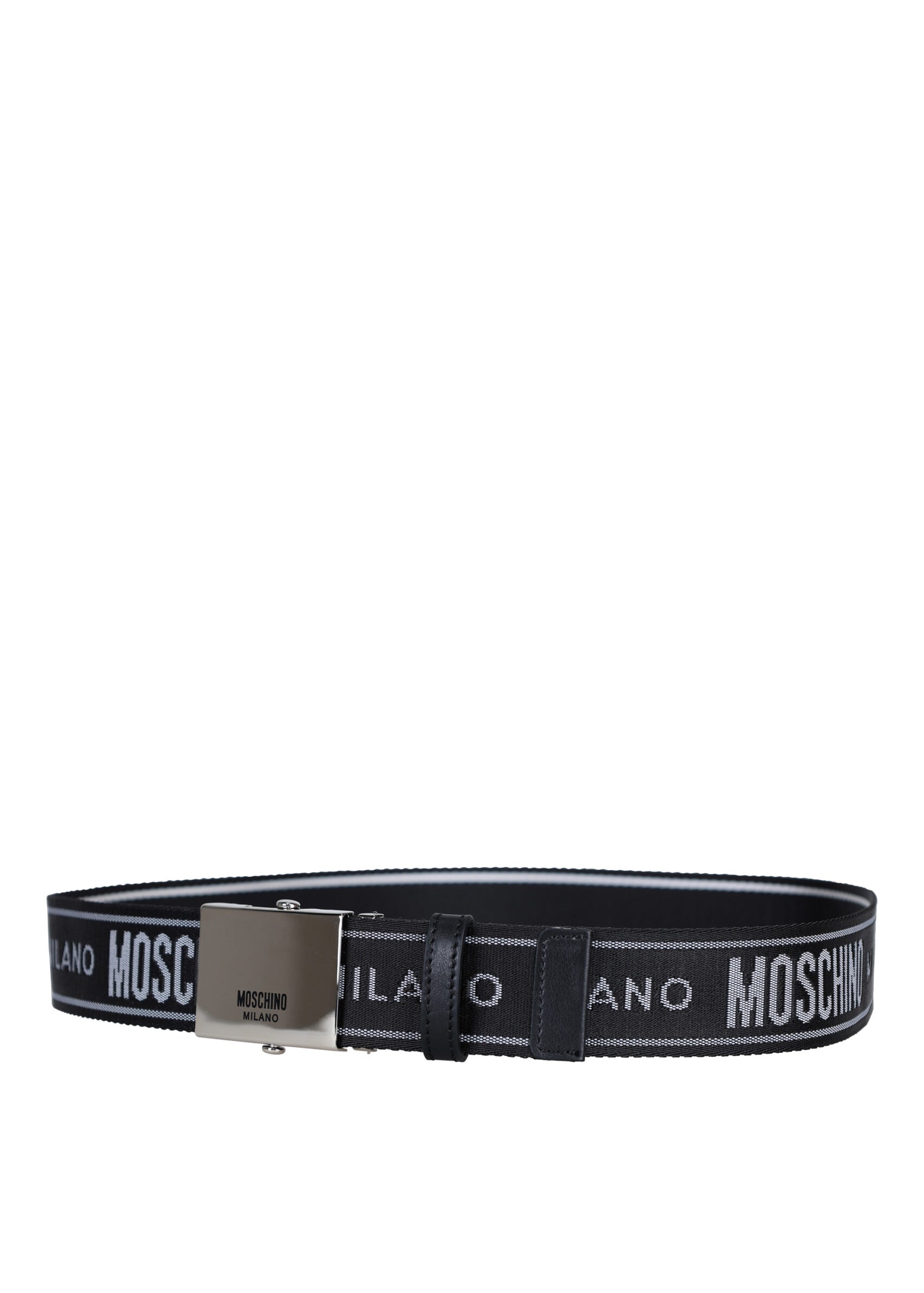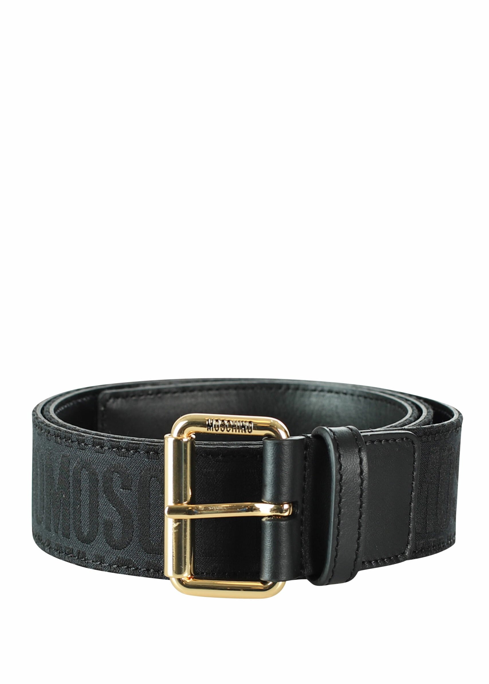 Cinturó negre amb "all over logo" a cinta i placa platejada