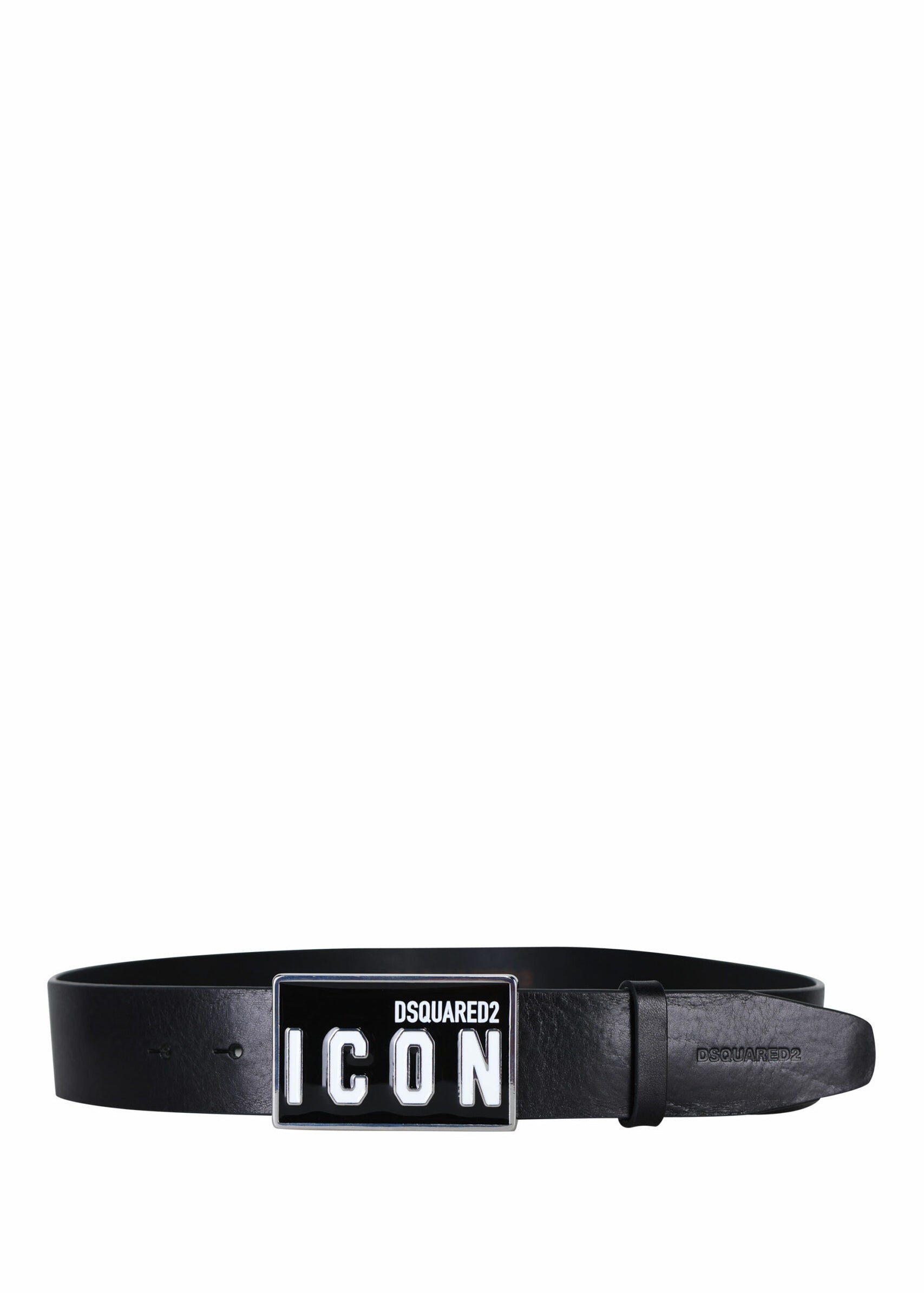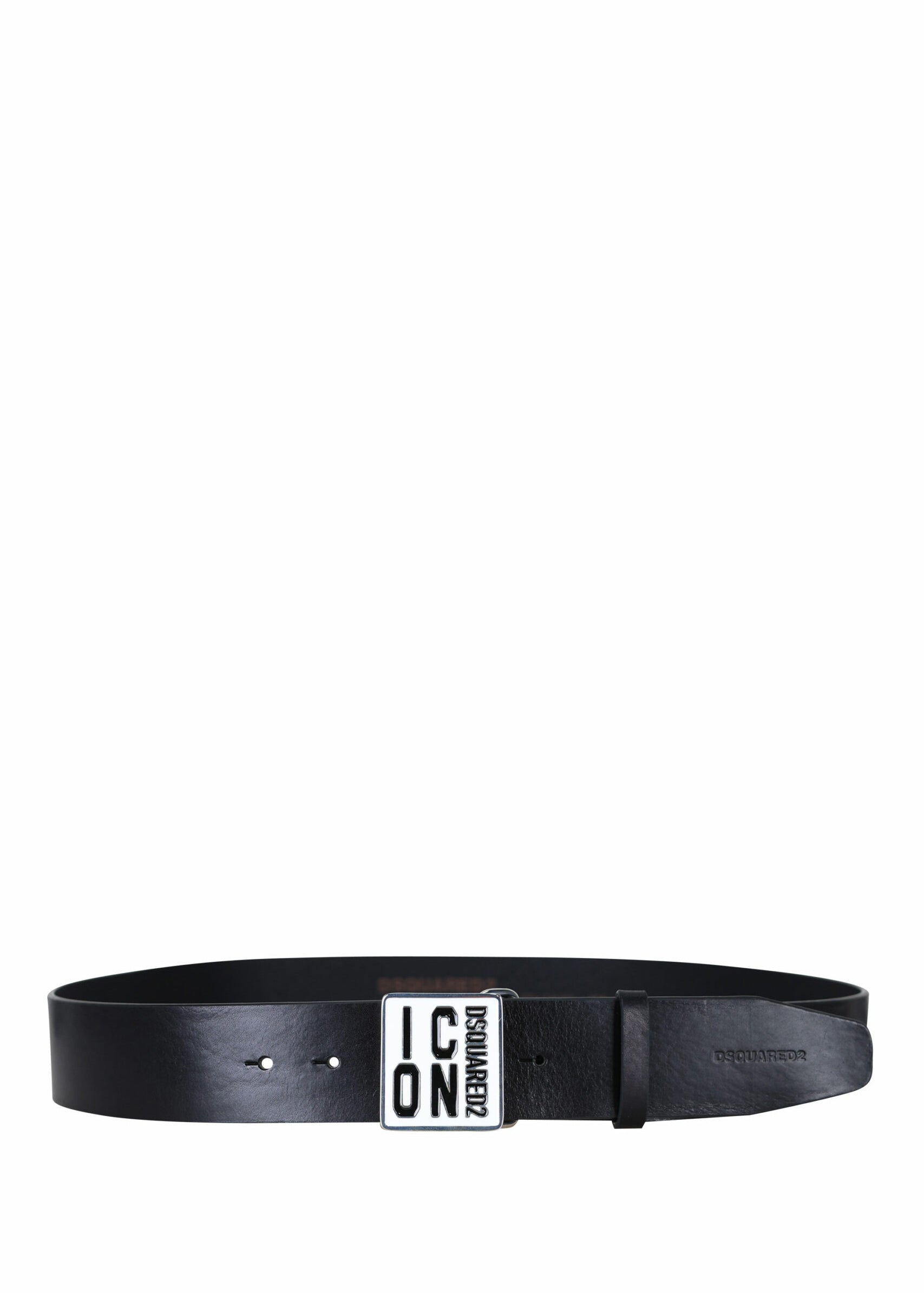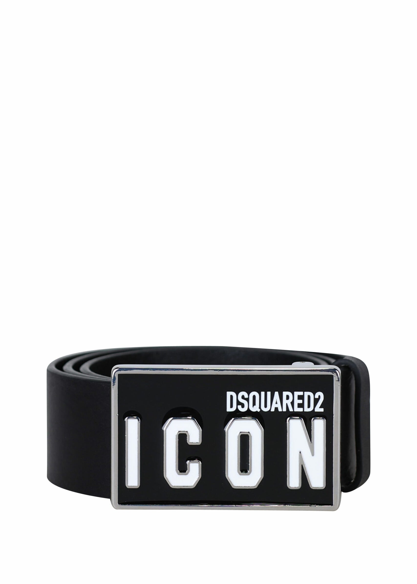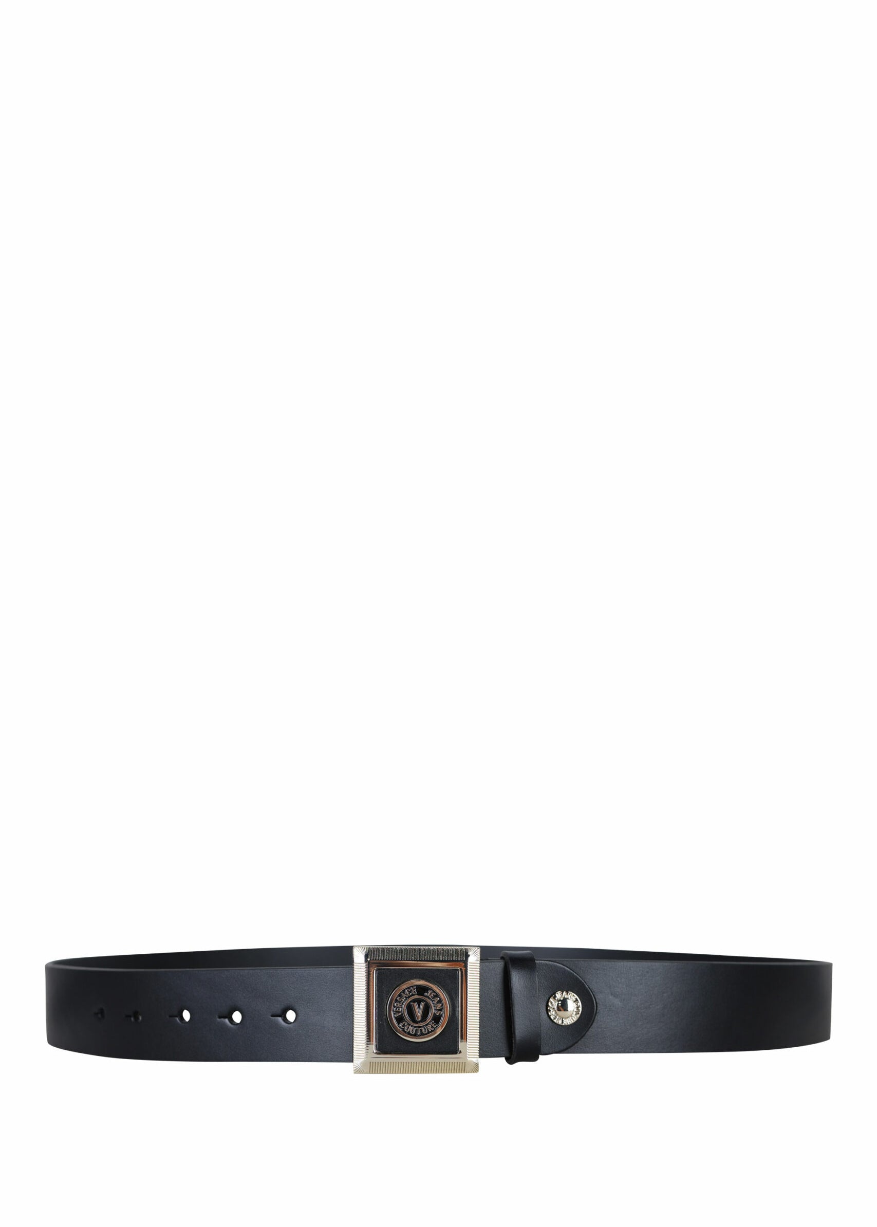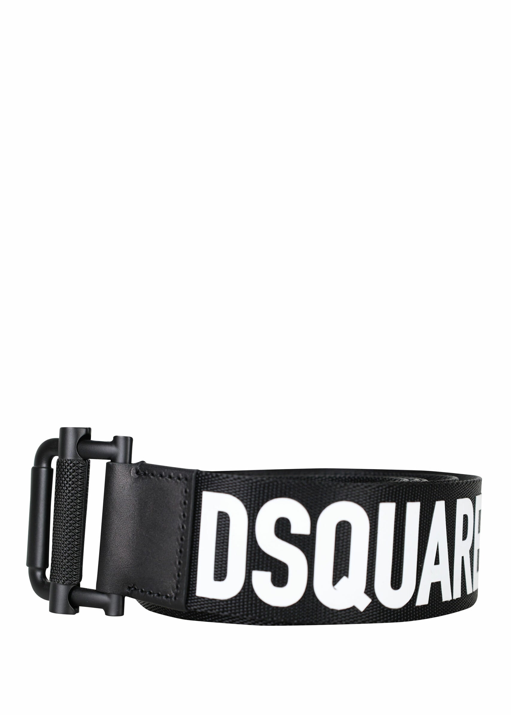 Cinturó negre amb "all over logo" a cinta i placa platejada
