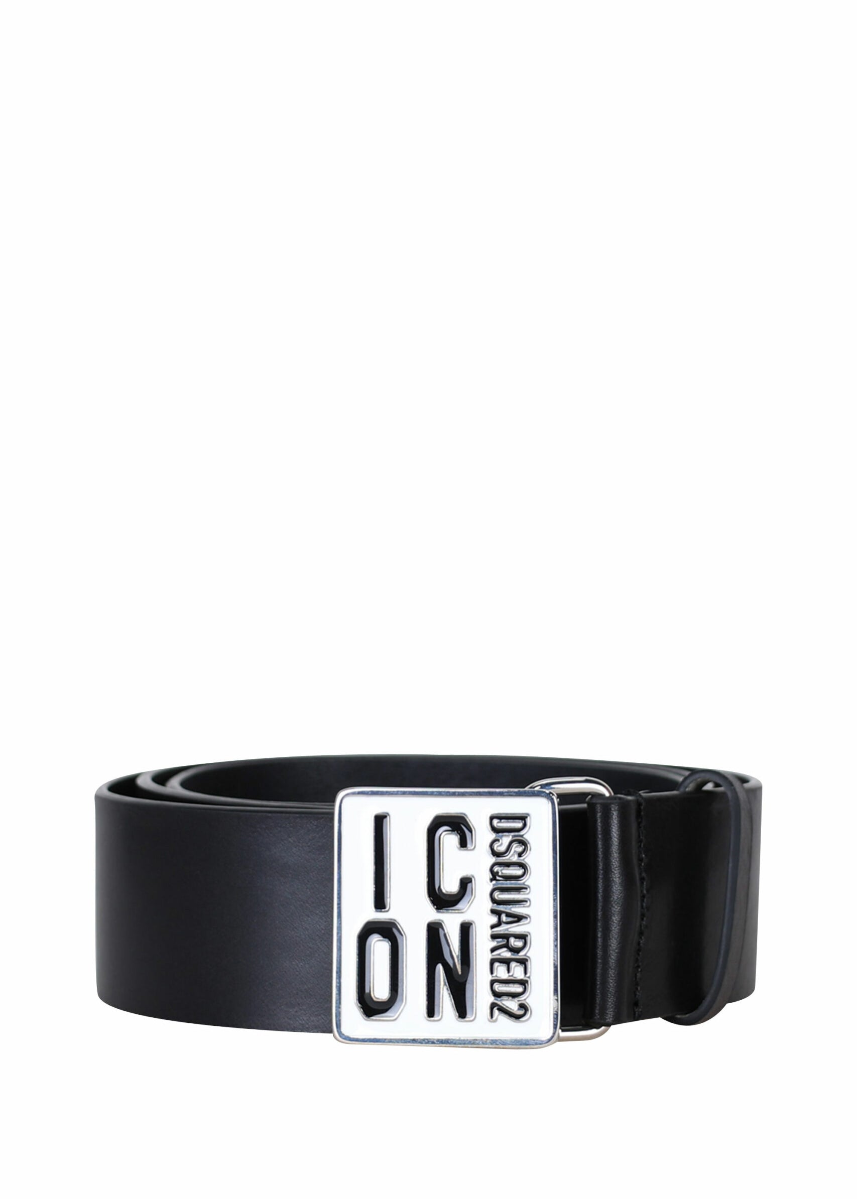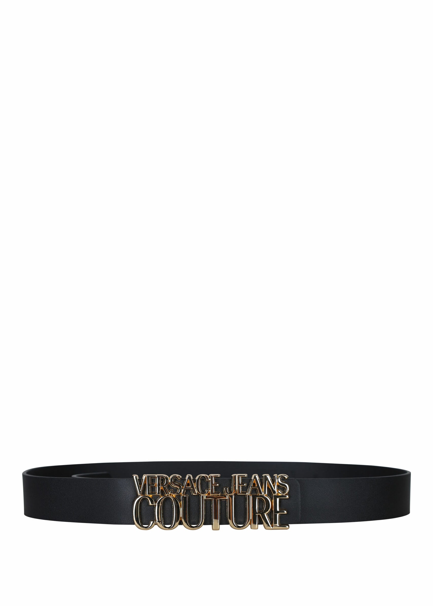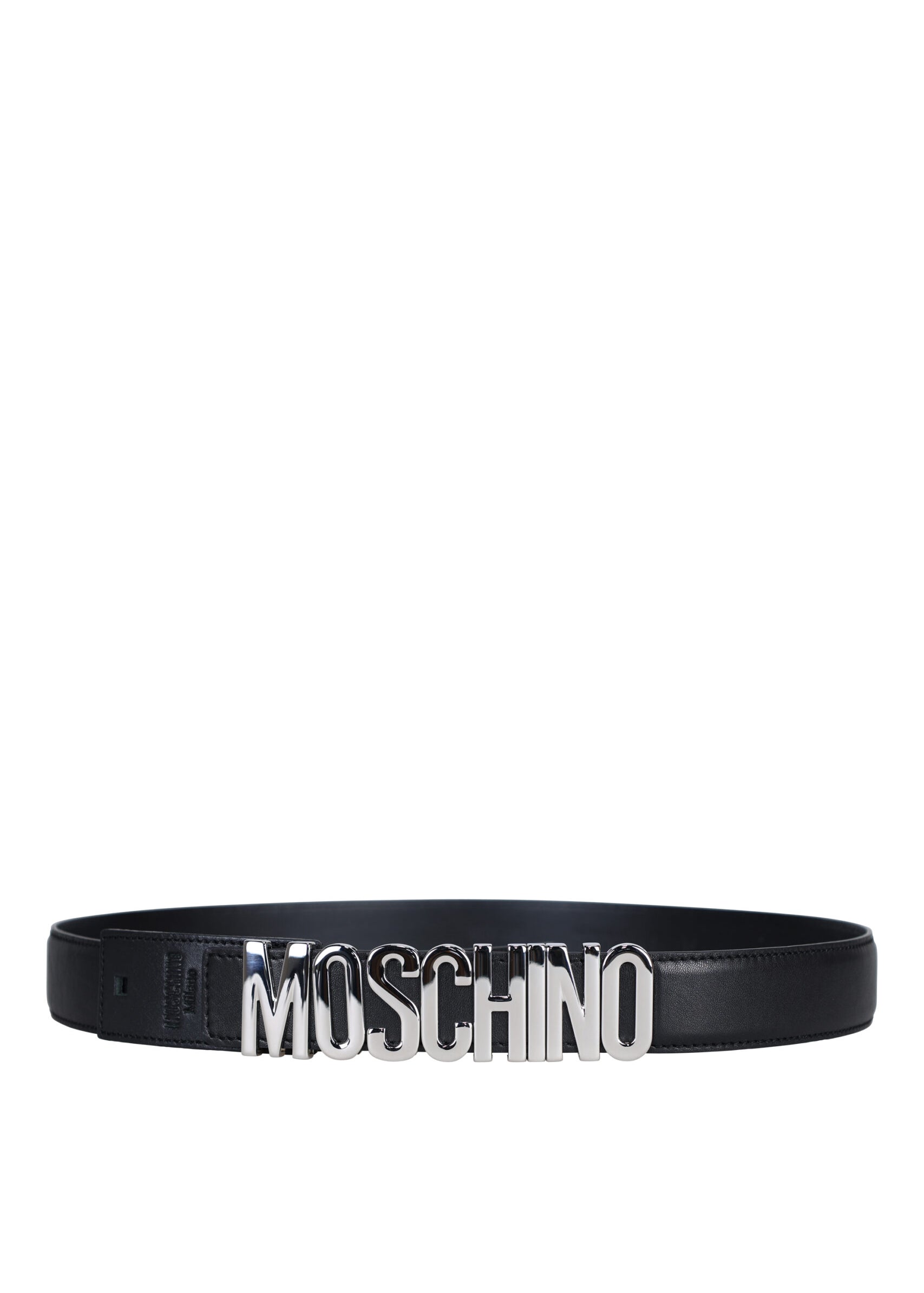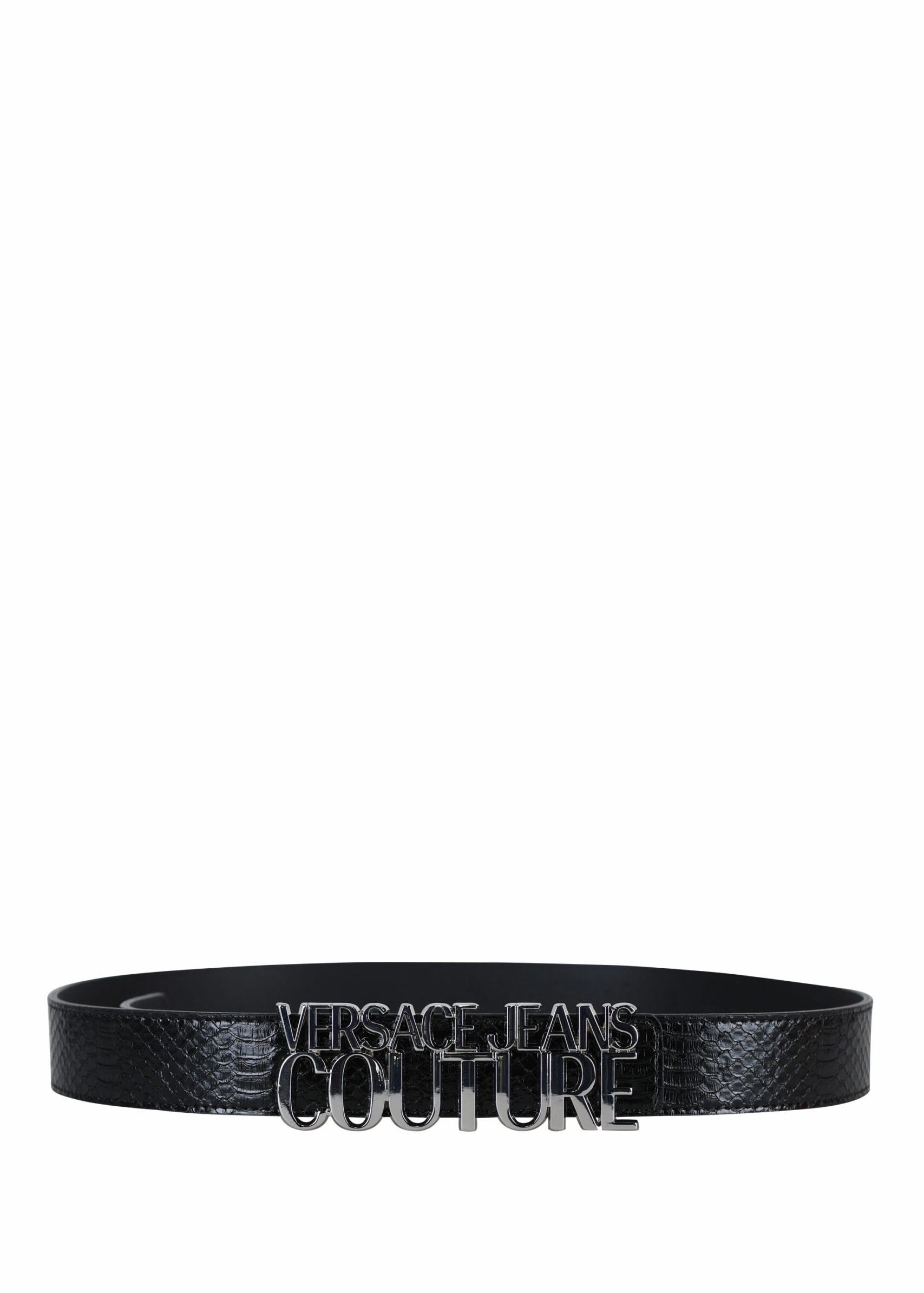 Cinturó negre amb textura de serp i logo "lettering" platejat