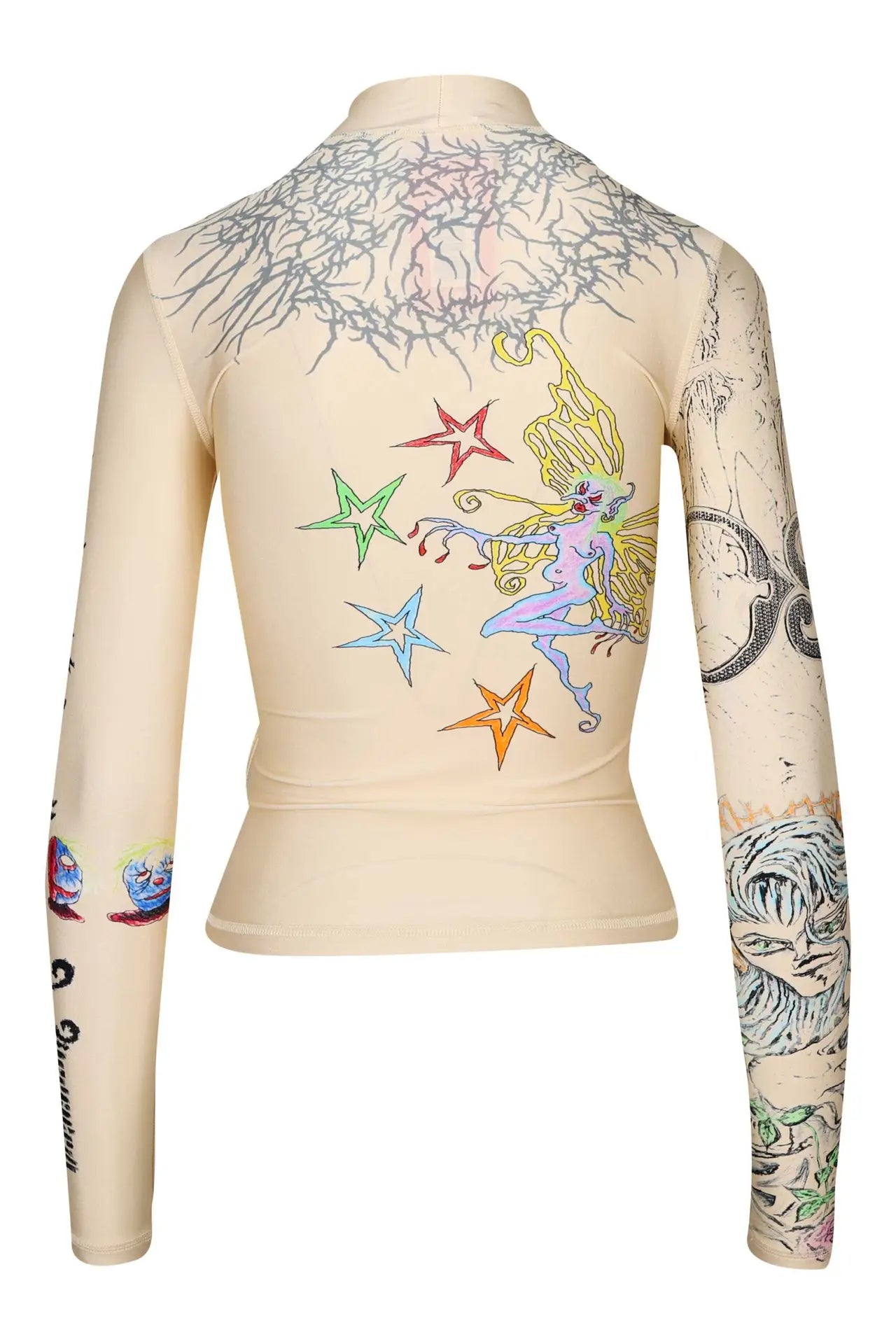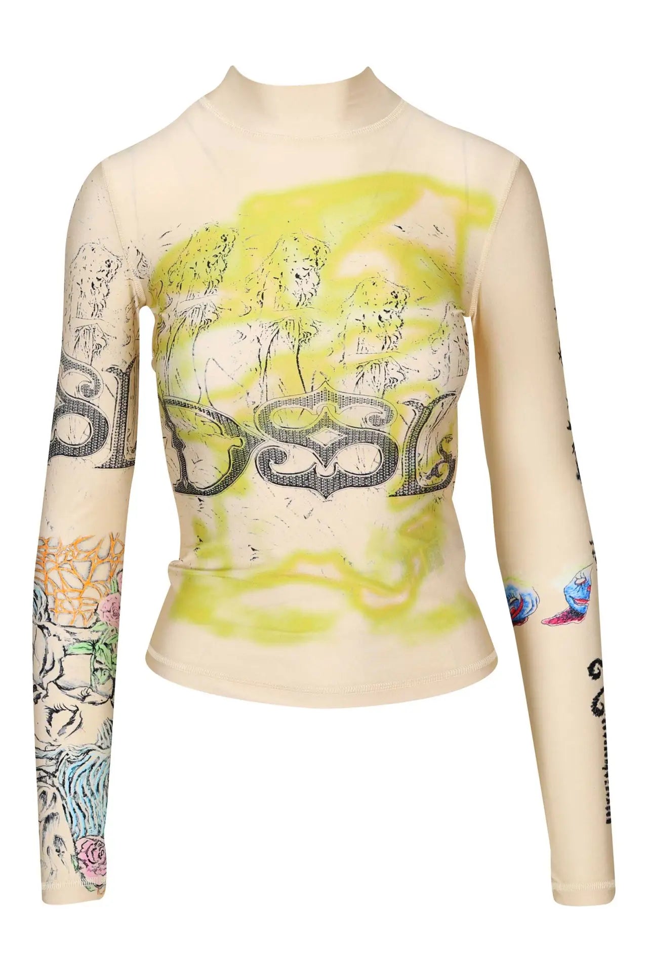 Camiseta manga larga beige con verde y estampado "T-IMUN" -