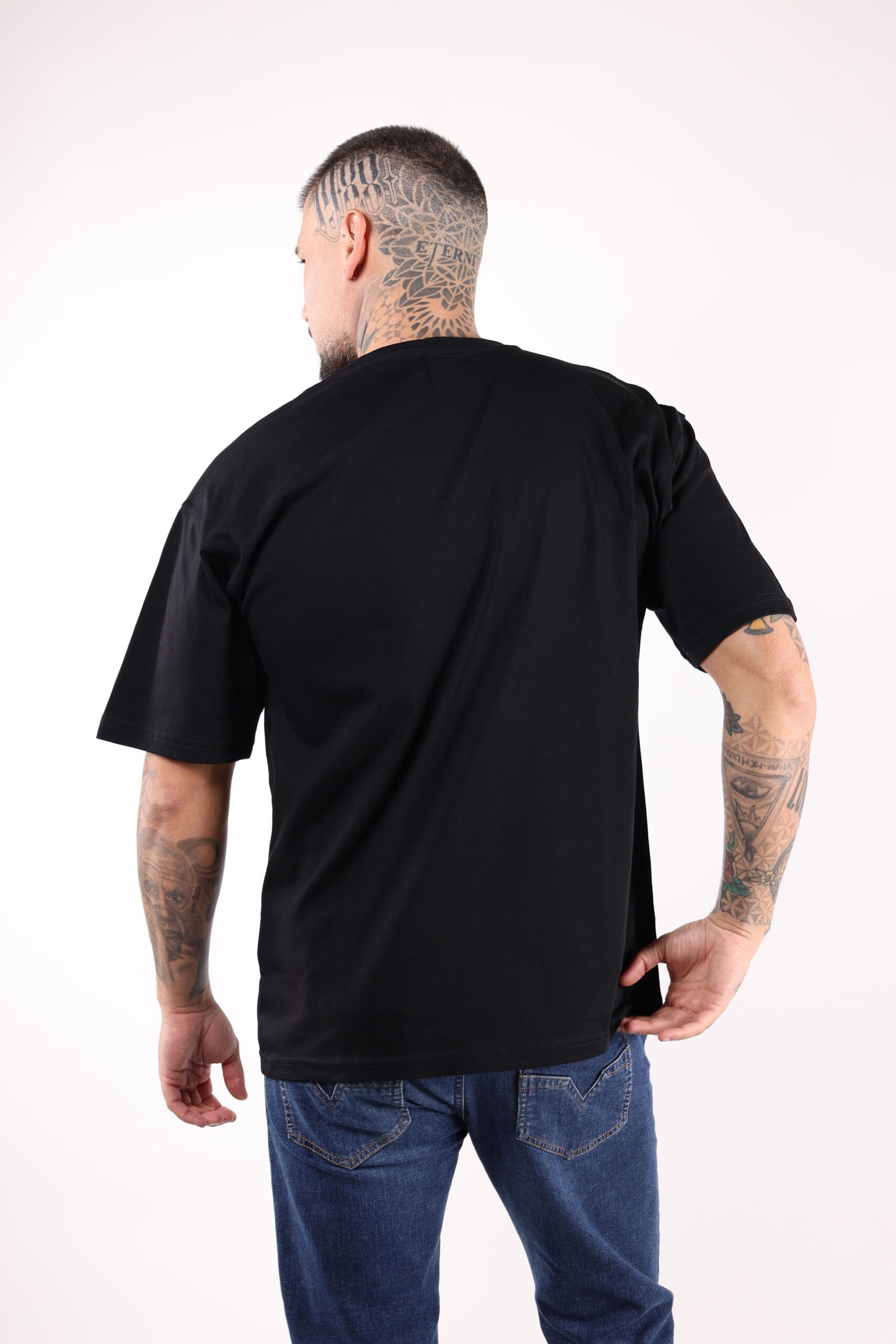 Samarreta negra amb maxil·logo "megoval-D" tenyit - L -
