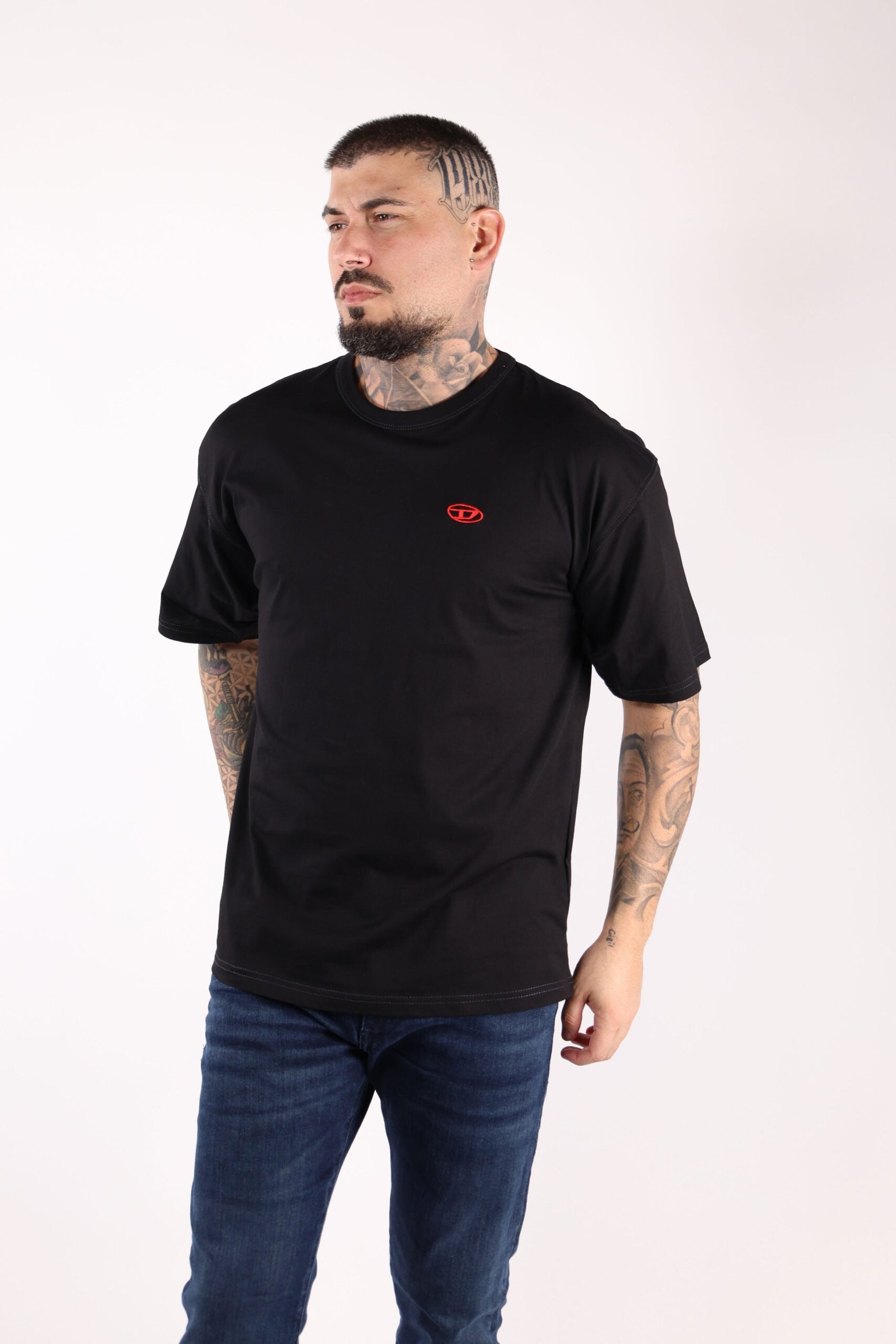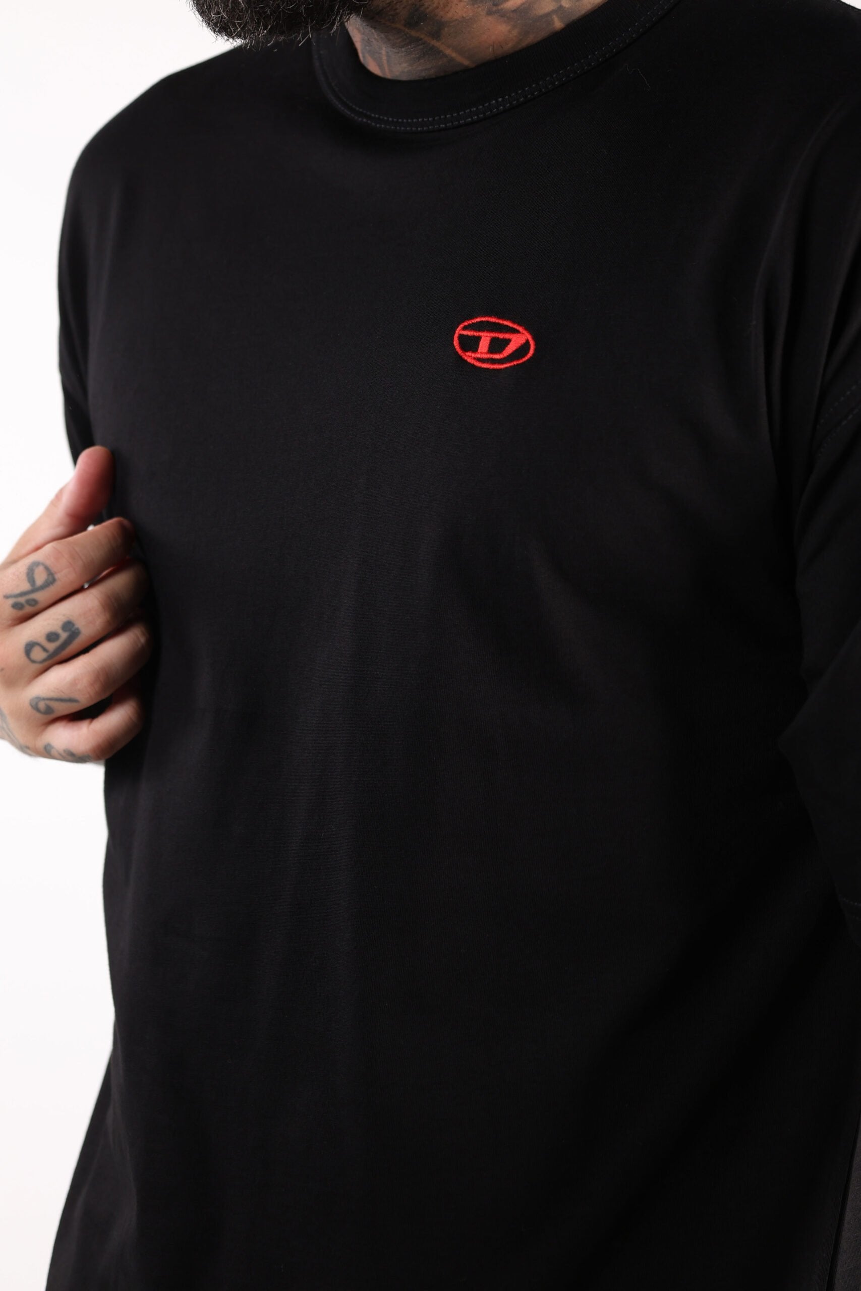 Samarreta negra amb minilog "oval-D" brodat i maxil·log darrere vermell - L -
