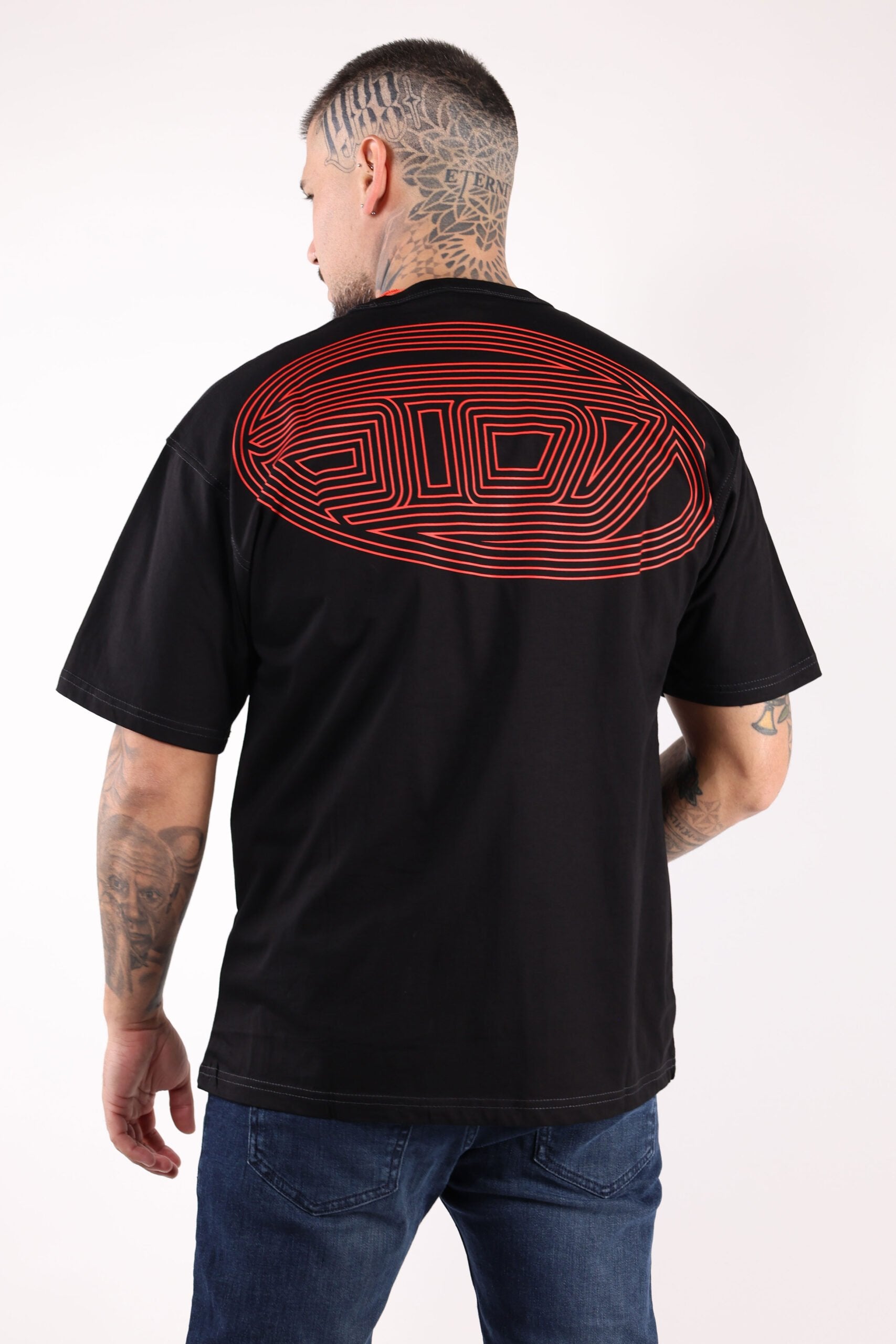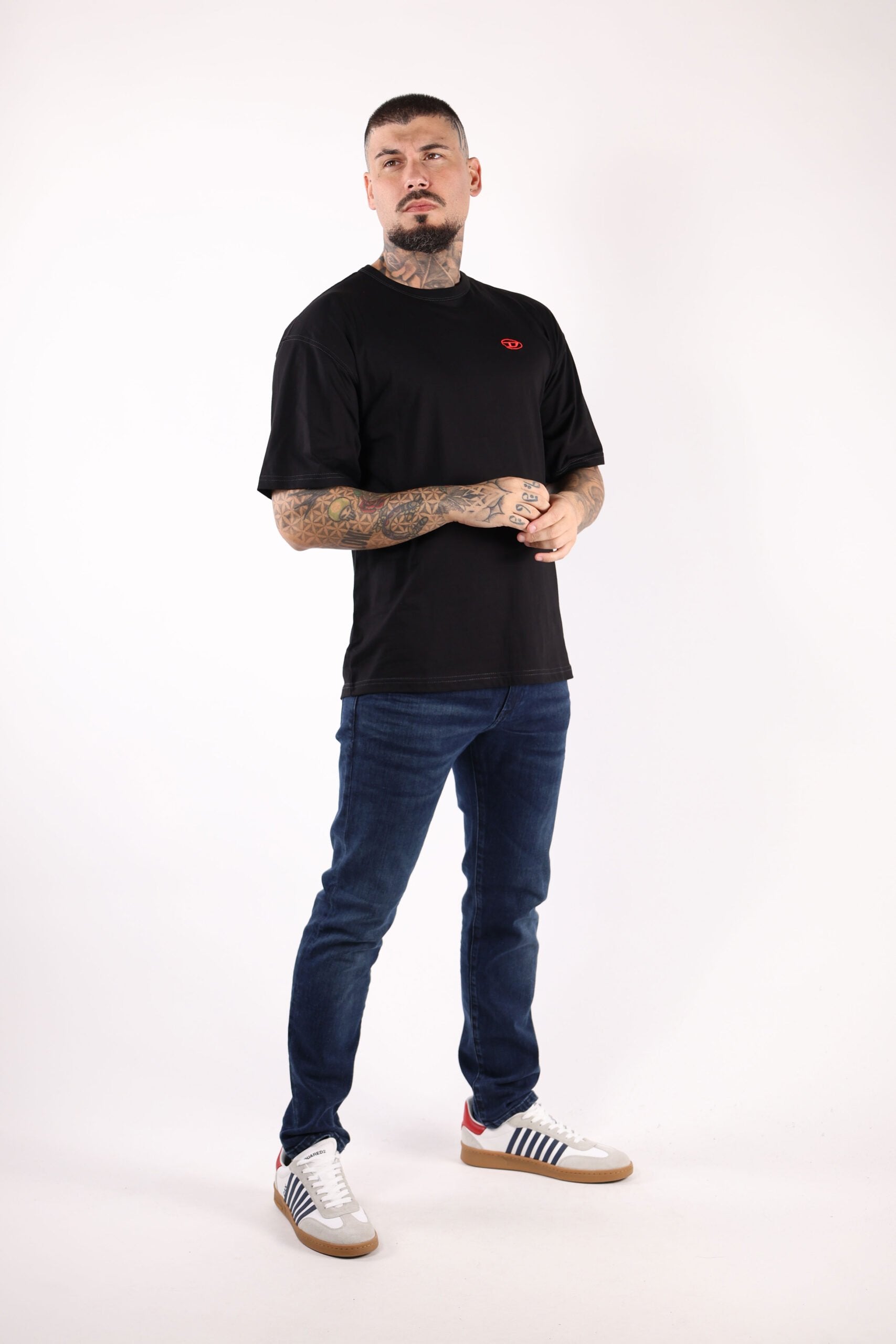 Samarreta negra amb minilog "oval-D" brodat i maxil·log darrere vermell - M -