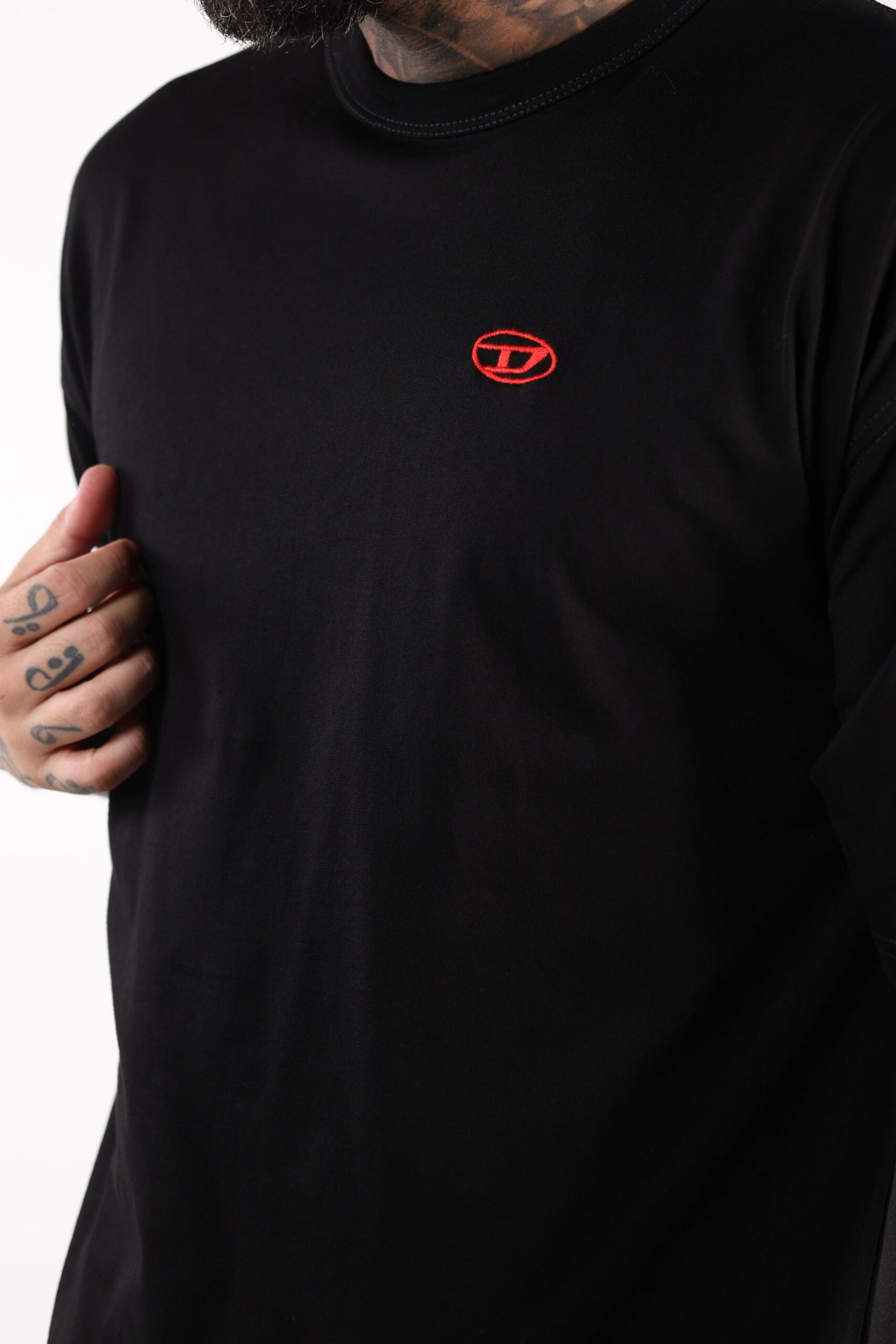 Samarreta negra amb minileg "oval-D" brodat i maxil·log darrere vermell - XL