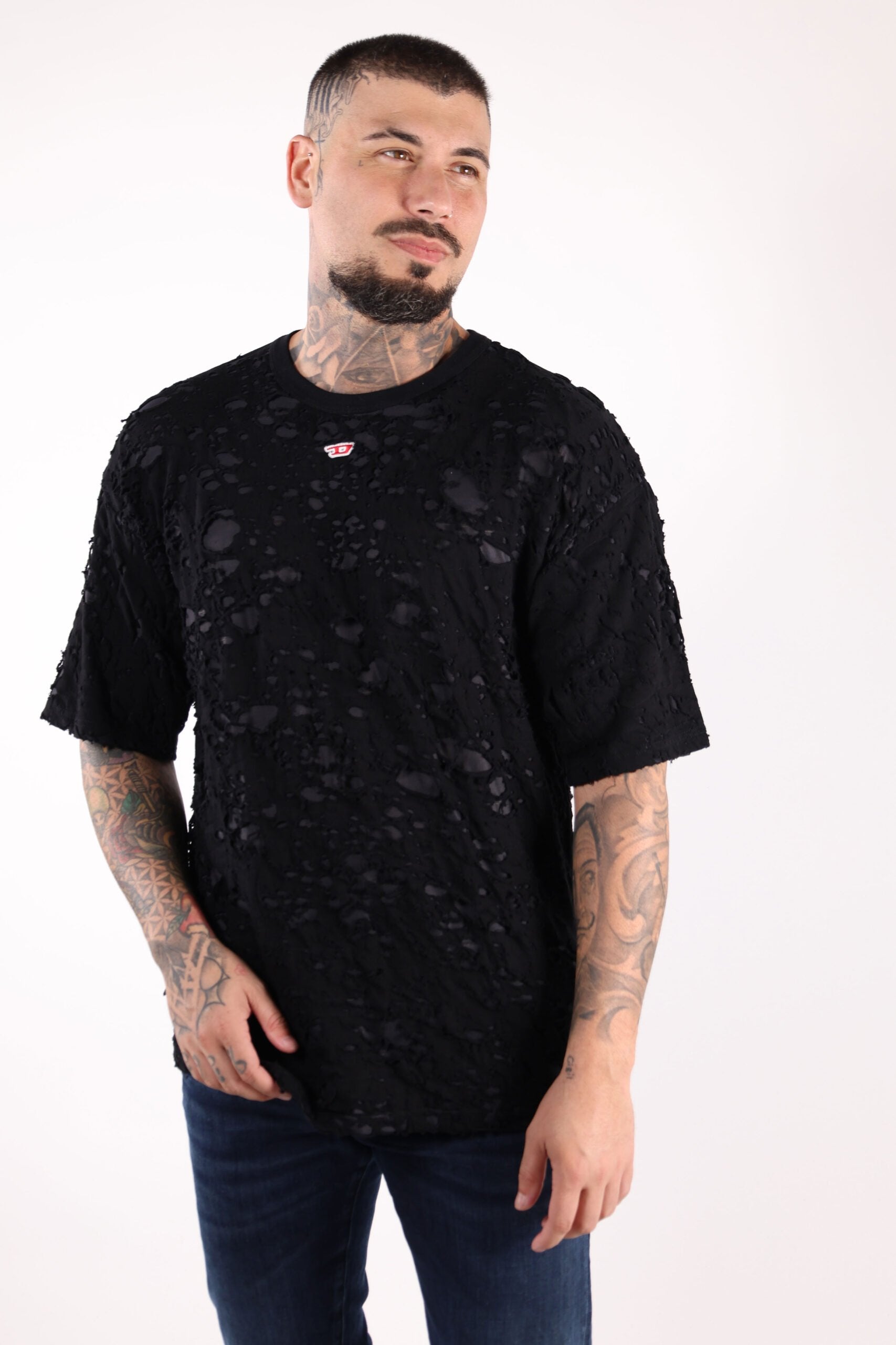 Samarreta negra amb teixit destruït i minilogo "Diesel" - S