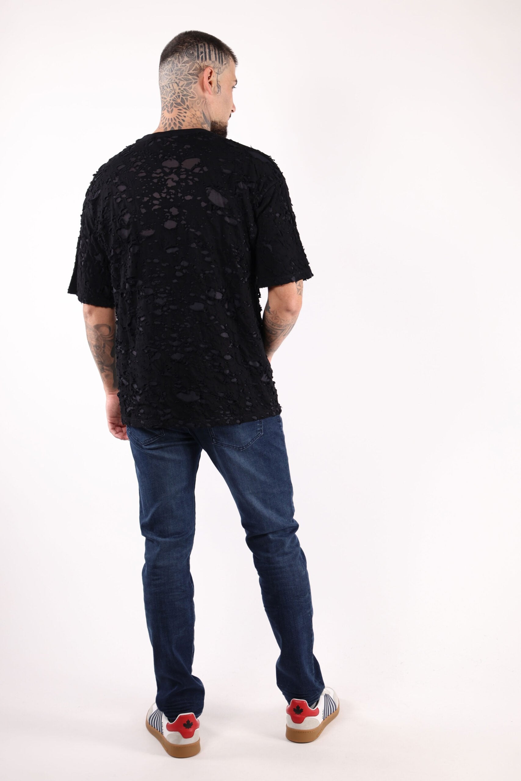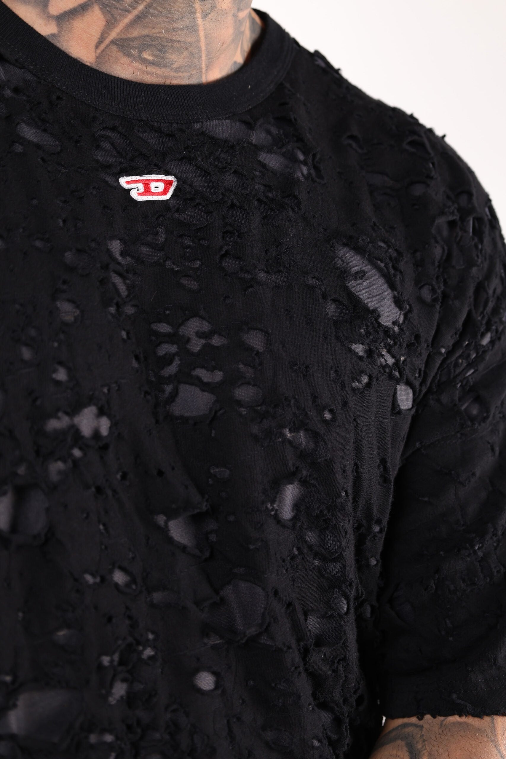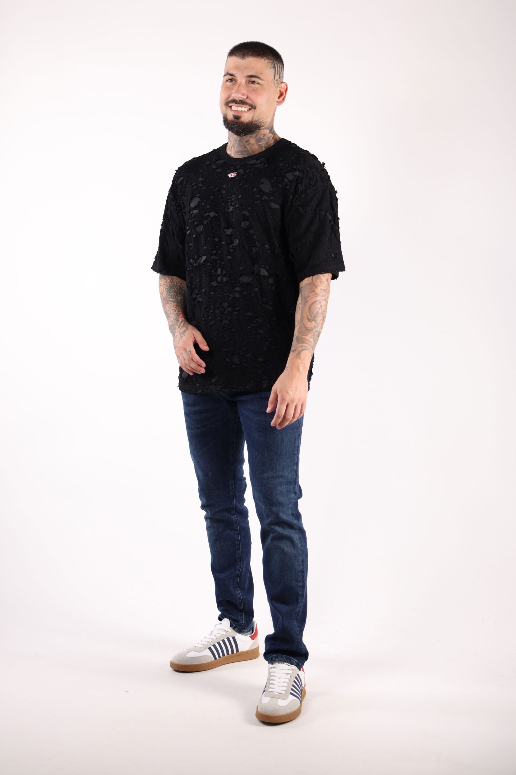 Samarreta negra amb teixit destruït i minilogo "Diesel" - XXL