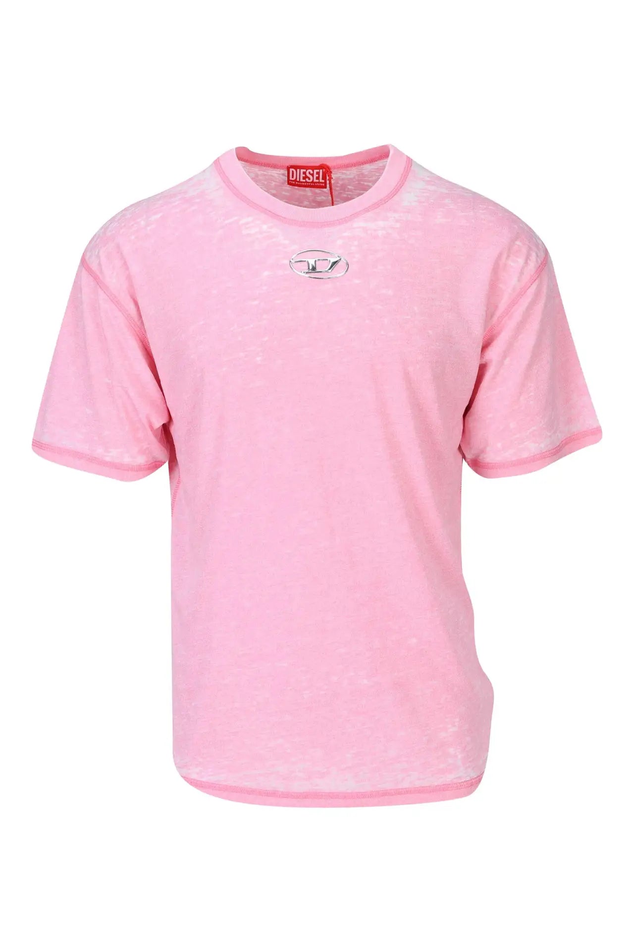 Camiseta rosa "T-BOXT" desgastada con minilogo "Oval-D" -
