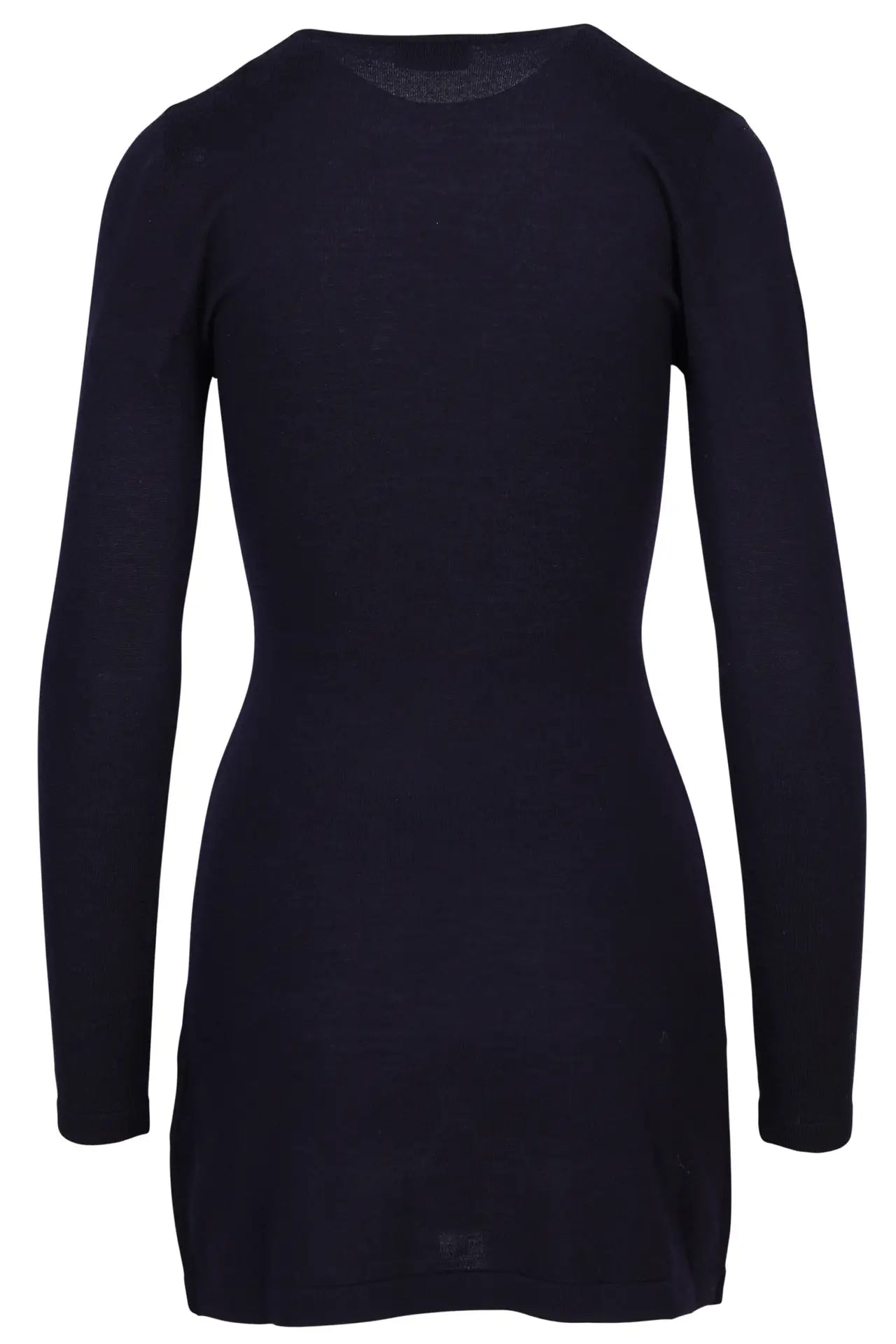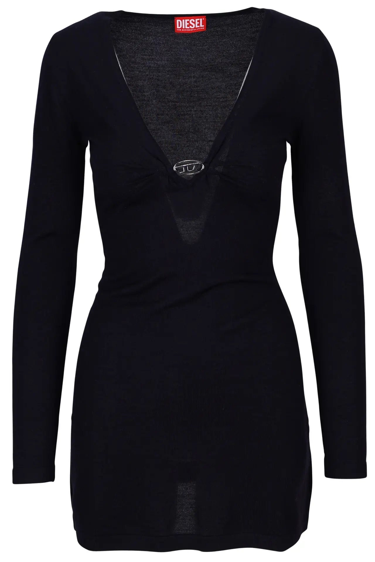 Vestido negro corto manga larga con escote y minilogo "Oval-D" en metal -