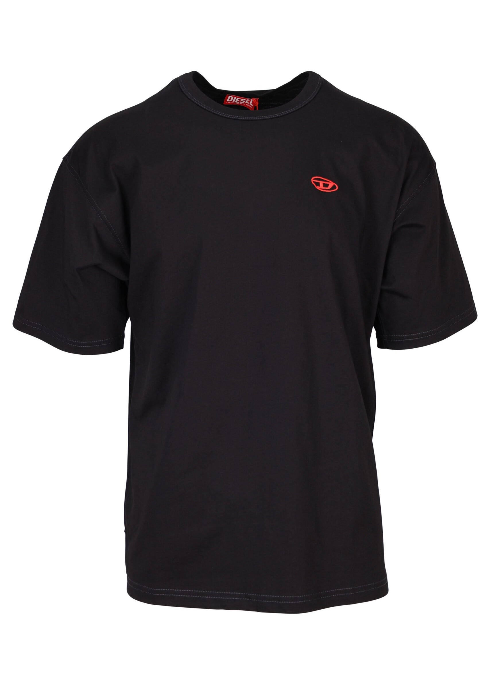 Samarreta negra amb minileg "oval-D" brodat i maxil·log darrere vermell - M
