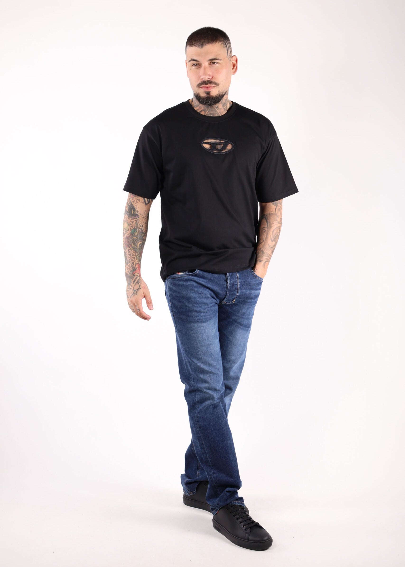Samarreta negra amb teixit destruït i minilogo "Diesel" - XXL