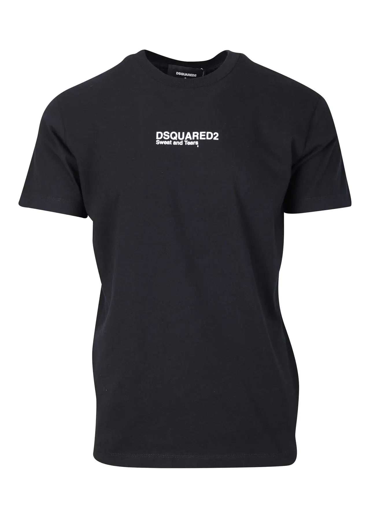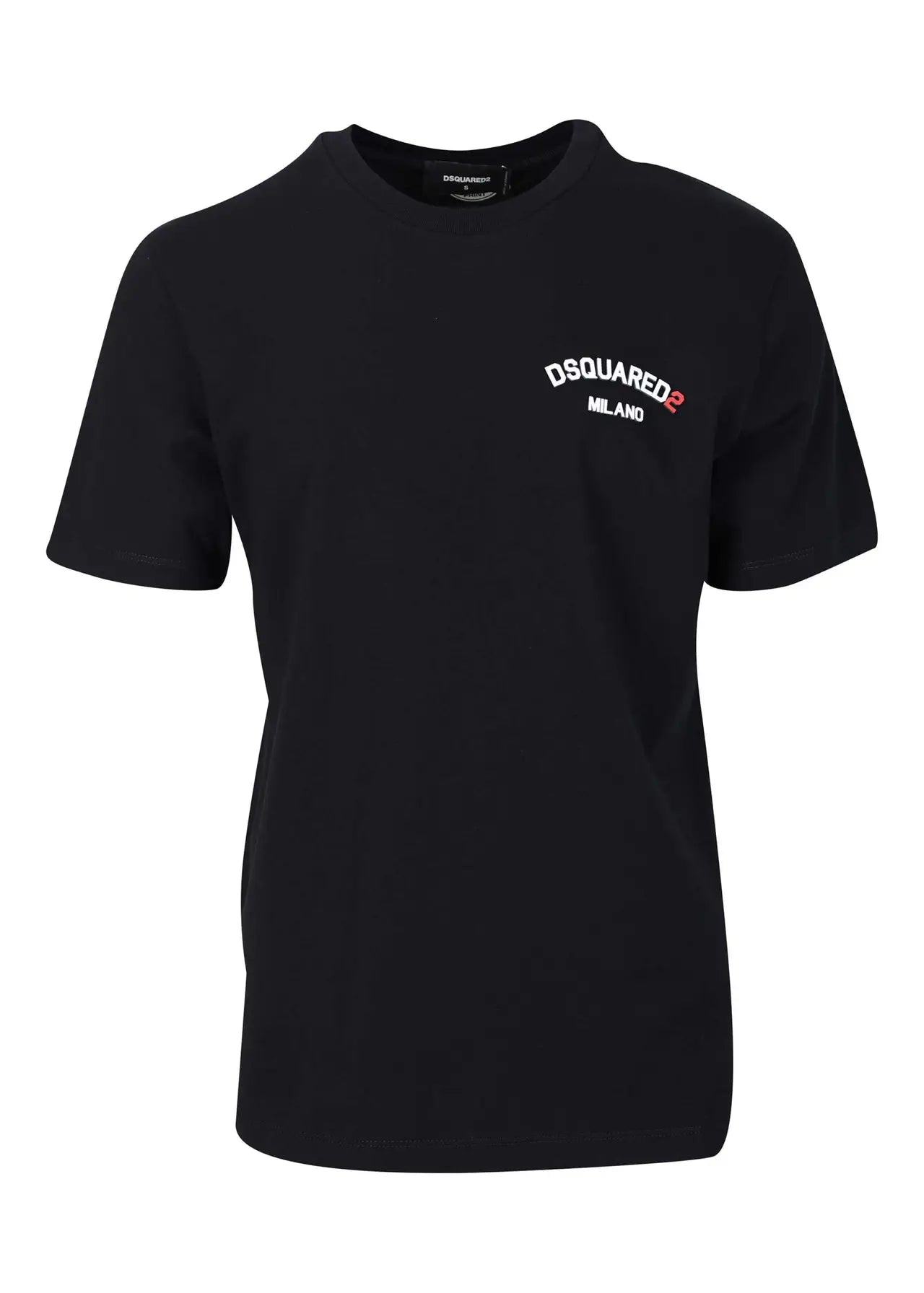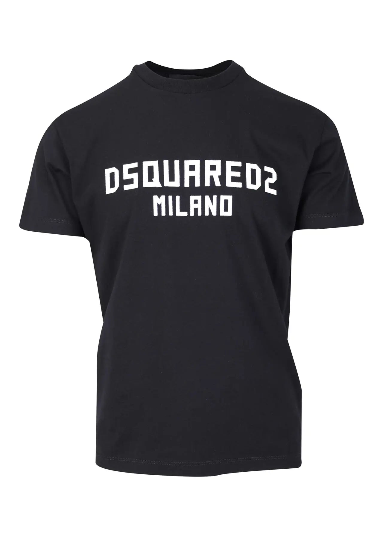 Camiseta negra con minilogo "dsquared2 milano" blanco -