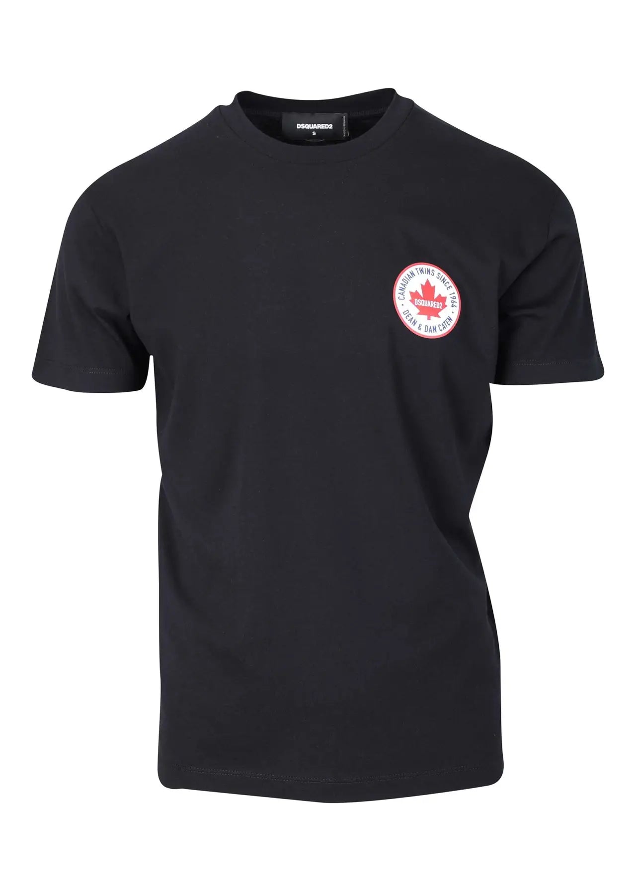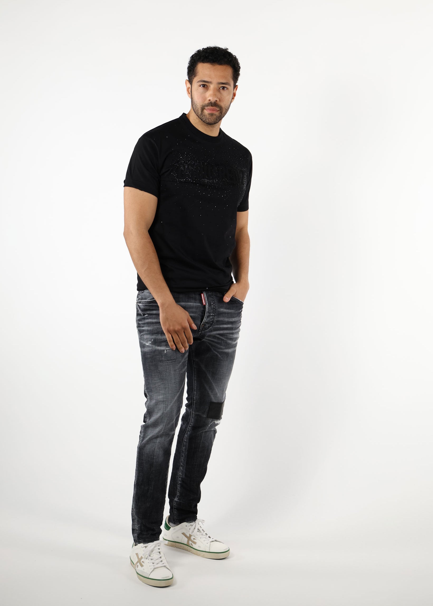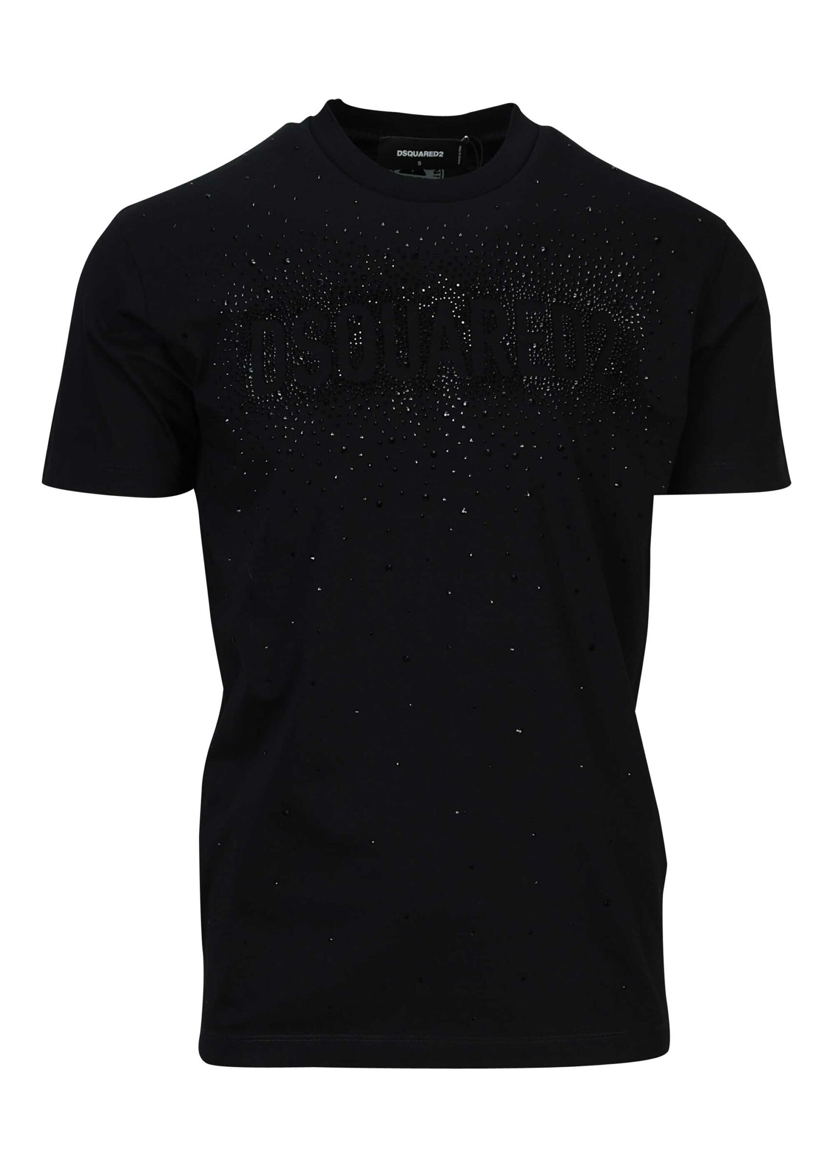 Camiseta negra con minilogo "dsquared2 milano" blanco -
