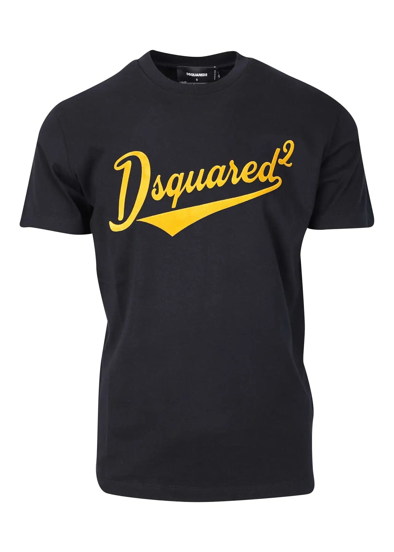 Camiseta negra con maxilogo "dsquared2" vintage amarillo -
