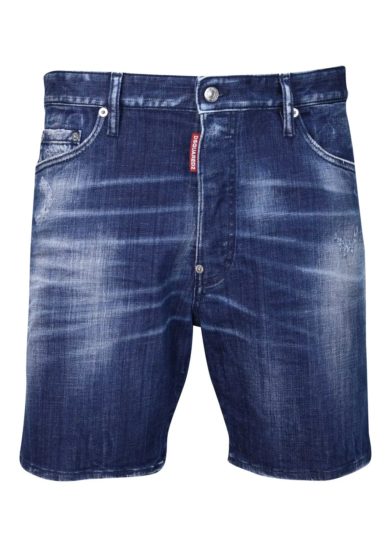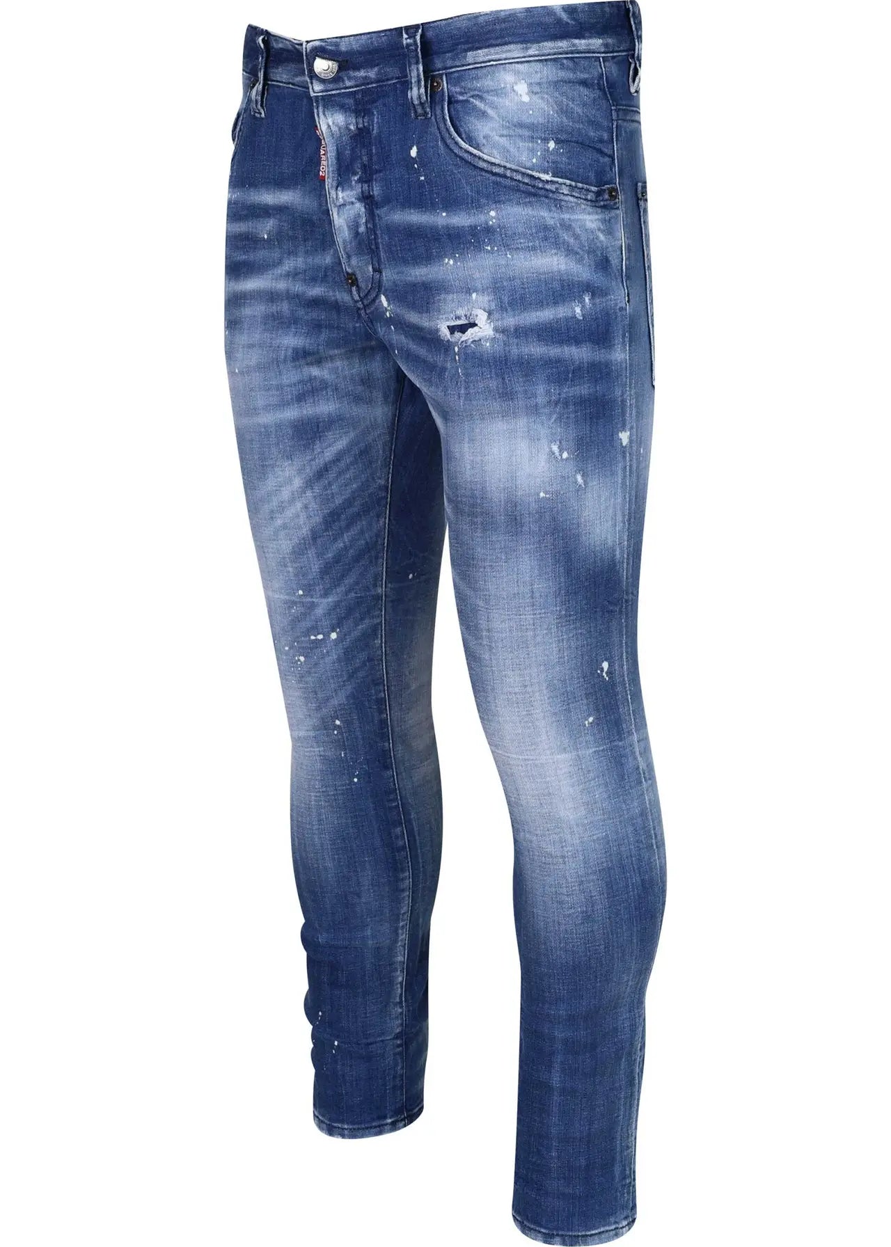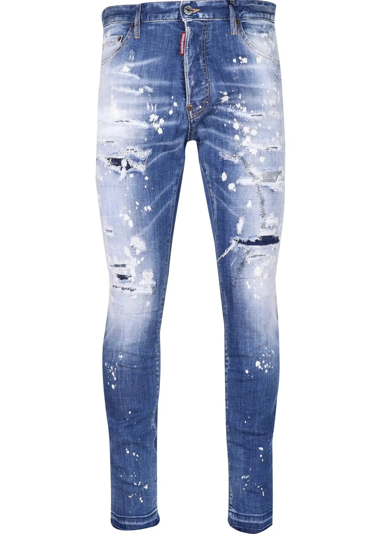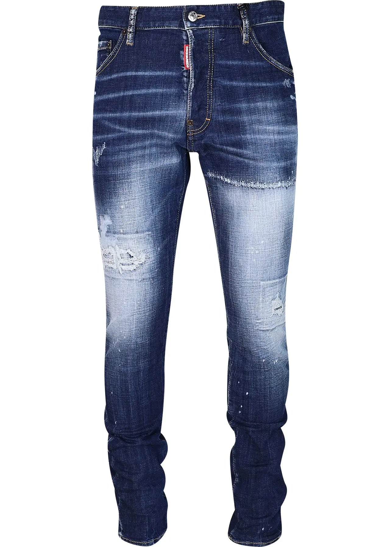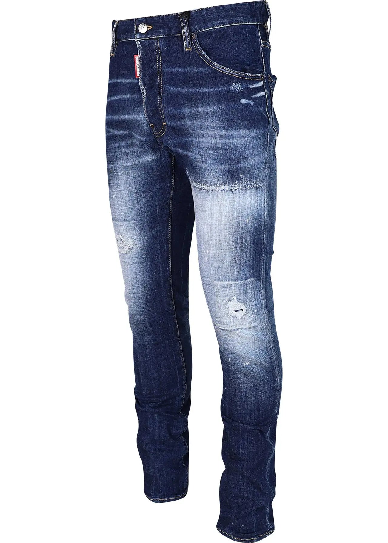Pantalón vaquero azul oscuro "Cool Guy Jean" semi desgastado con parches -