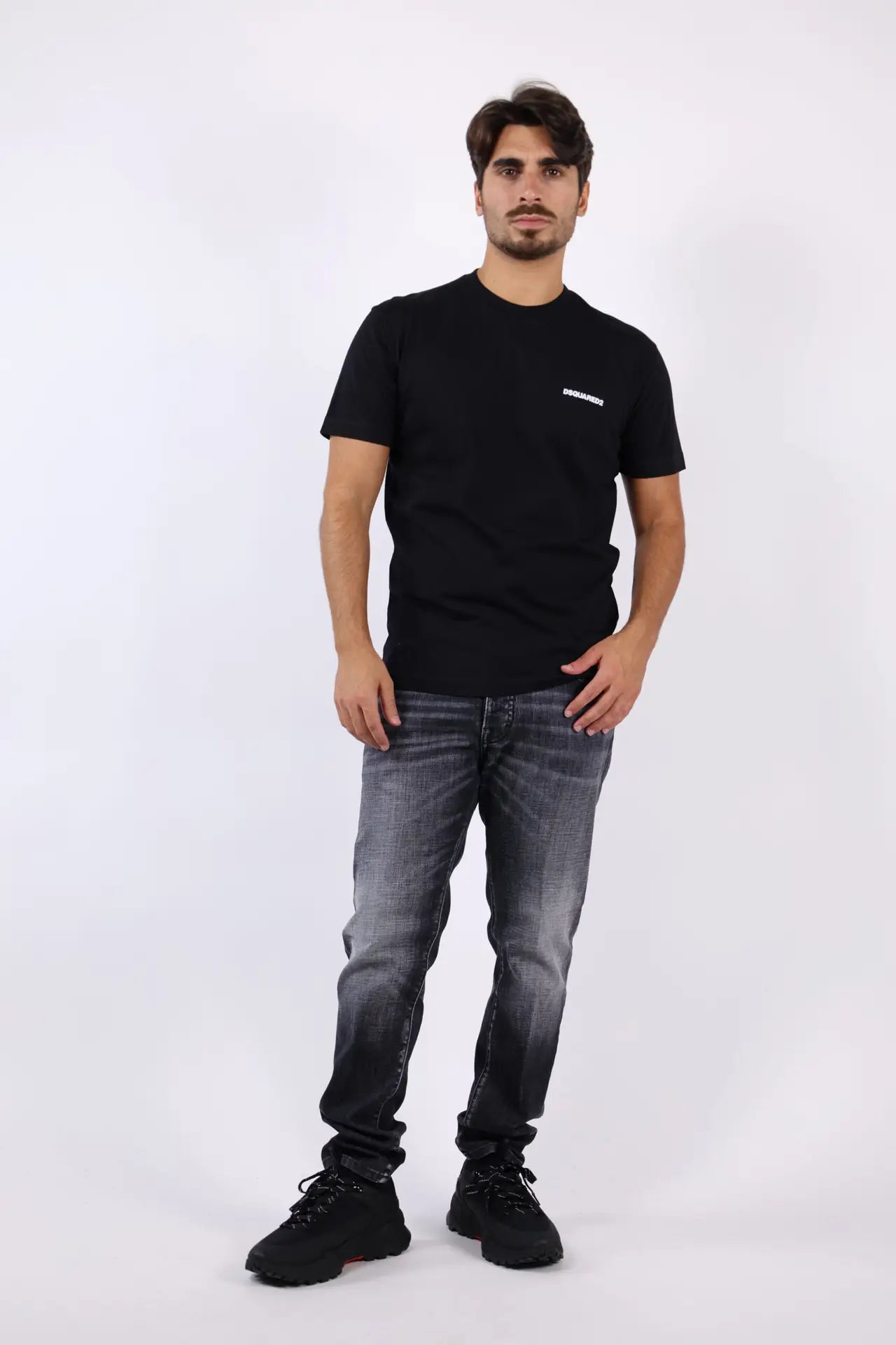 Camiseta negra con minilogo blanco y estampa "Headquarter" en espalda -